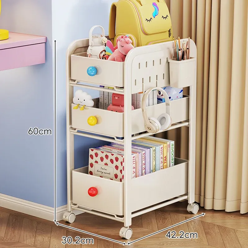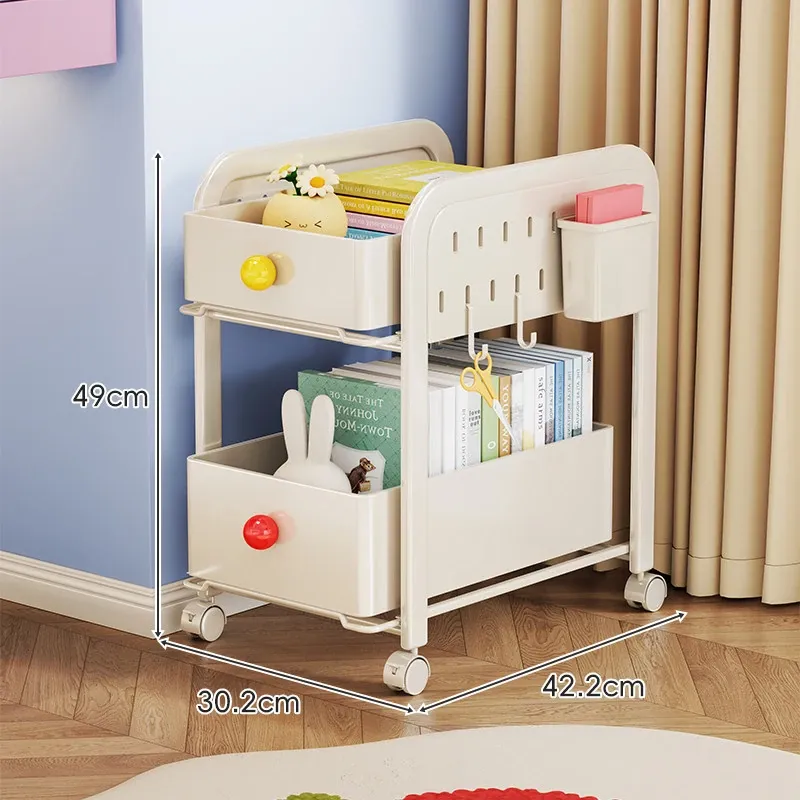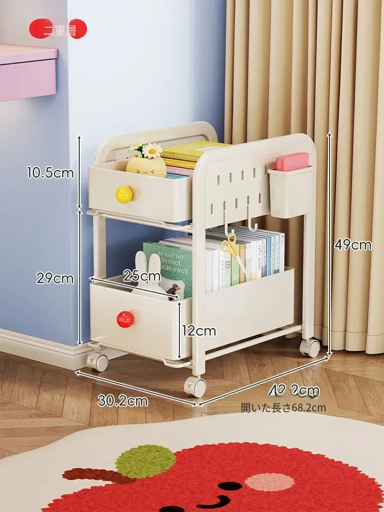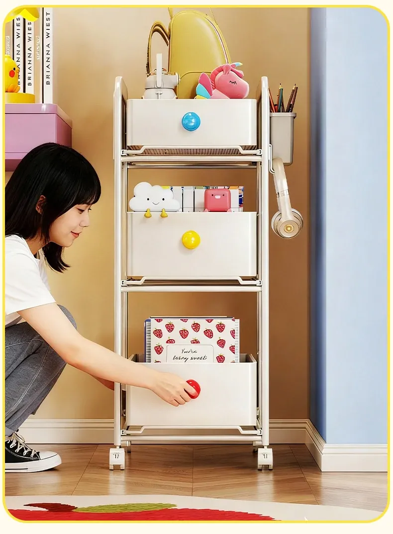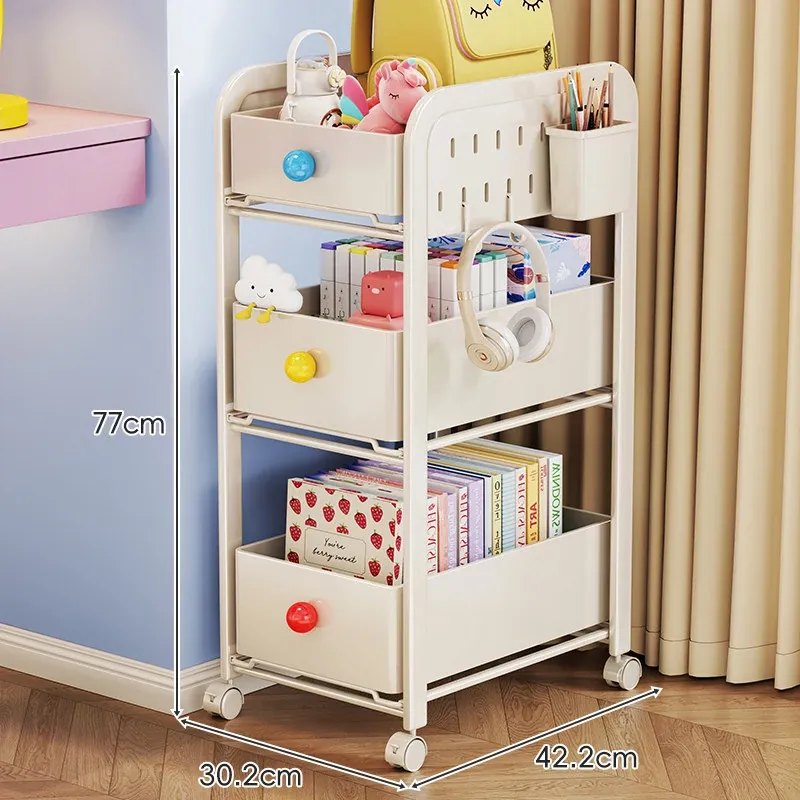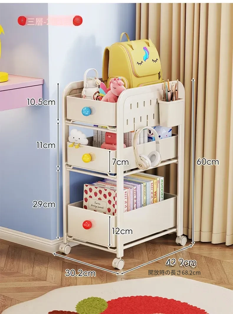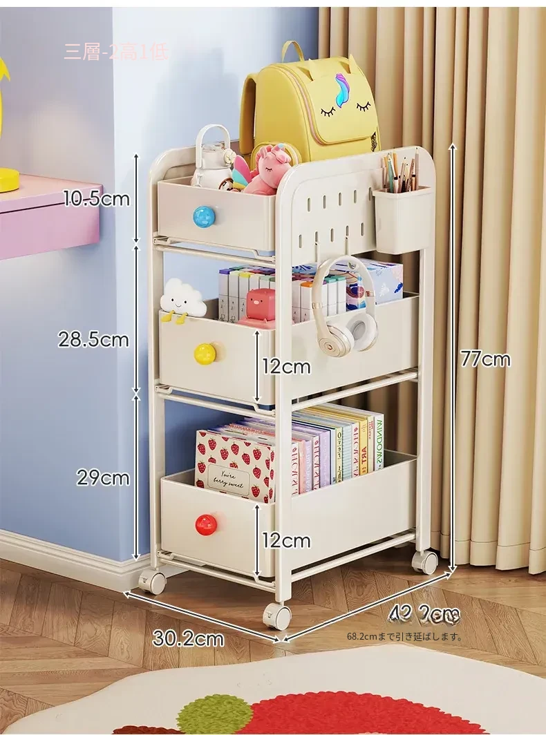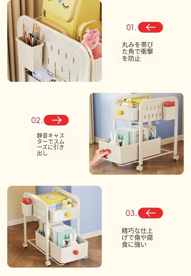 キッチン・リビングに最適!移動可能な多段式収納ラック 小型キャスター付き本やお菓子の整理に便利な書籍収納カート