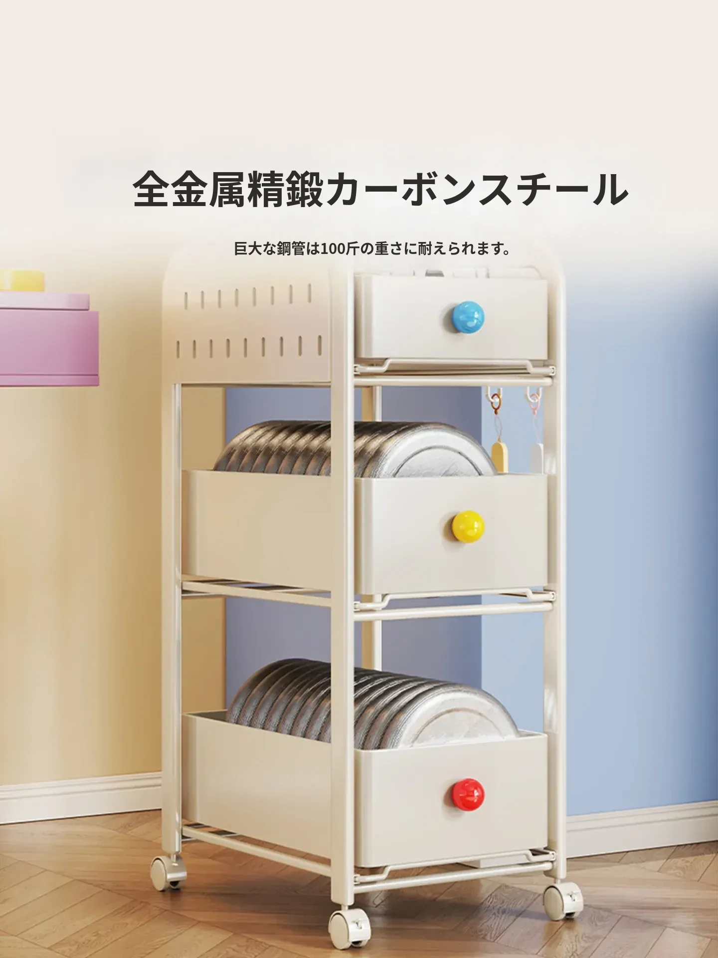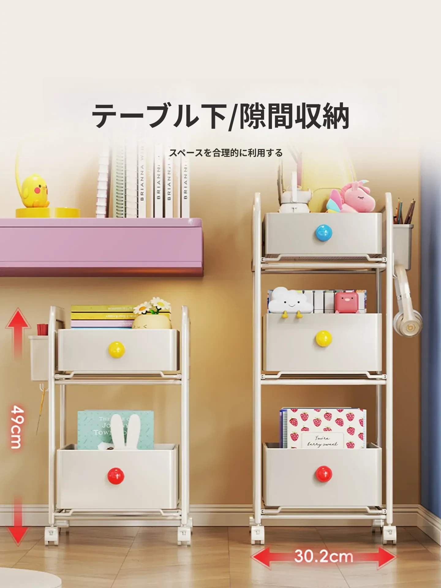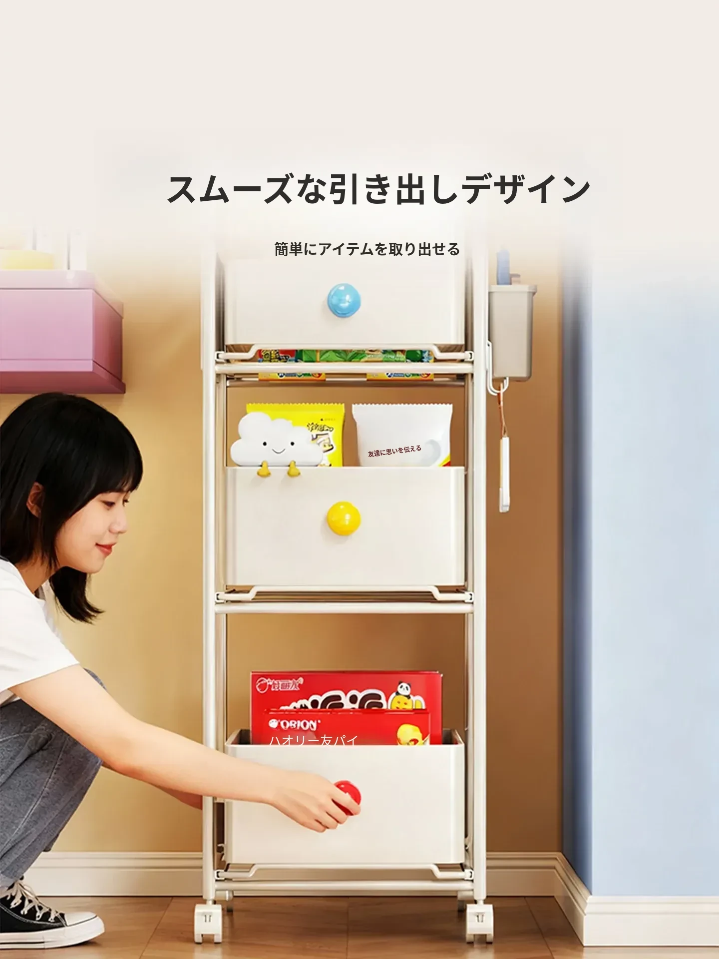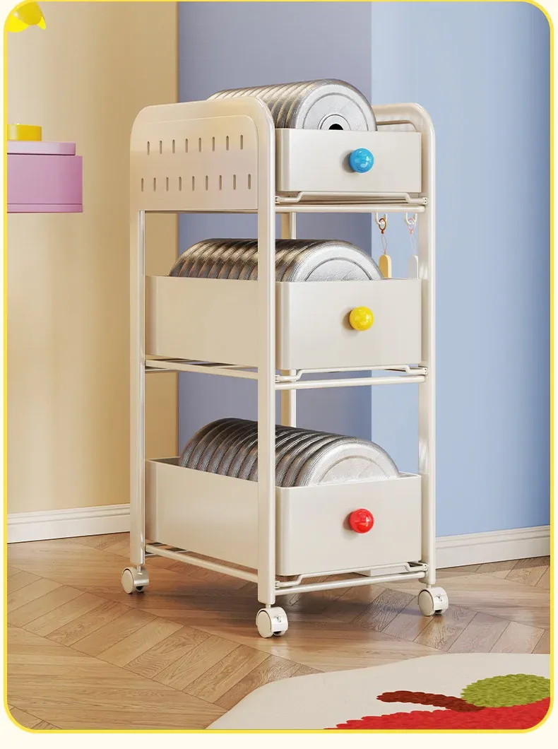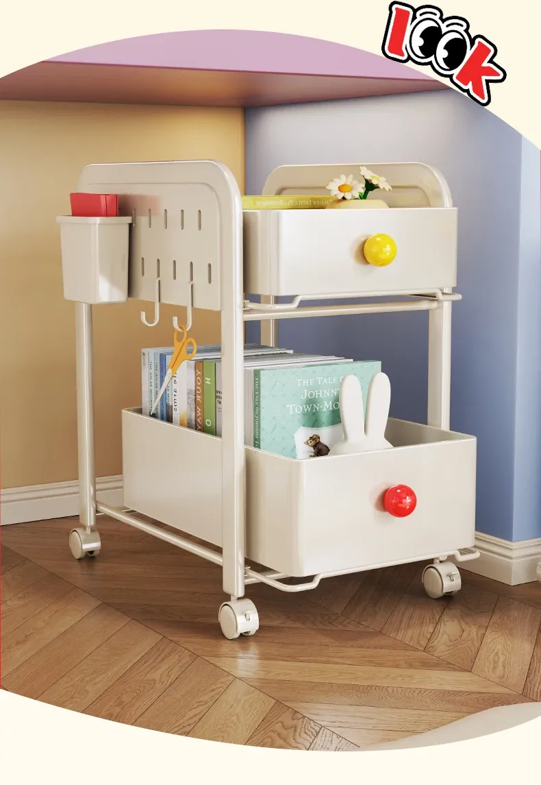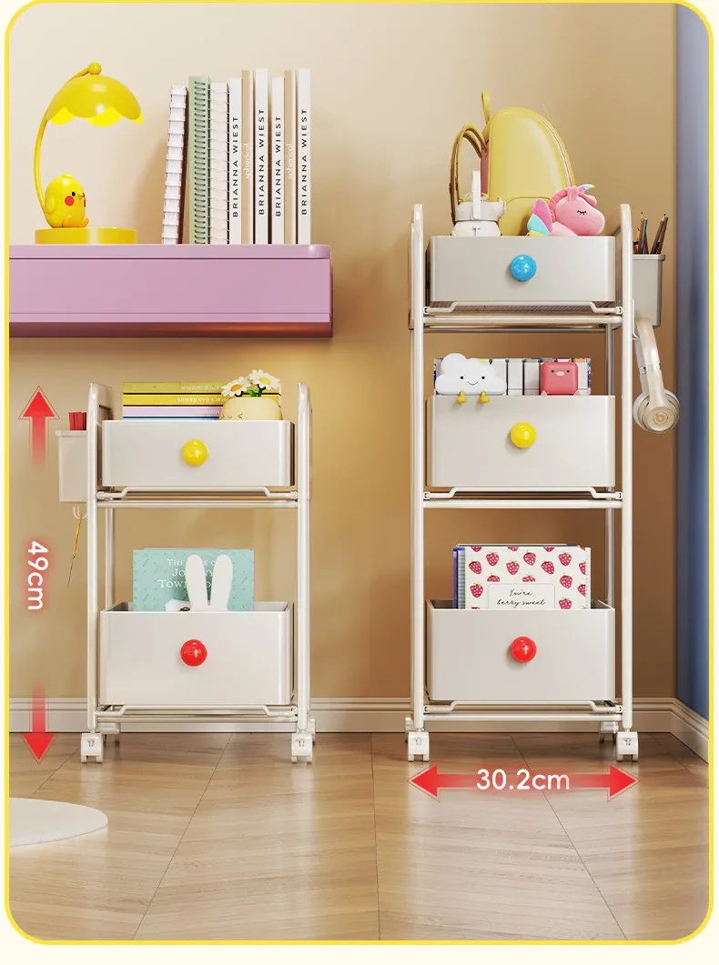 キッチン・リビングに最適!移動可能な多段式収納ラック 小型キャスター付き本やお菓子の整理に便利な書籍収納カート