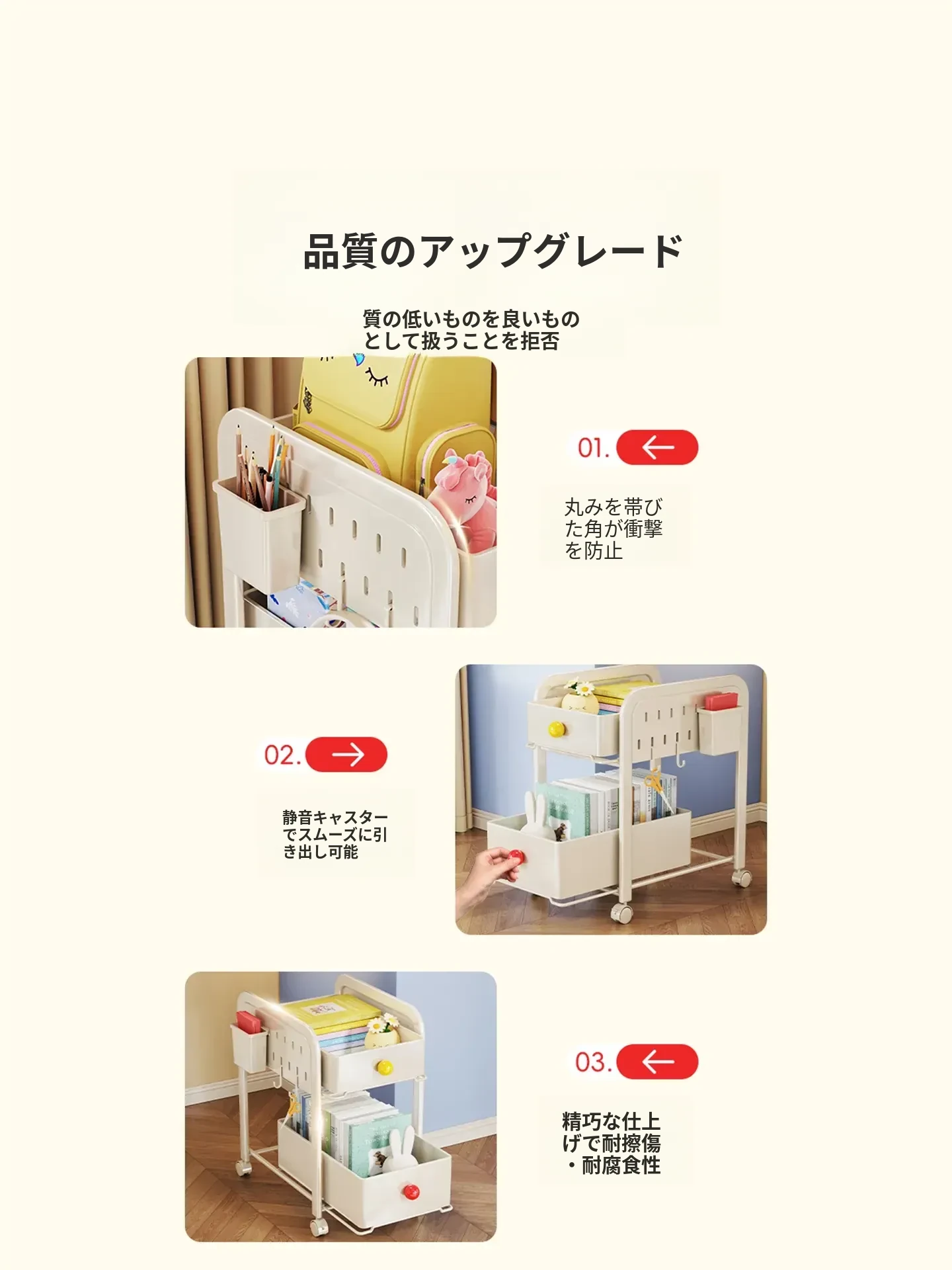 トリプルレイヤークリームホワイト(2高1低)2フック+1ペン立て付き