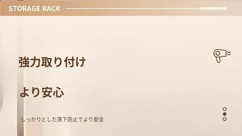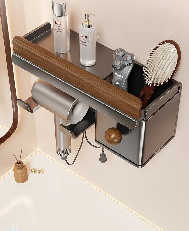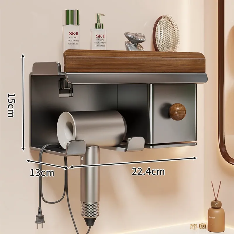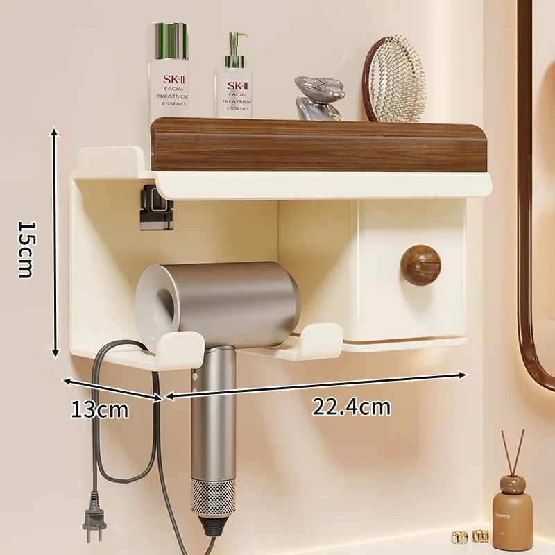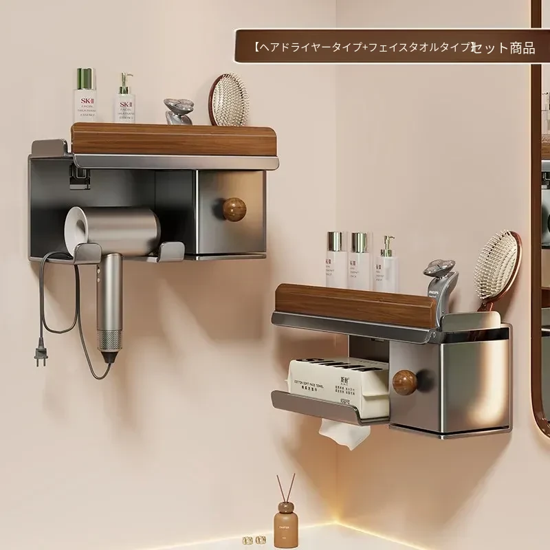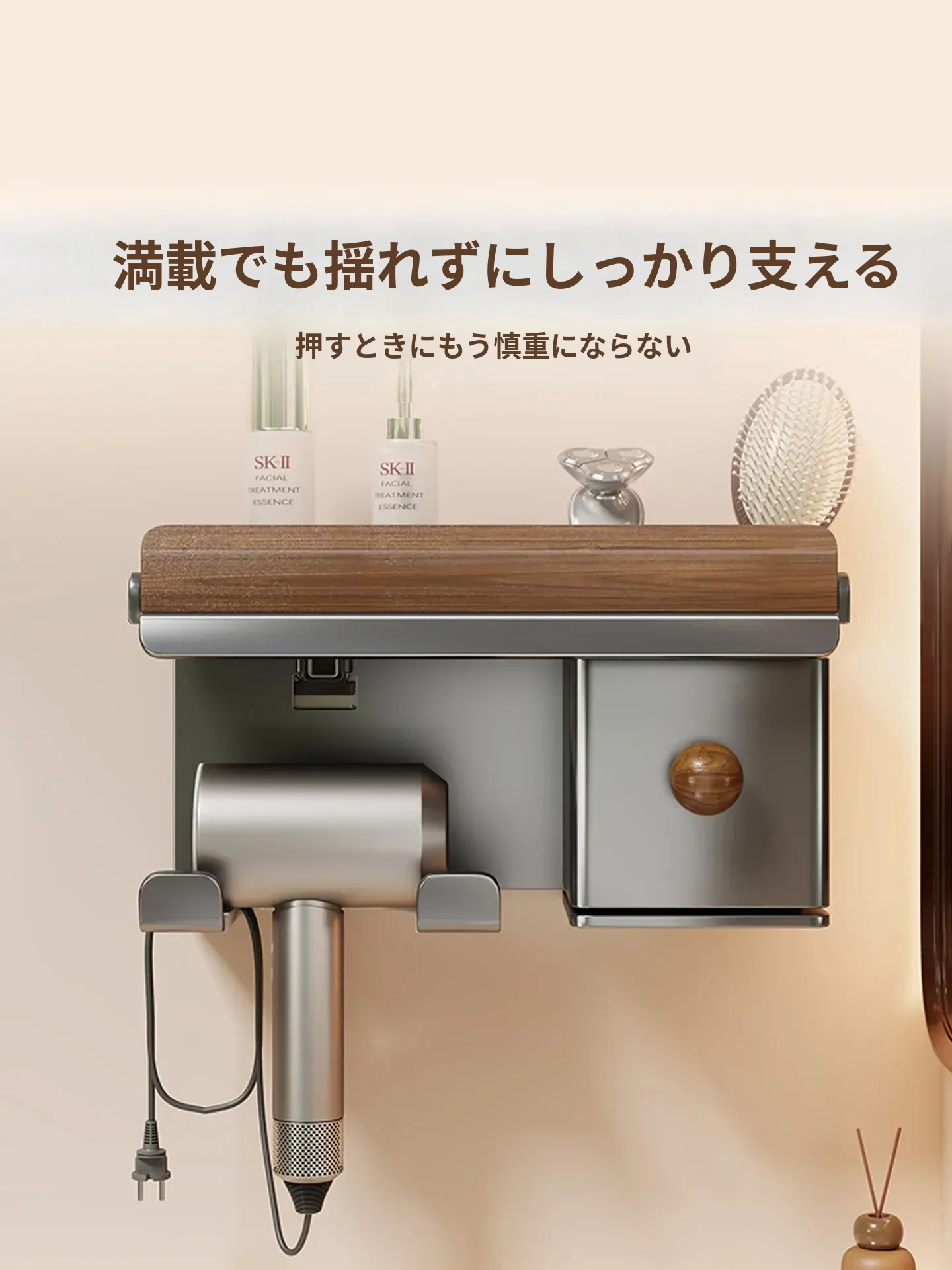 穴あけ不要!バスルームや洗面台にぴったりなドライヤー収納ラック - スタイリッシュで便利な掛け式収納で、スッキリとした空間を実現!