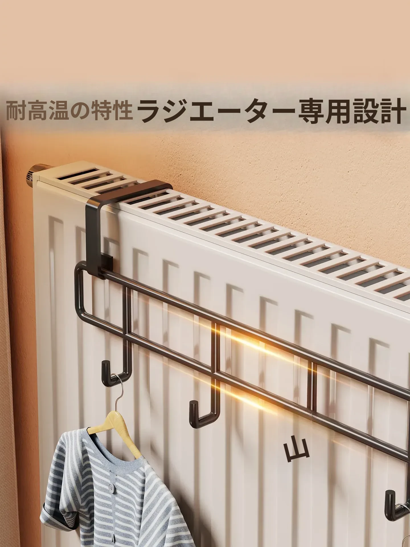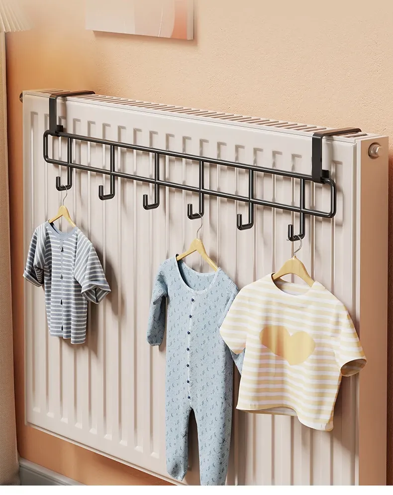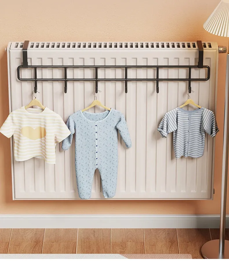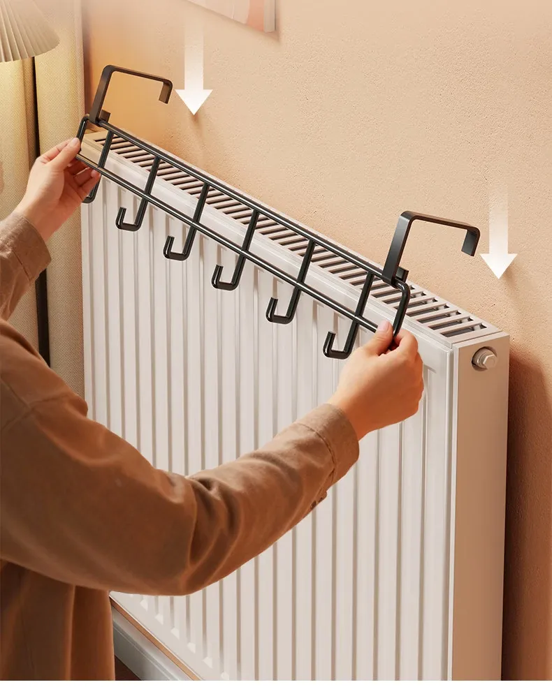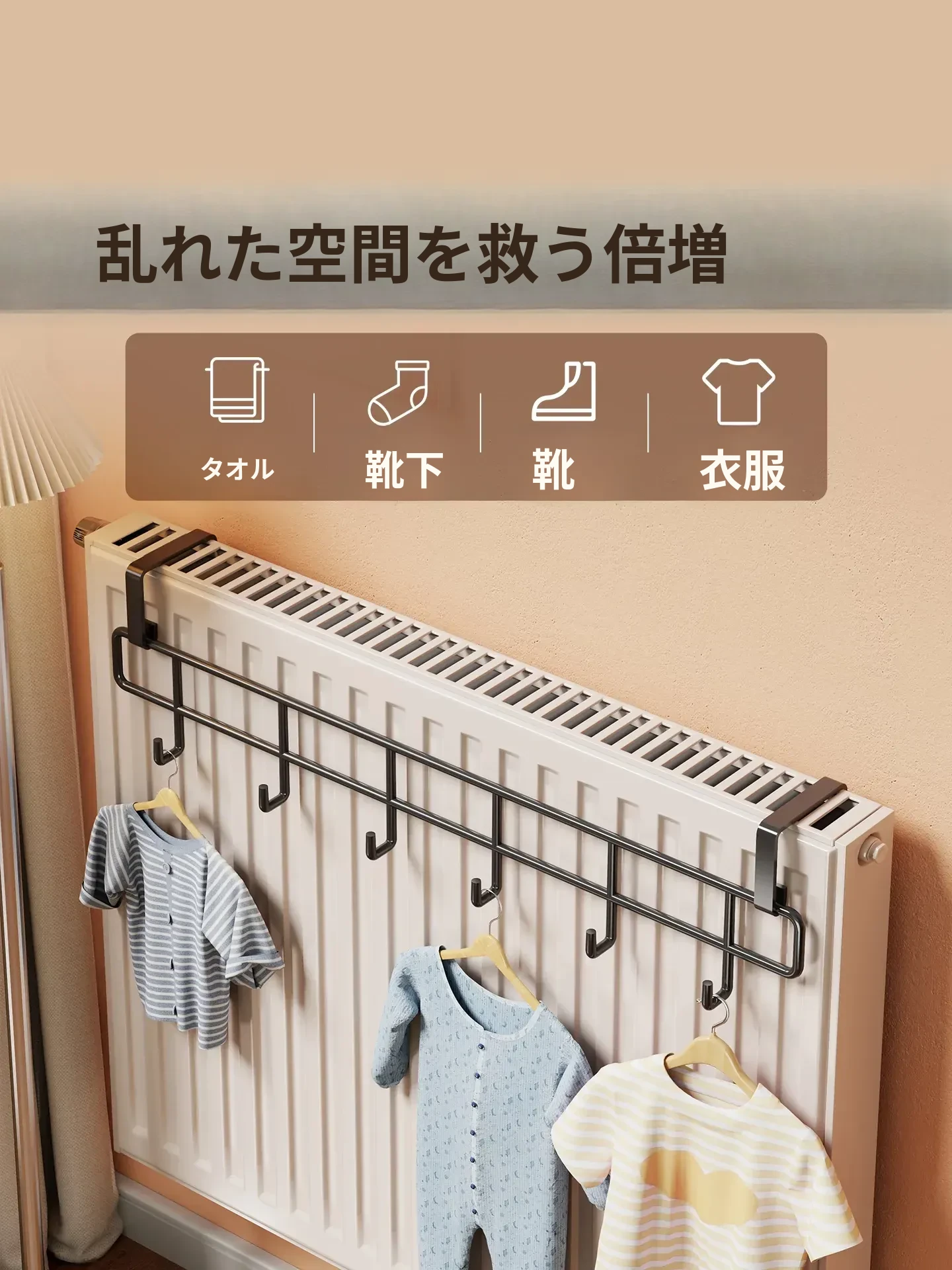 おしゃれな暖房パネル衣類干しハンガー - 浴室用の穴あけ不要フック付き収納ラック!タオルやバスタオルに最適な乾燥・収納架です。お風呂場をスッキリ整理整頓しましょう!