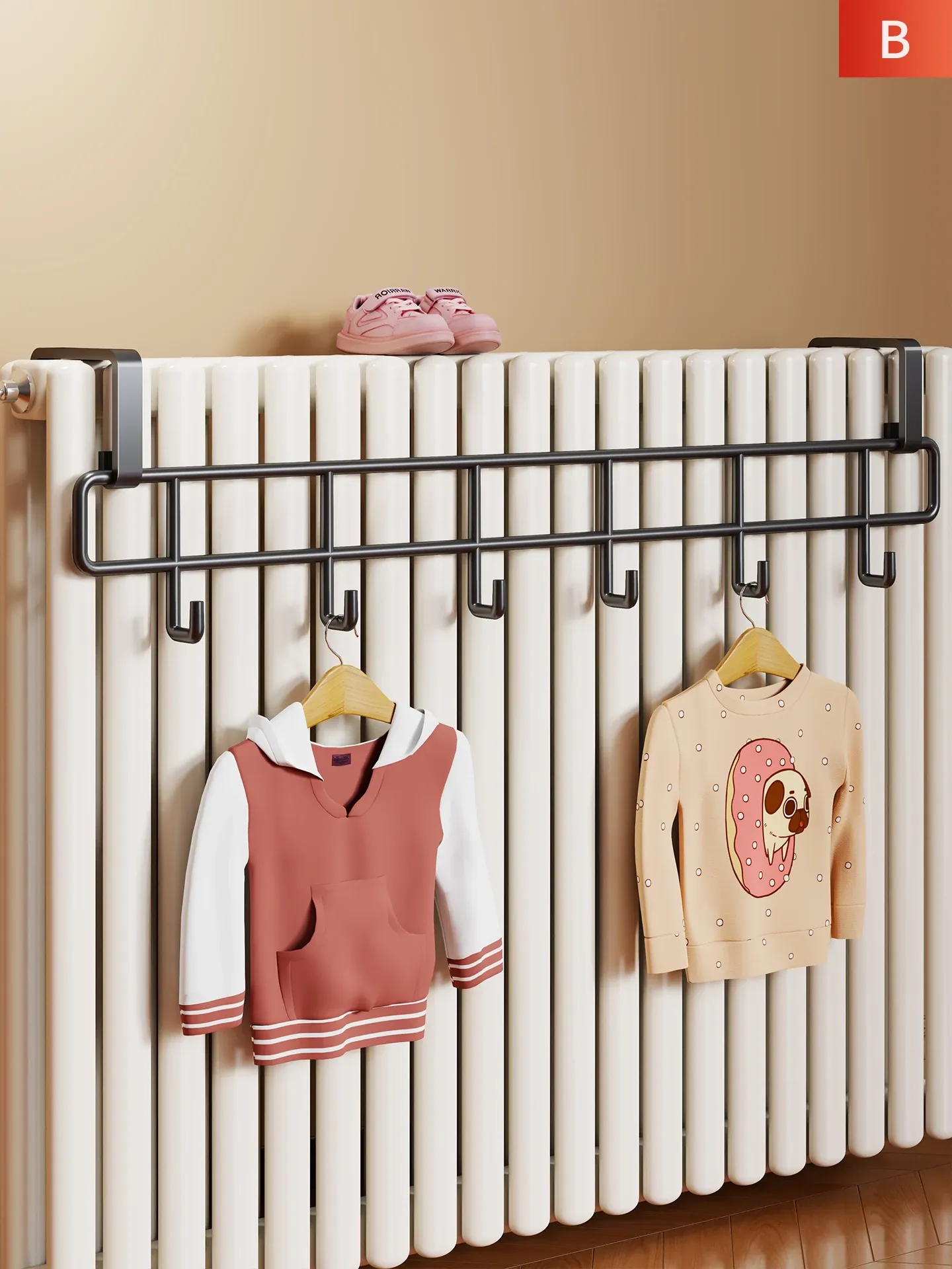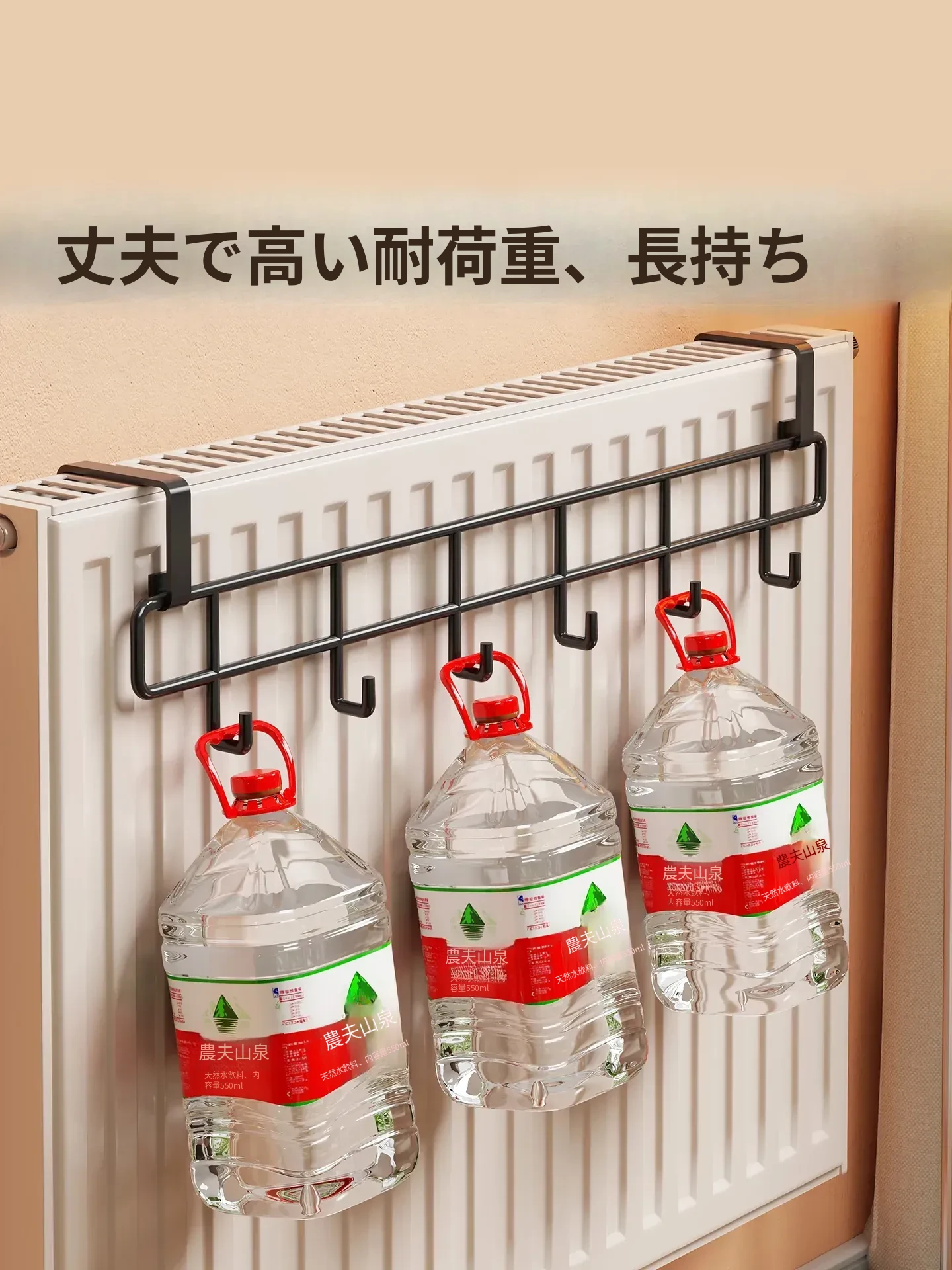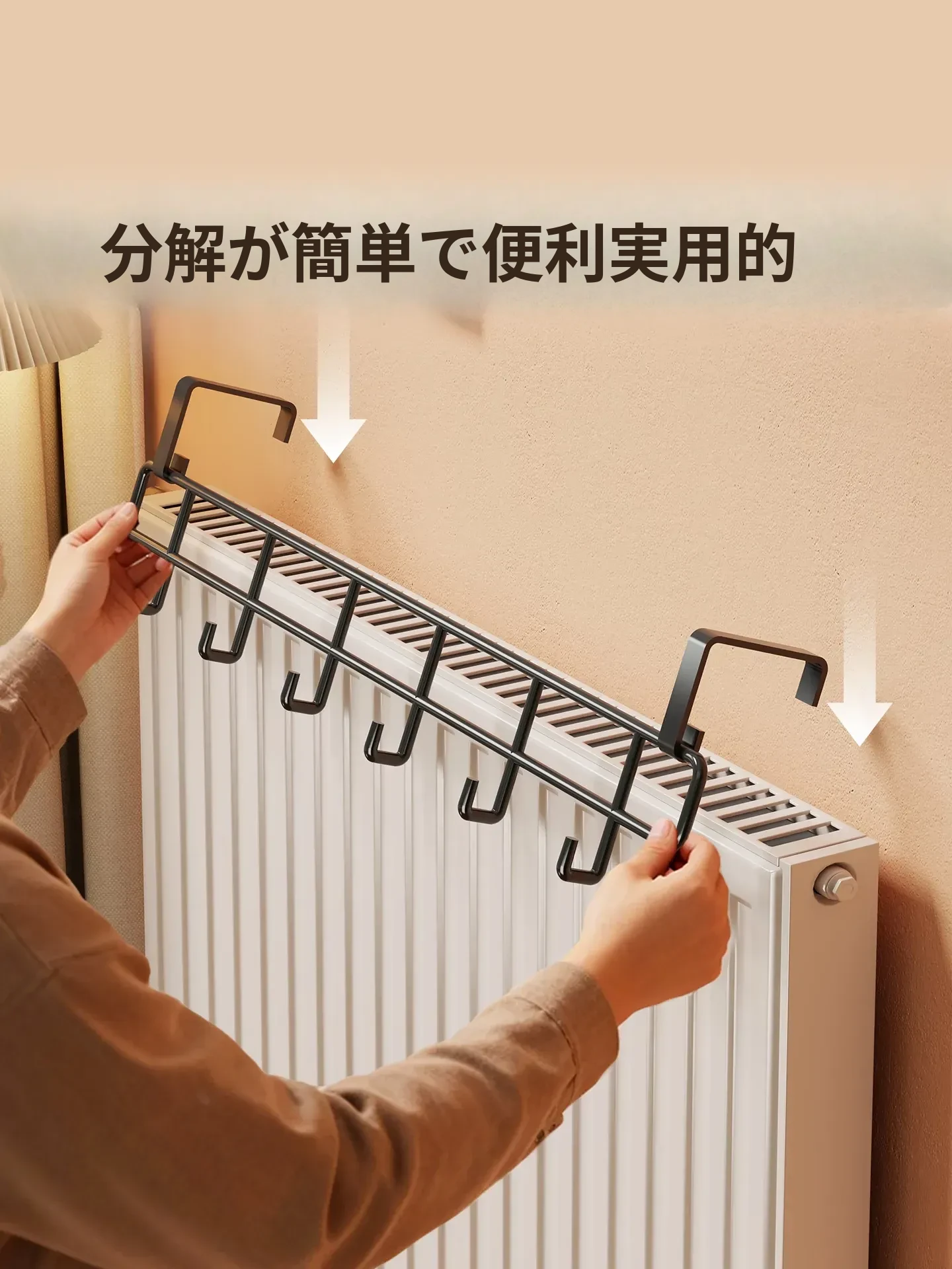 おしゃれな暖房パネル衣類干しハンガー - 浴室用の穴あけ不要フック付き収納ラック!タオルやバスタオルに最適な乾燥・収納架です。お風呂場をスッキリ整理整頓しましょう!