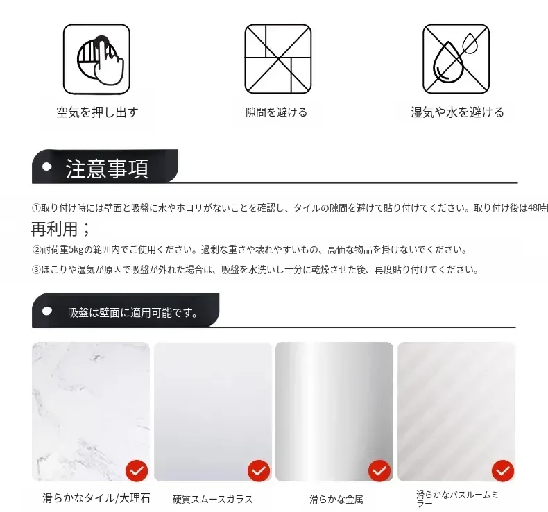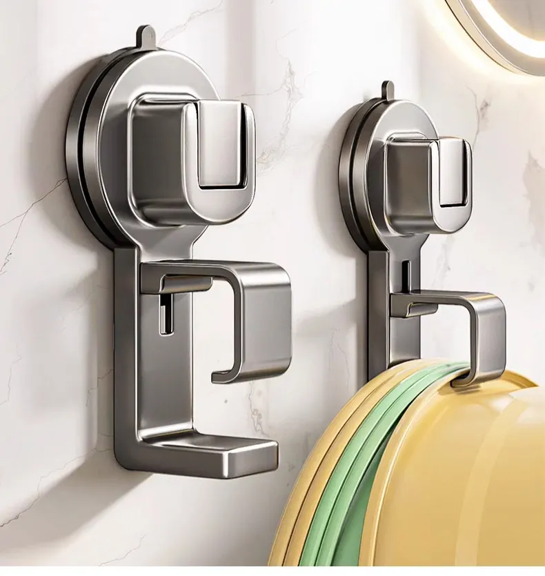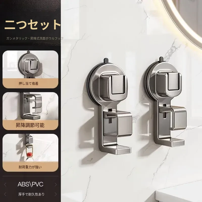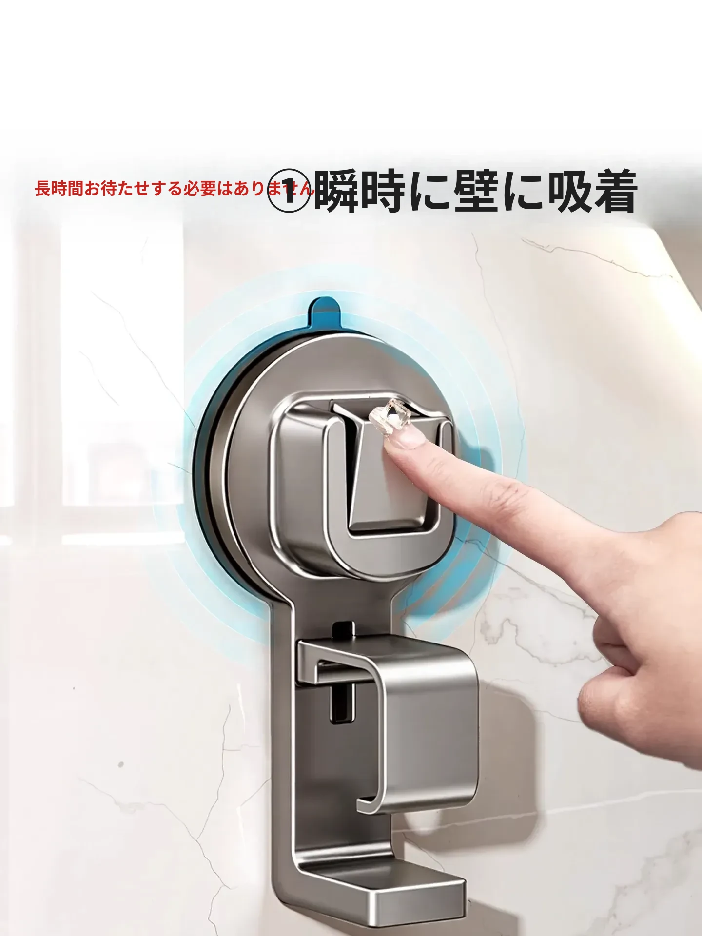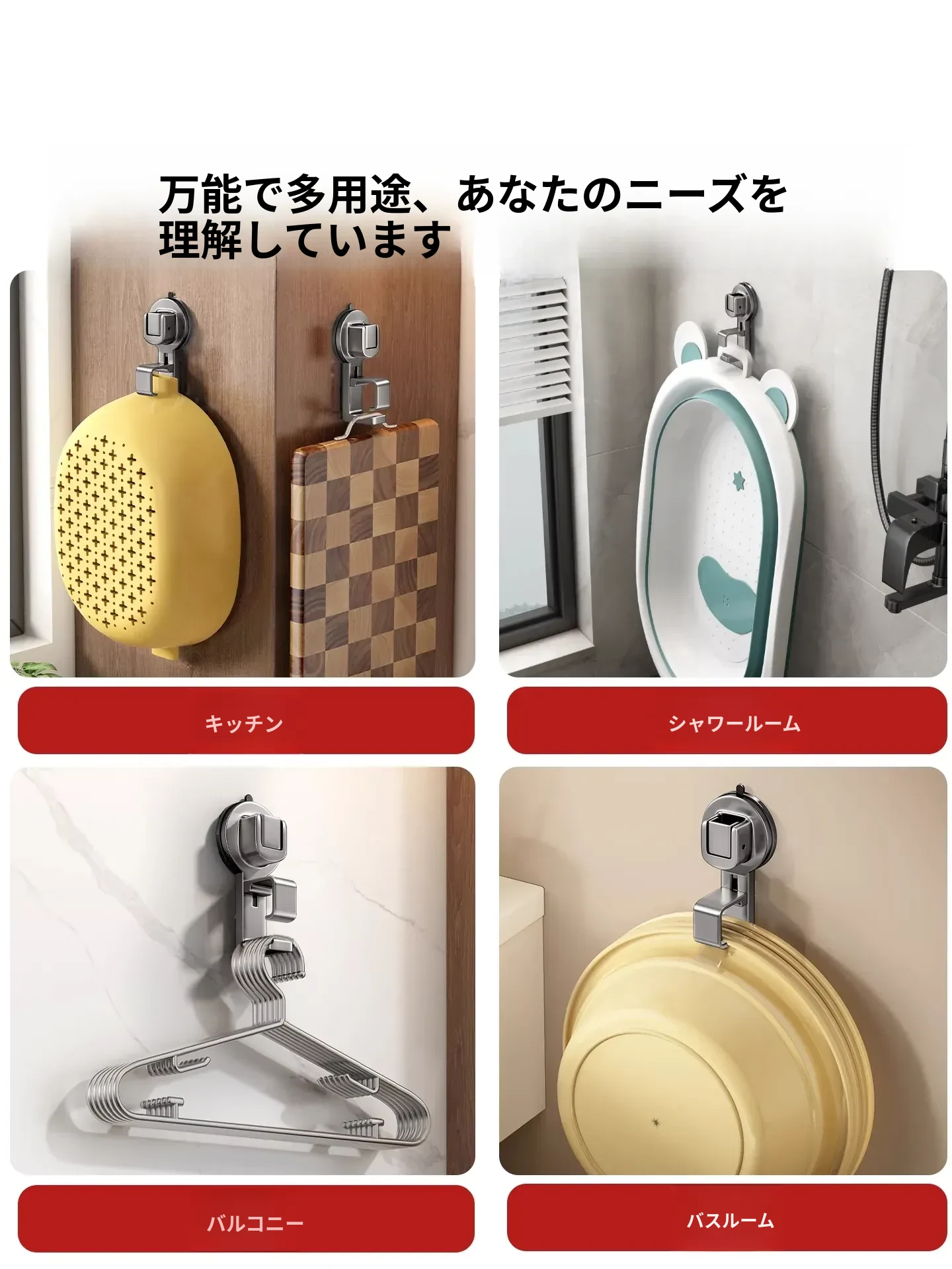 穴あけ不要!驚異の吸着力でトイレや洗面所にぴったりのフック・洗面器ラック。家のスペースを有効活用できる壁掛け収納!