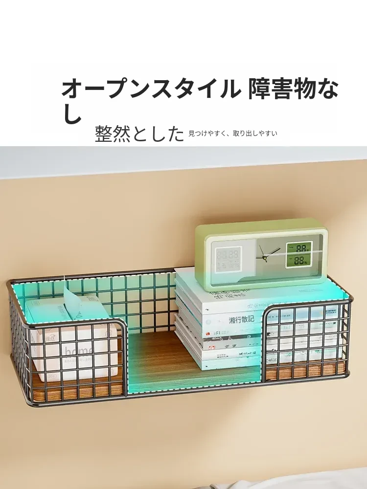 ノーホール壁掛け収納ラック - 寮や学生の部屋に最適!上段ベッド用の便利な整理ボックスで、すっきりとした空間を実現。あなたの生活をもっと快適に!