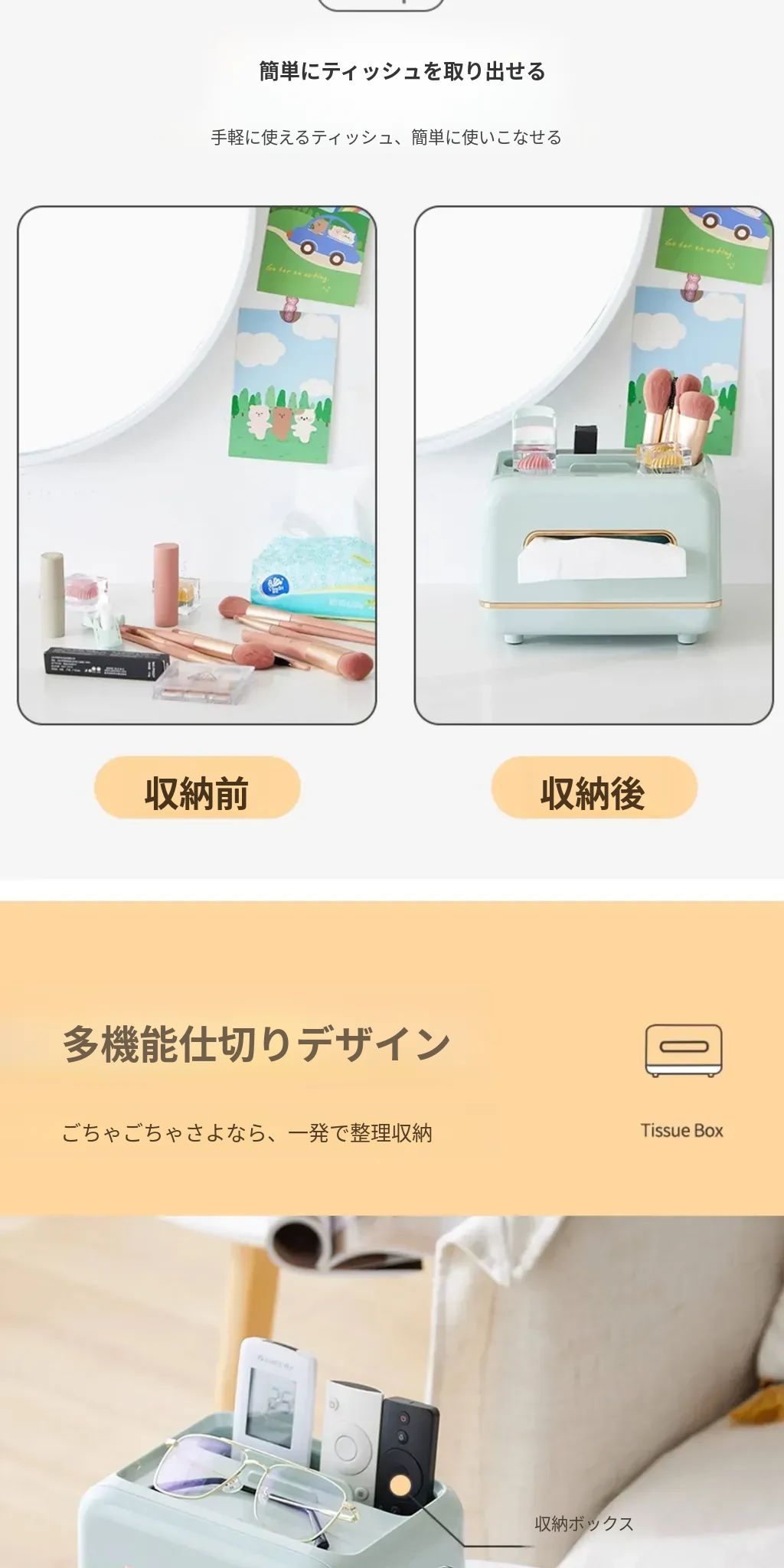 多機能ティッシュボックス【クリームイエロー】 【多機能おすすめ】