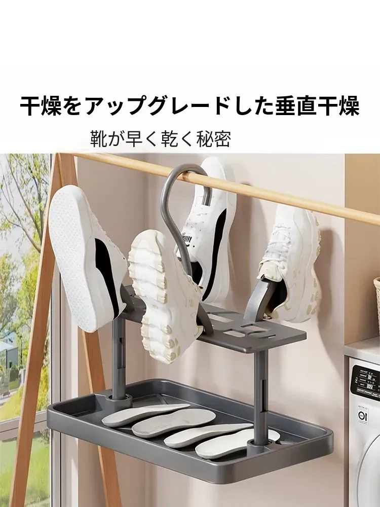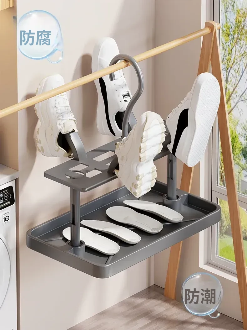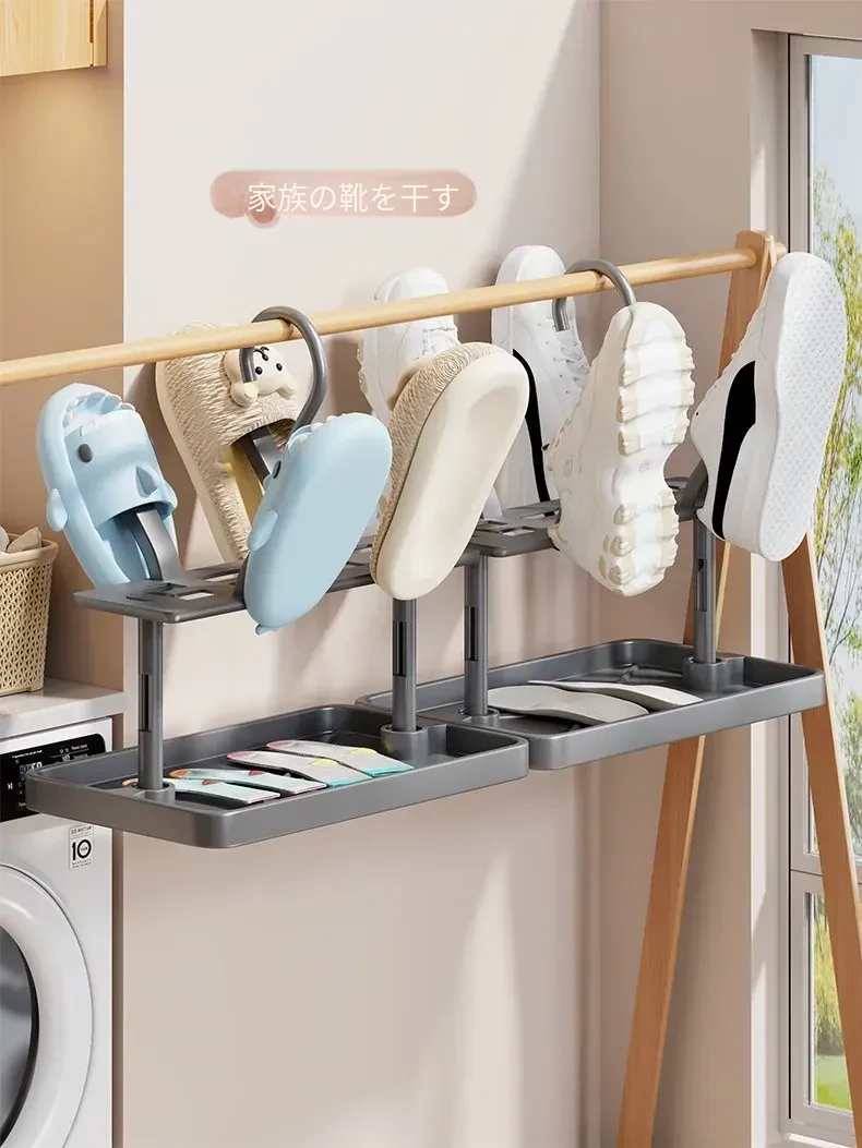 バルコニー用靴干しラック|室外サンダル掛け|家庭用窓台・手すり用|洗濯物も楽々!おしゃれで便利な吊り下げ収納ラック!