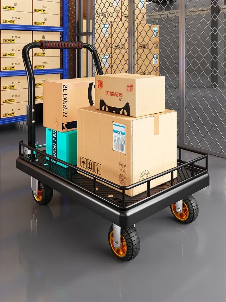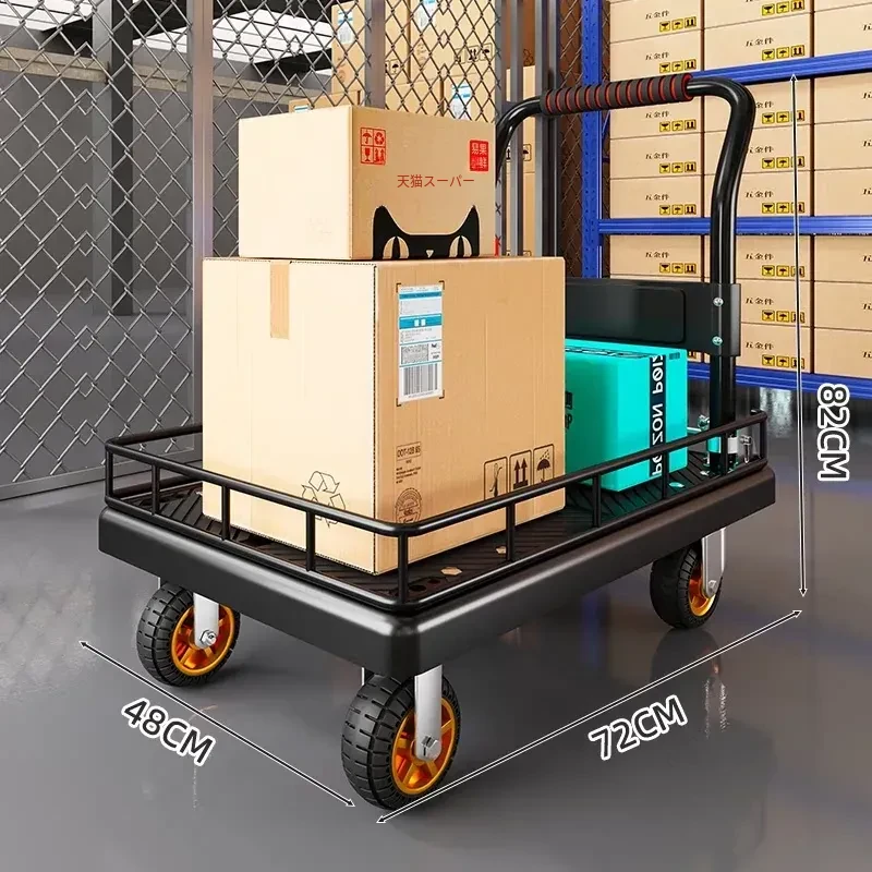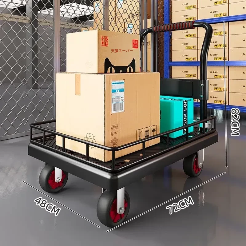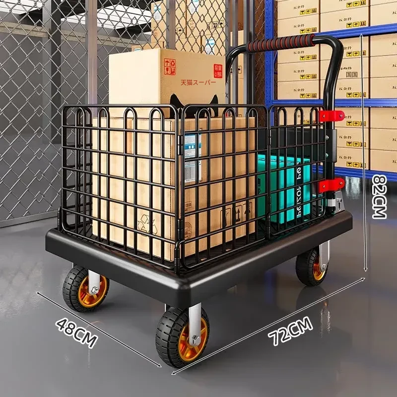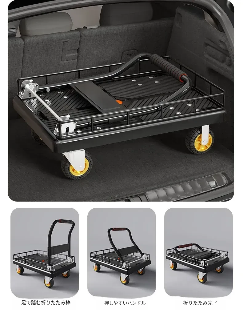 折りたたみ式軽量ハンドトラック - 家庭用・持ち運び便利・フェンス付きで安心の配送サポート!簡単に荷物を運べる平板車で、宅配や買い物にも最適!