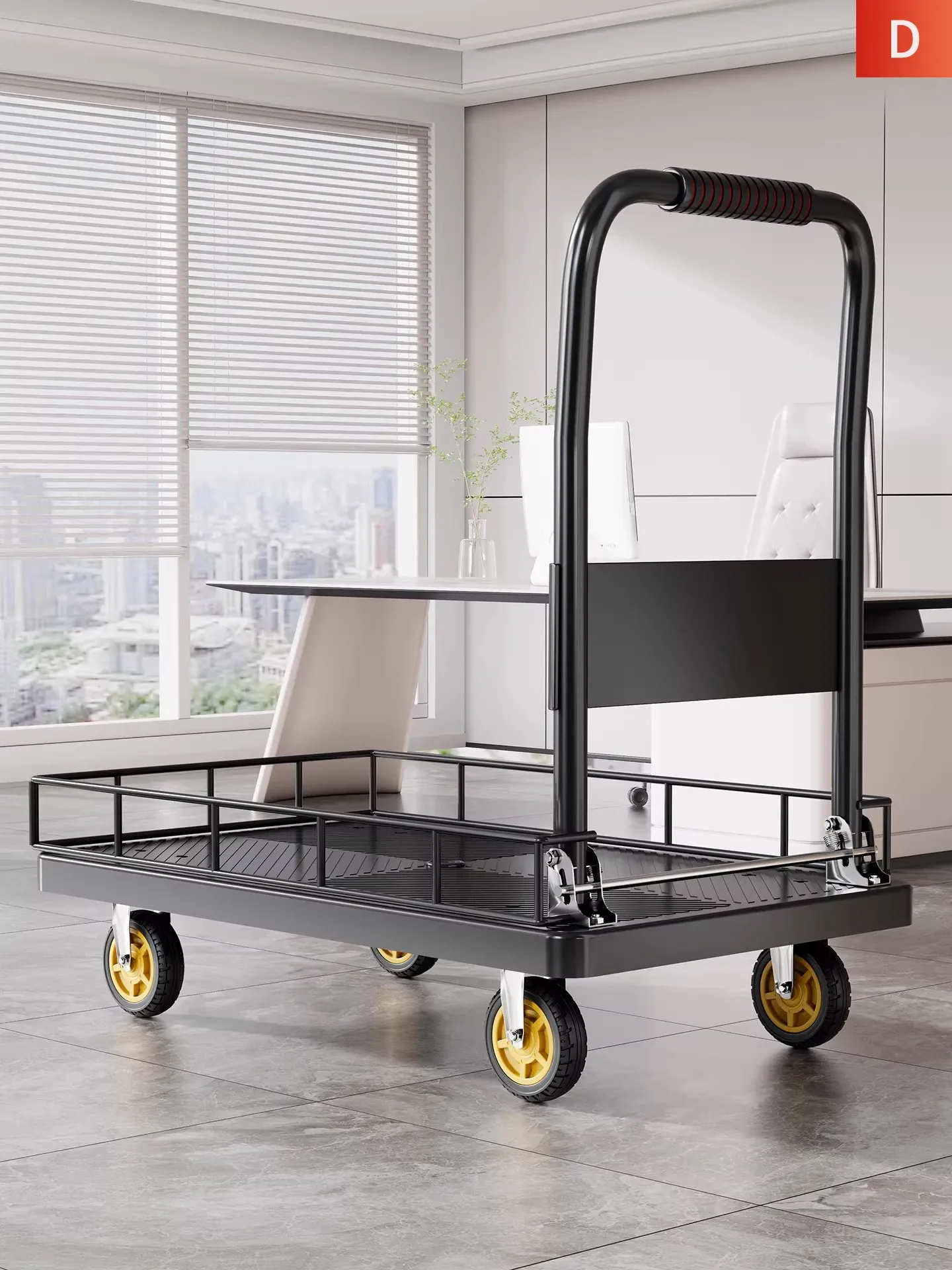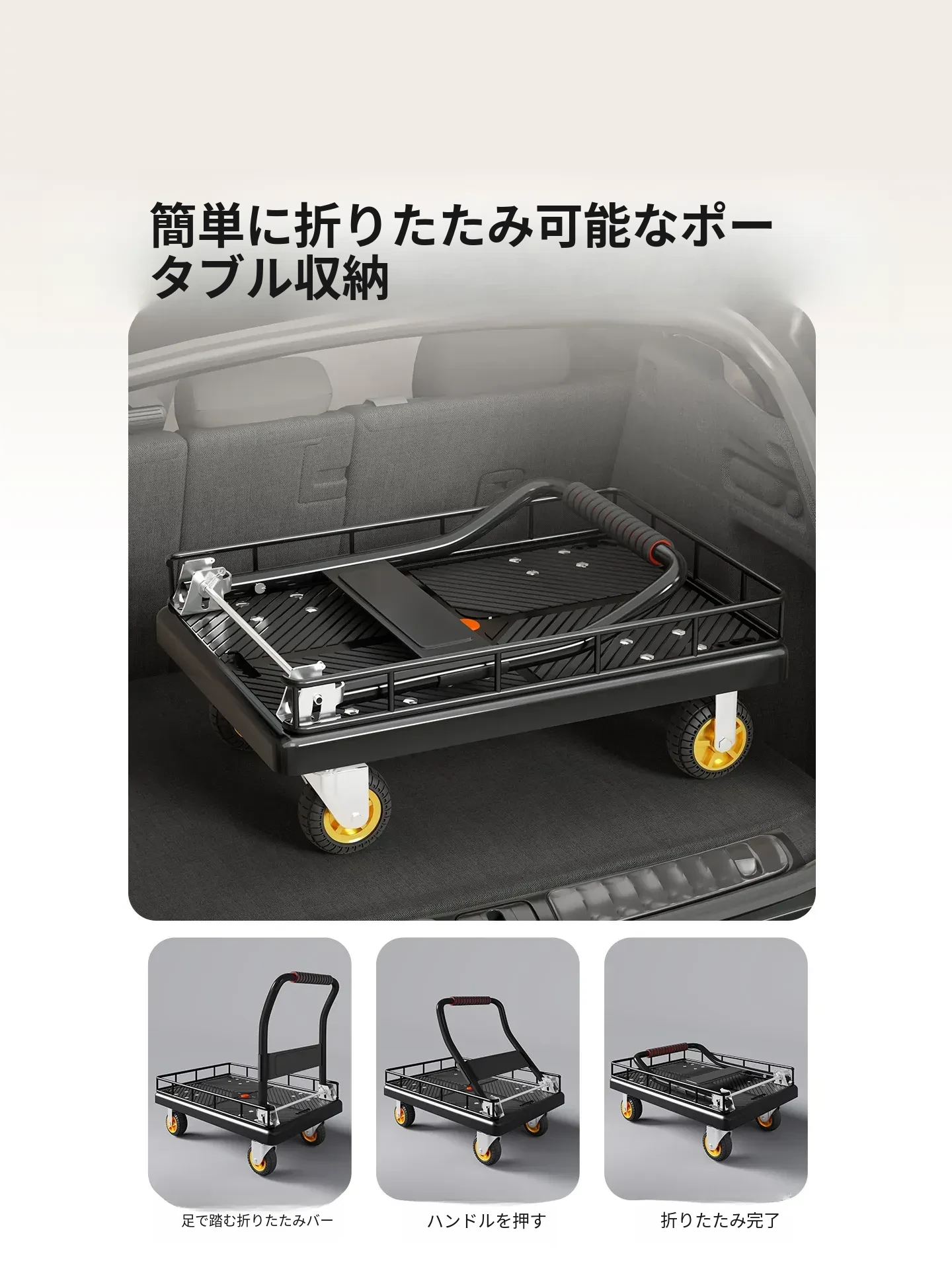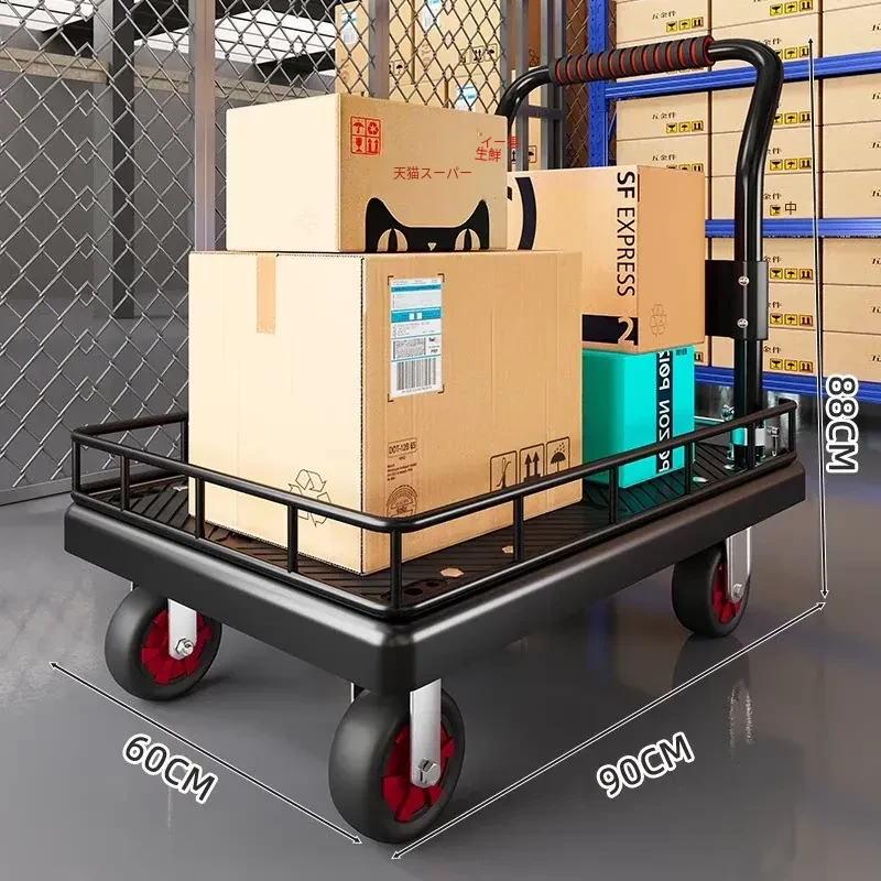 折りたたみ式軽量ハンドトラック - 家庭用・持ち運び便利・フェンス付きで安心の配送サポート!簡単に荷物を運べる平板車で、宅配や買い物にも最適!