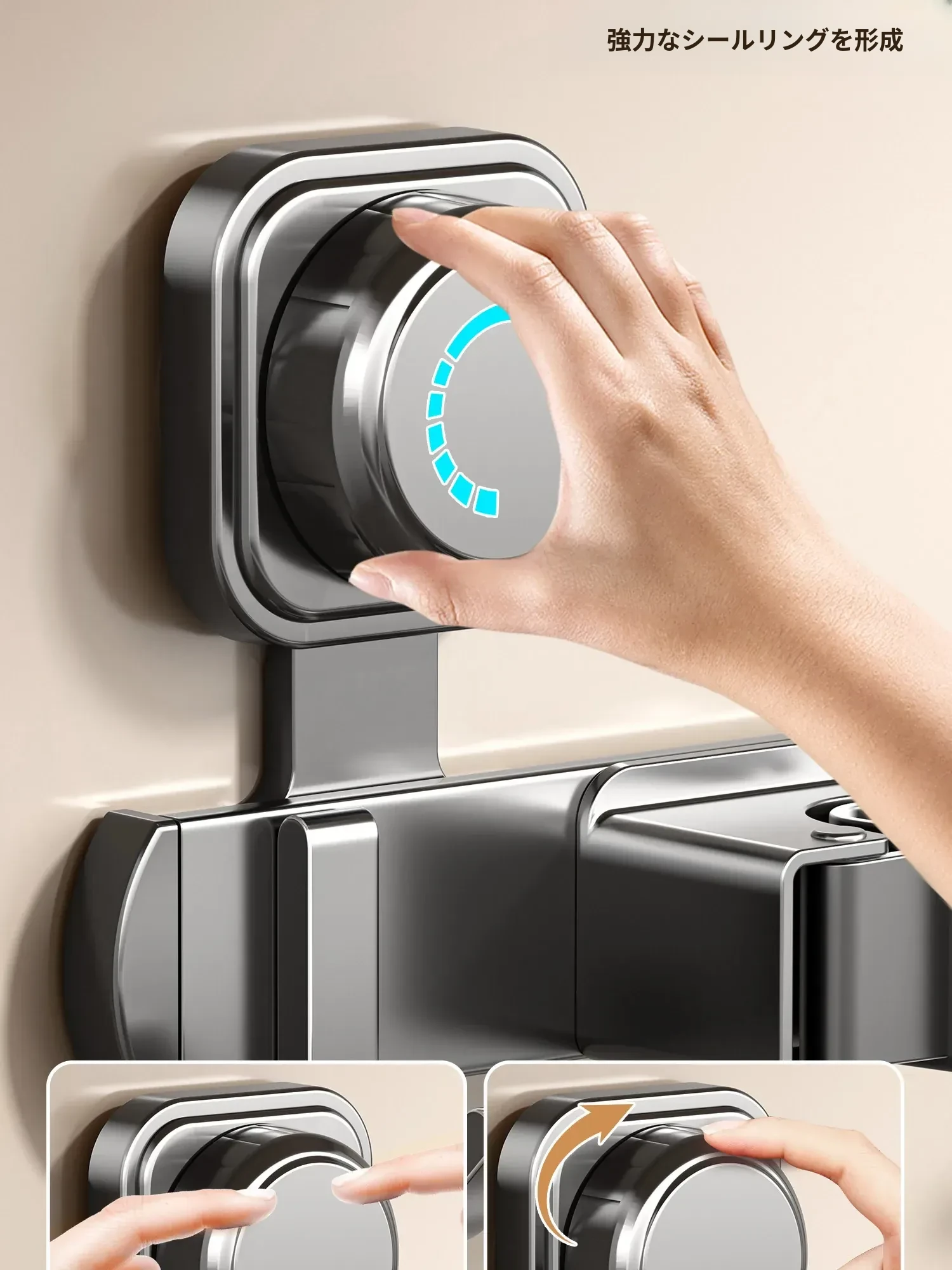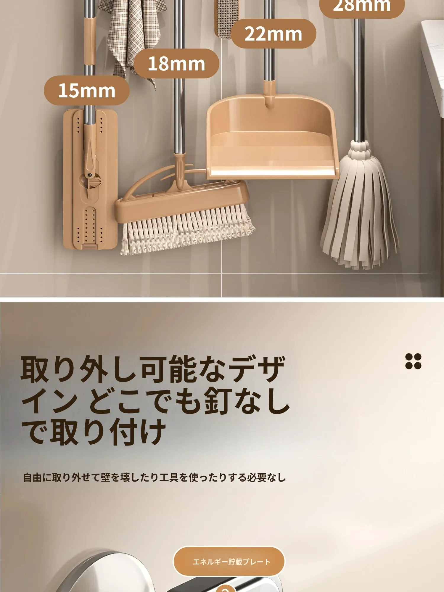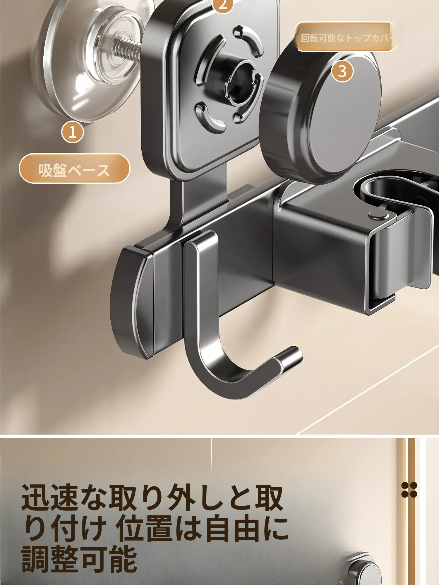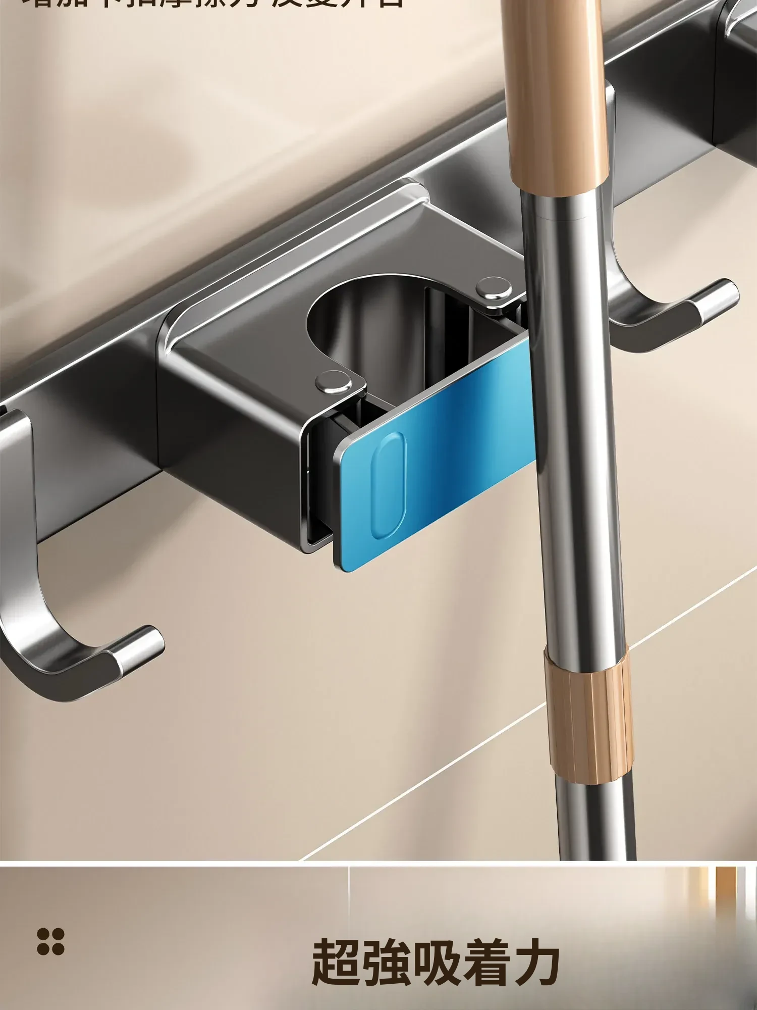 穴あけ不要!強力壁掛けモップホルダー - バスルームやトイレに最適な掃除道具収納フック!吸盤式で取り付け簡単、すっきり整理整頓!