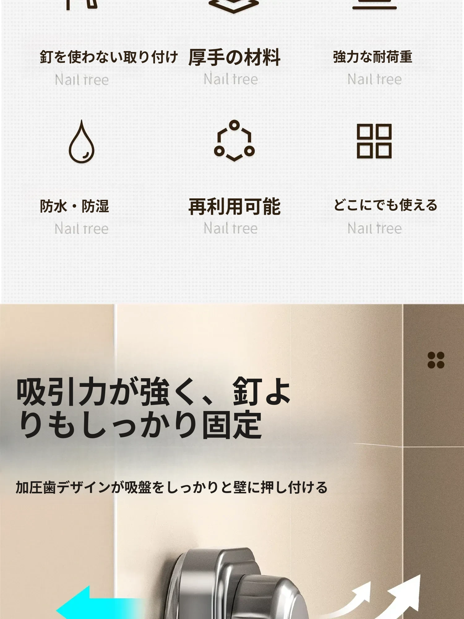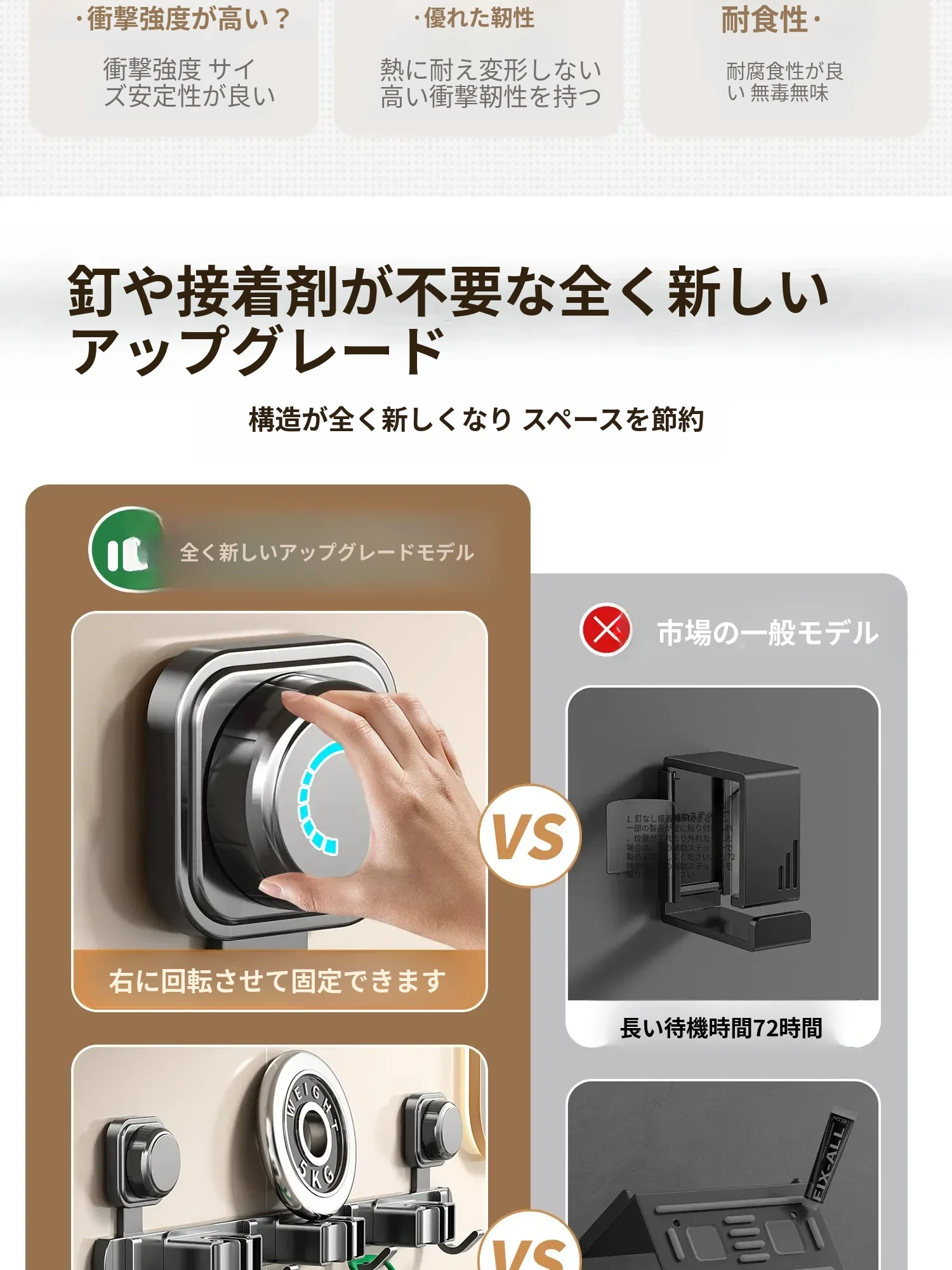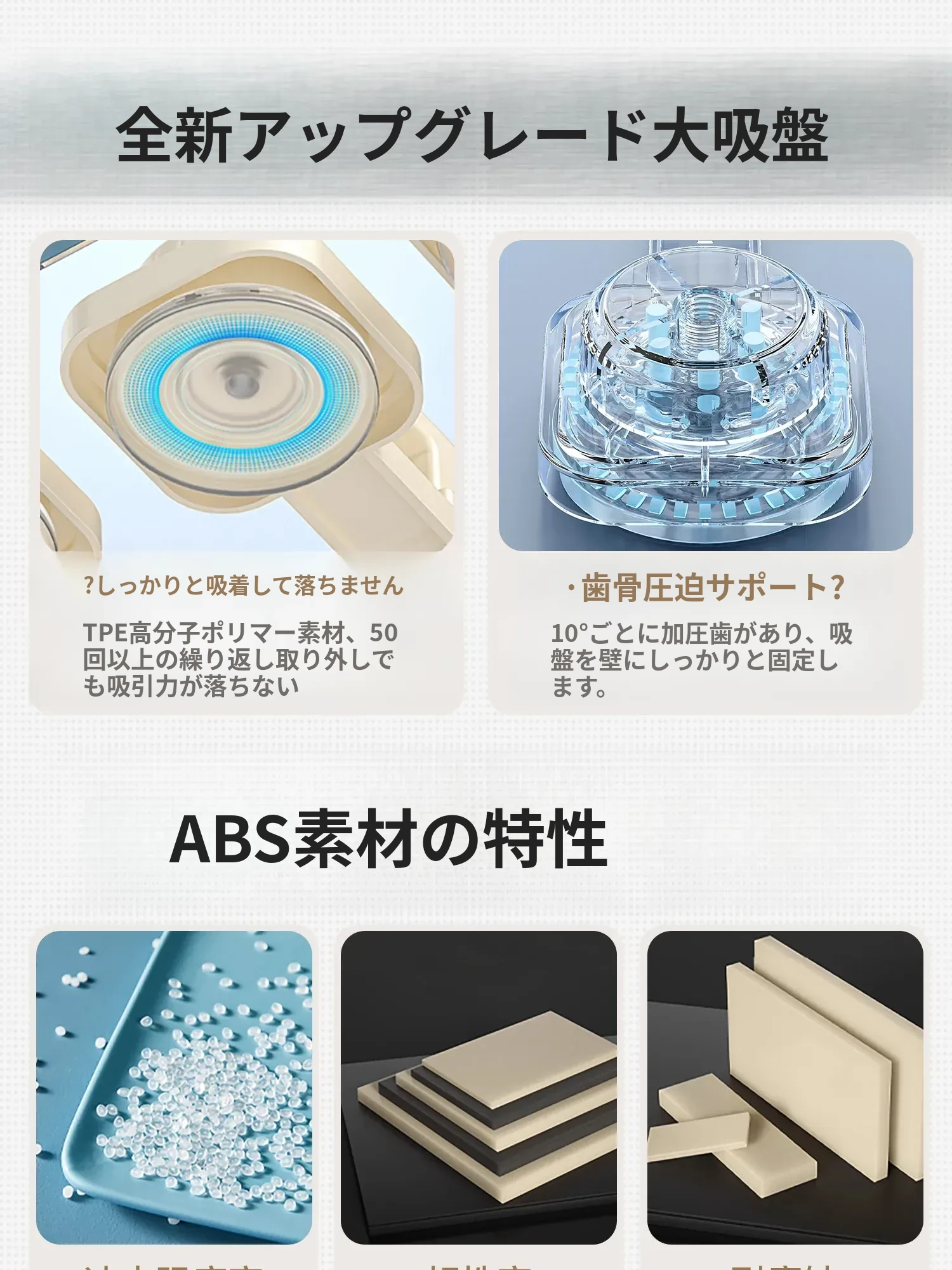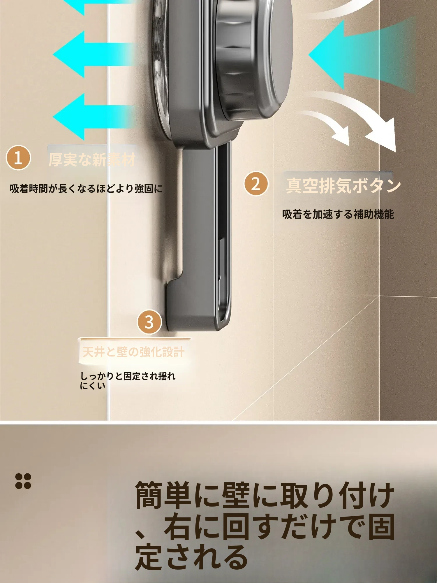 穴あけ不要!強力壁掛けモップホルダー - バスルームやトイレに最適な掃除道具収納フック!吸盤式で取り付け簡単、すっきり整理整頓!
