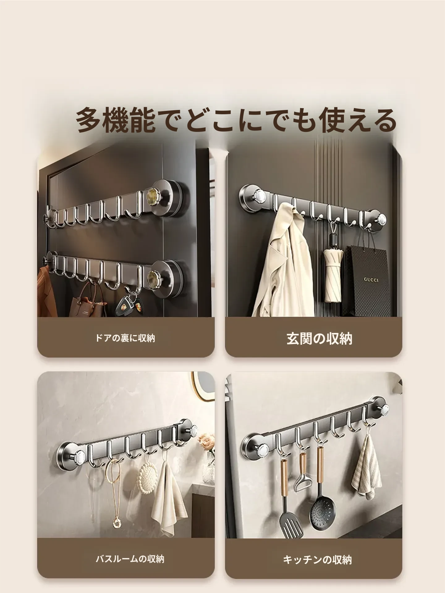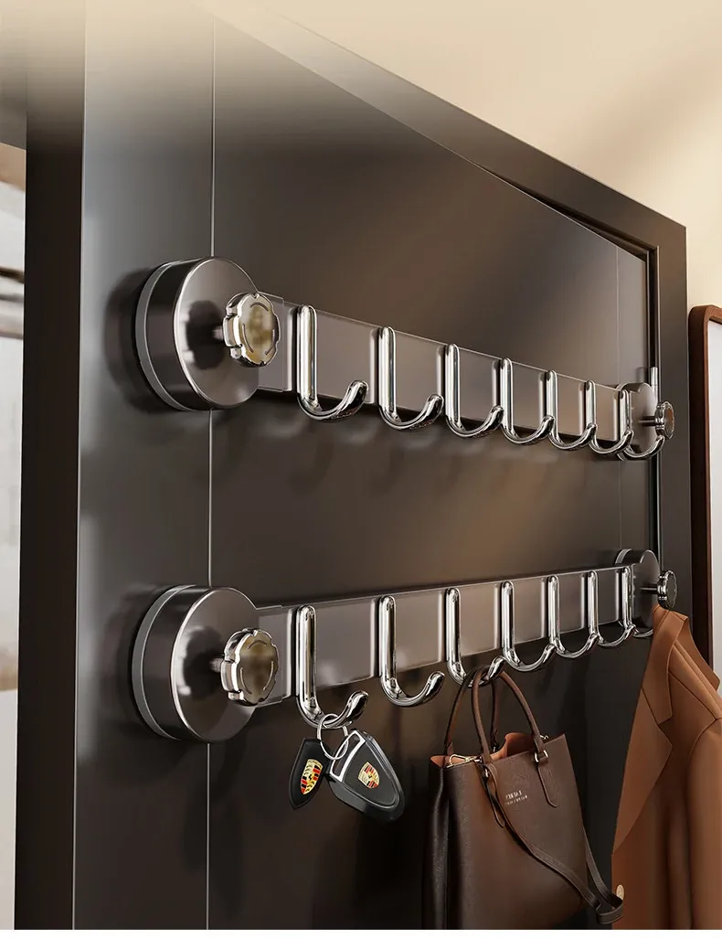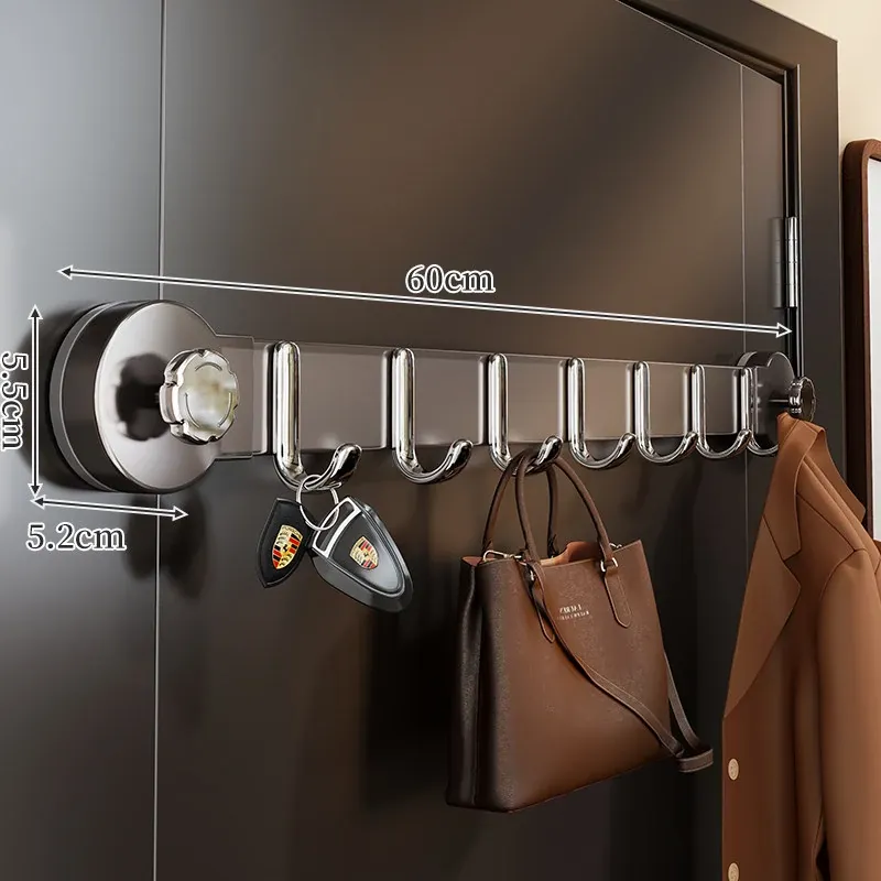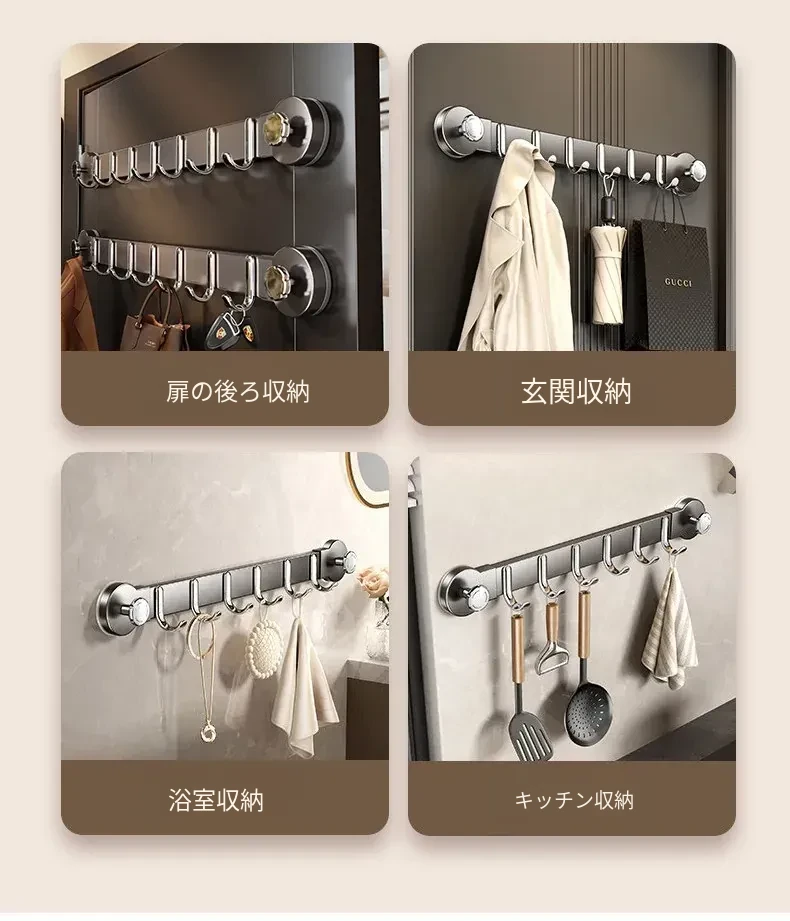 強力吸盤フック一列タイプ!ドア裏に簡単取り付け、穴を開けずに衣類やバス用品をしっかり支えます。おしゃれで便利な収納ソリューションをお楽しみください!