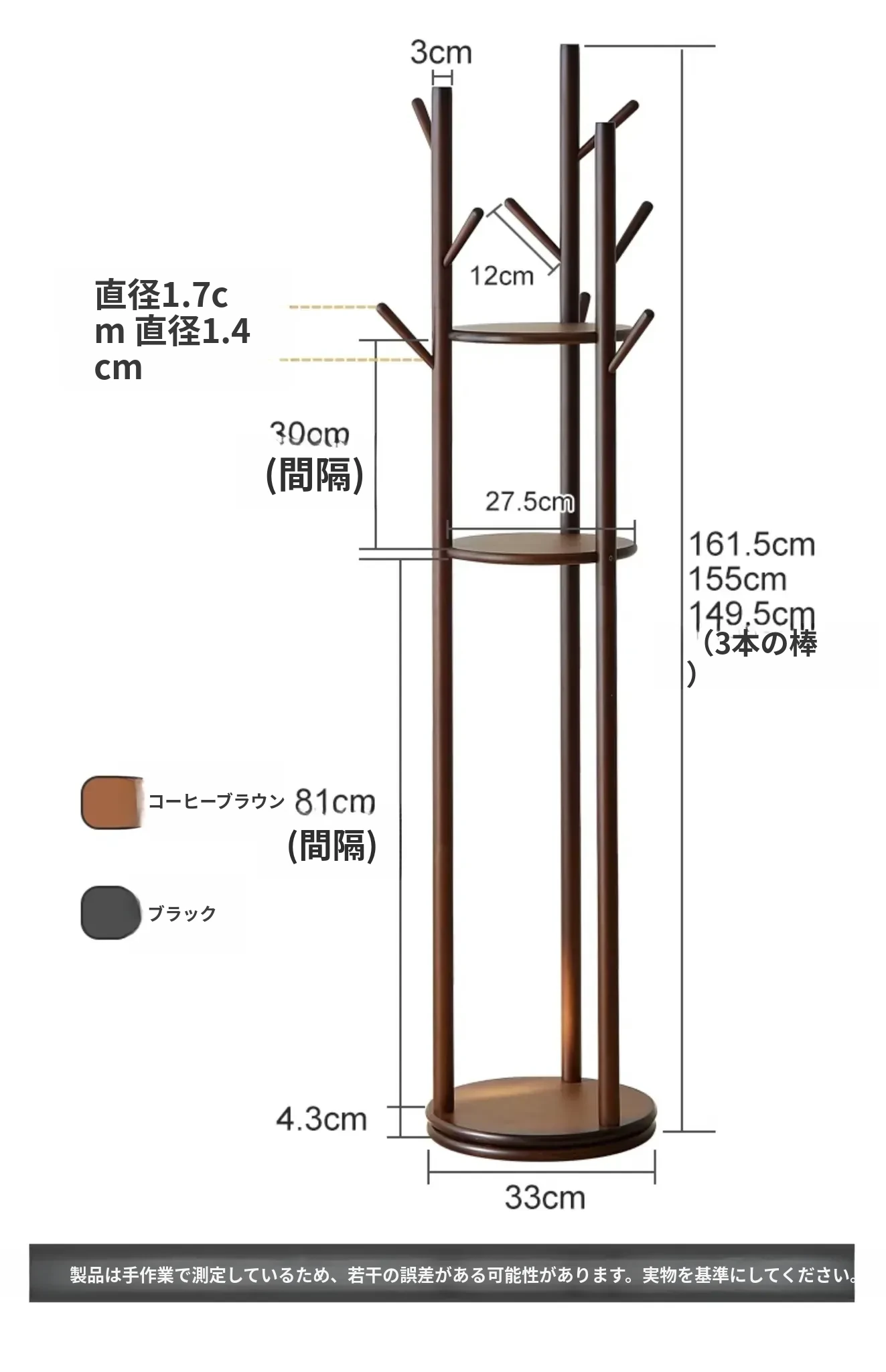 回転ハンガーラック【ブラウン】