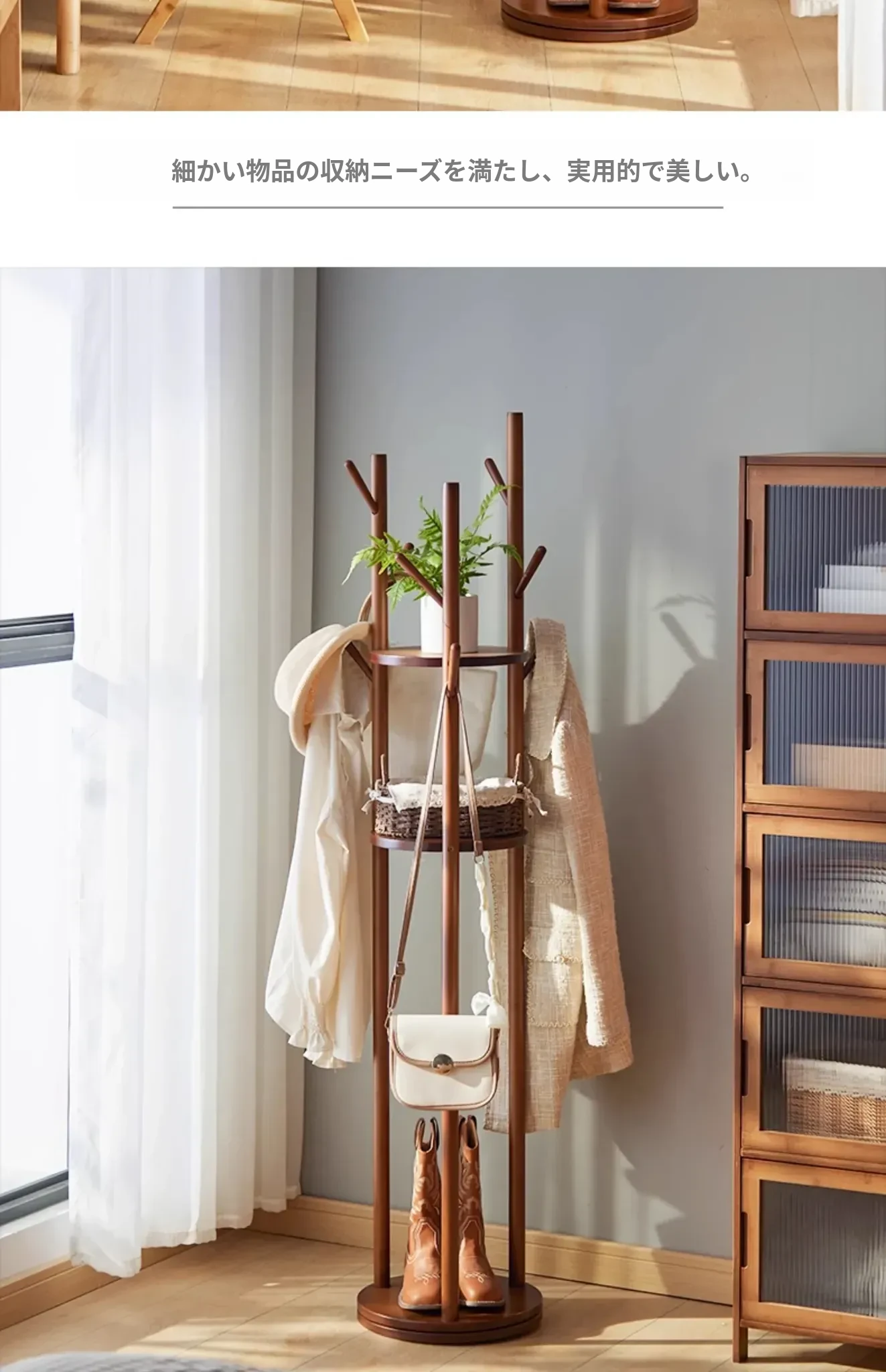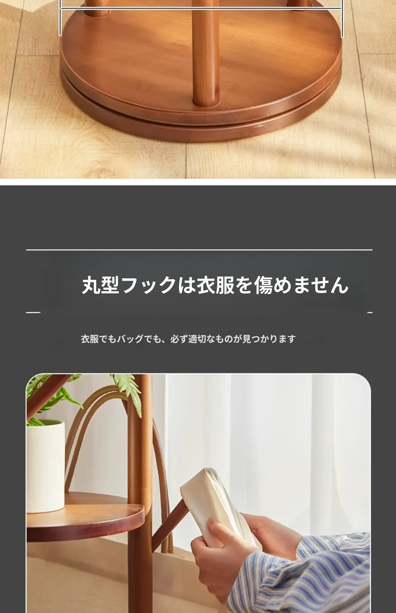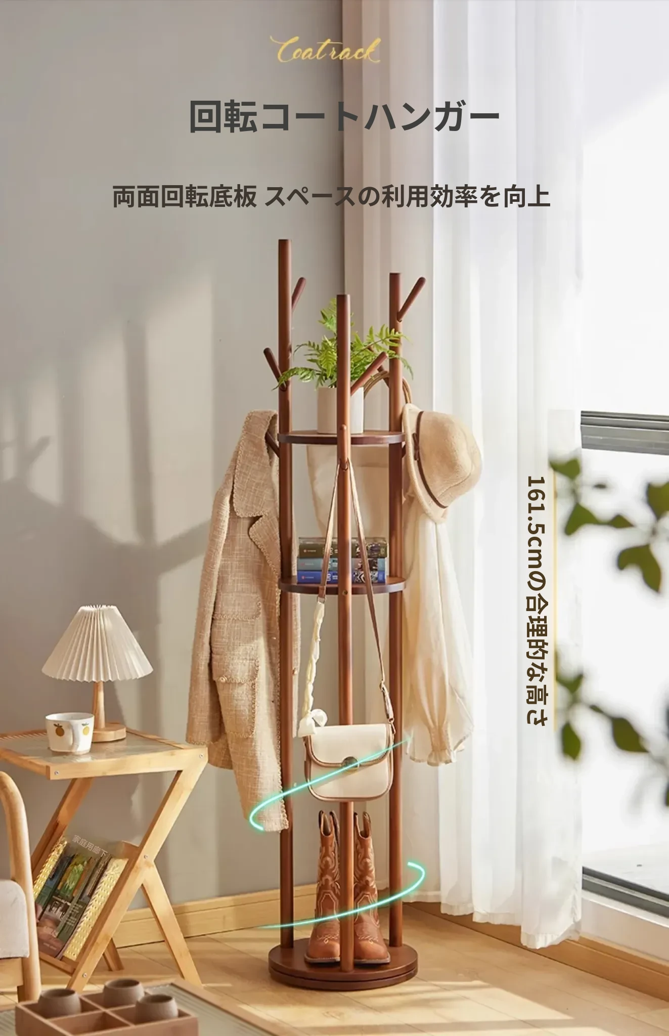 回転式衣類ハンガー - おしゃれなリビングや寝室、玄関に最適!スリムなデザインで省スペース、簡単に衣類を整理できるスタンド式コートラック。角にぴったりフィットするので、使い勝手抜群!