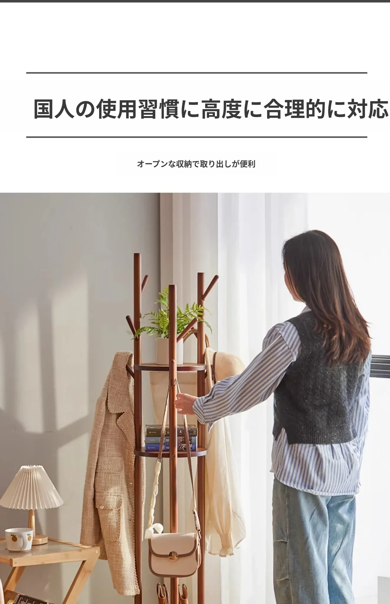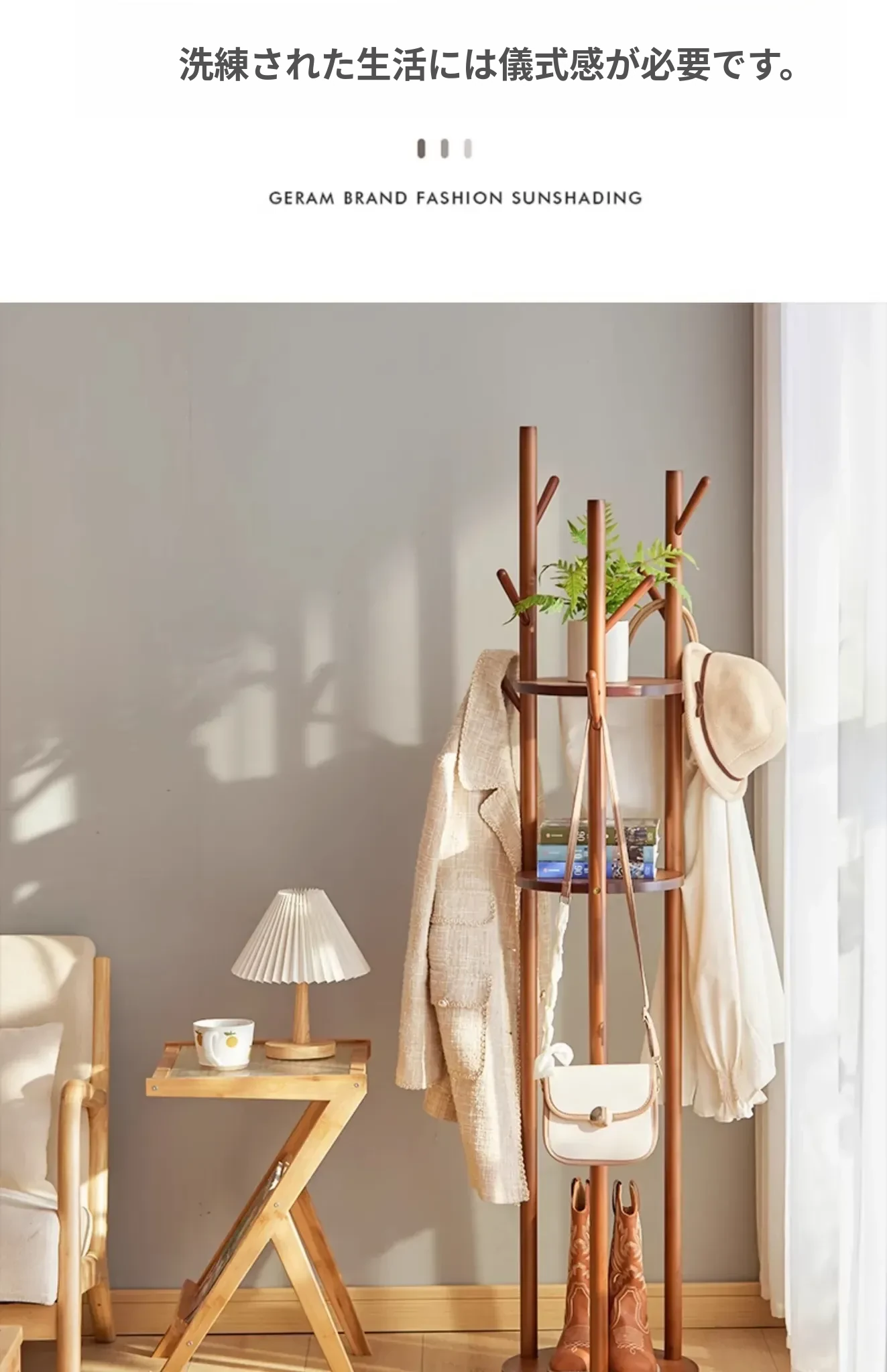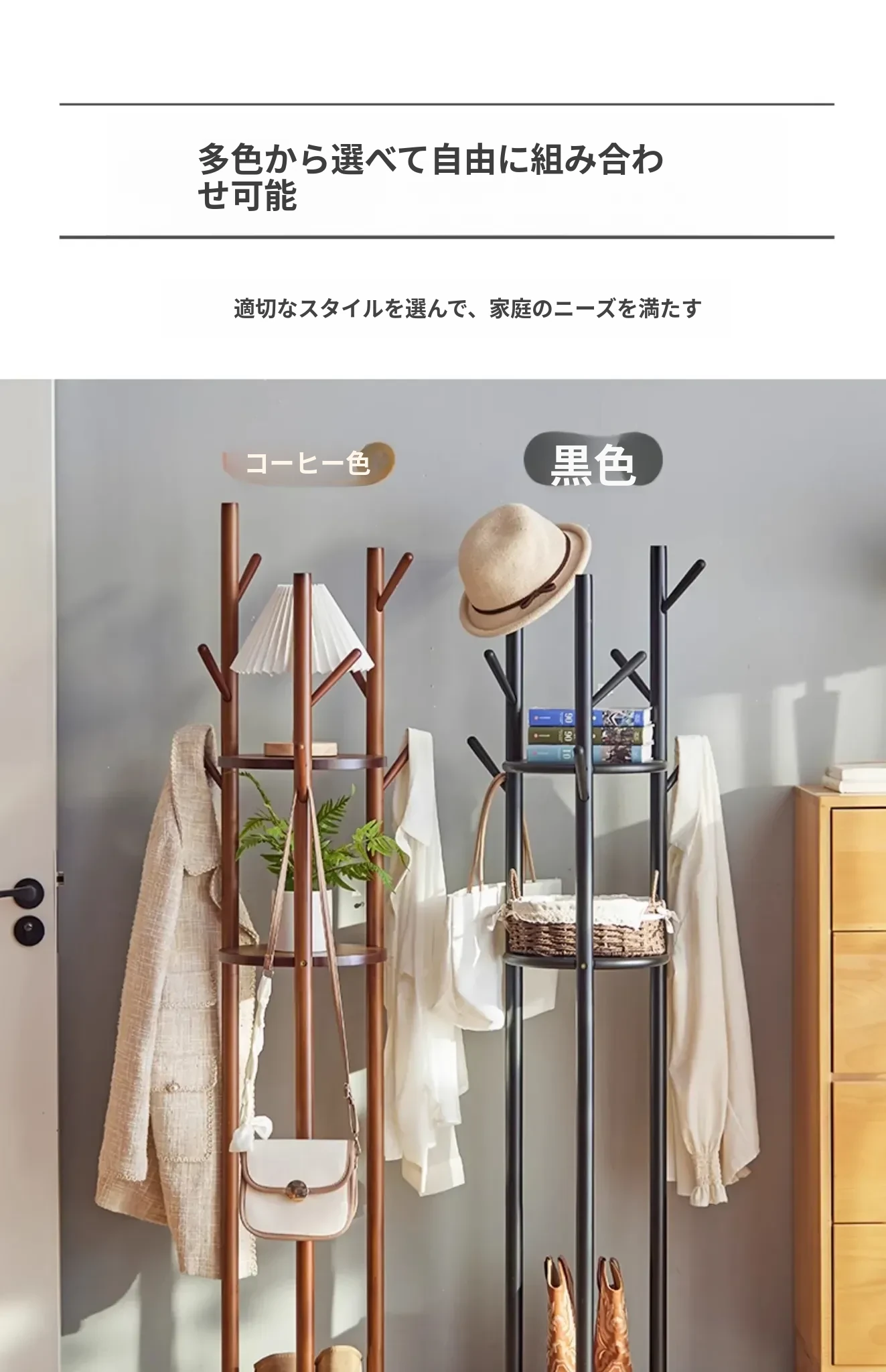 回転式衣類ハンガー - おしゃれなリビングや寝室、玄関に最適!スリムなデザインで省スペース、簡単に衣類を整理できるスタンド式コートラック。角にぴったりフィットするので、使い勝手抜群!