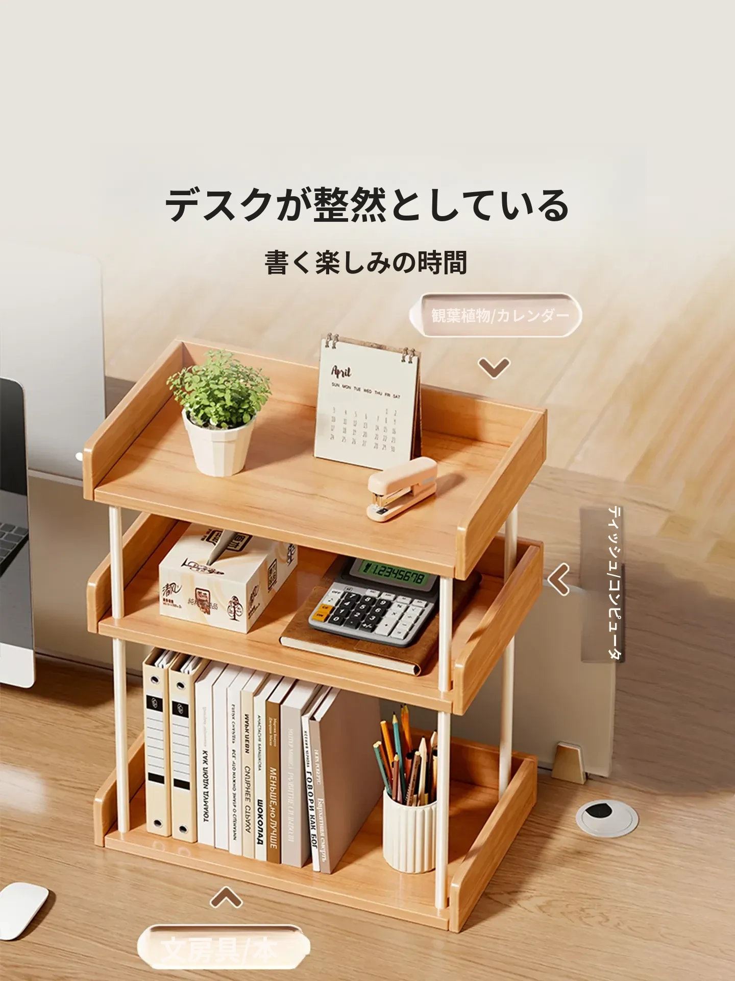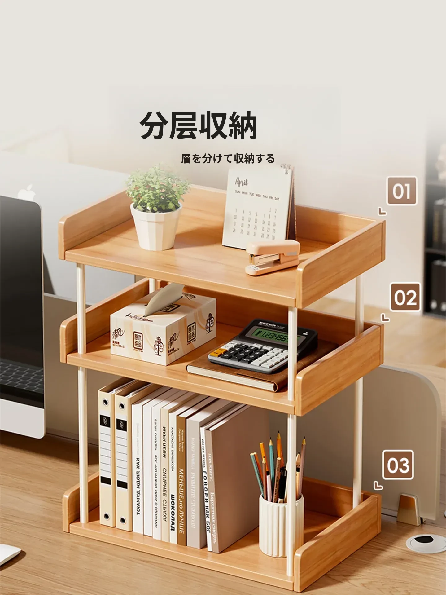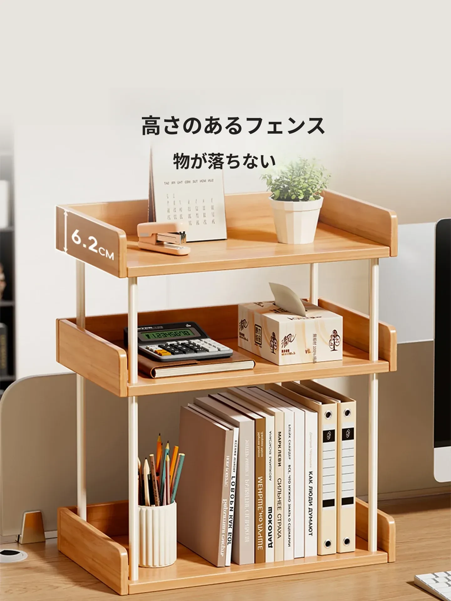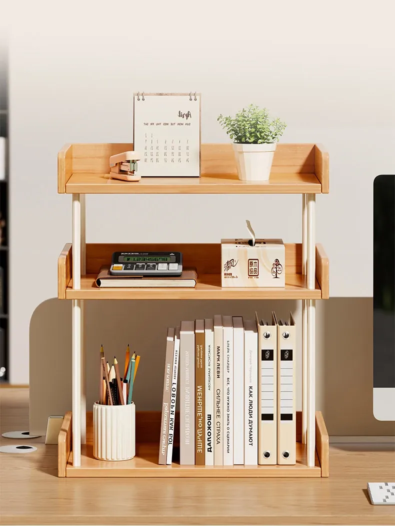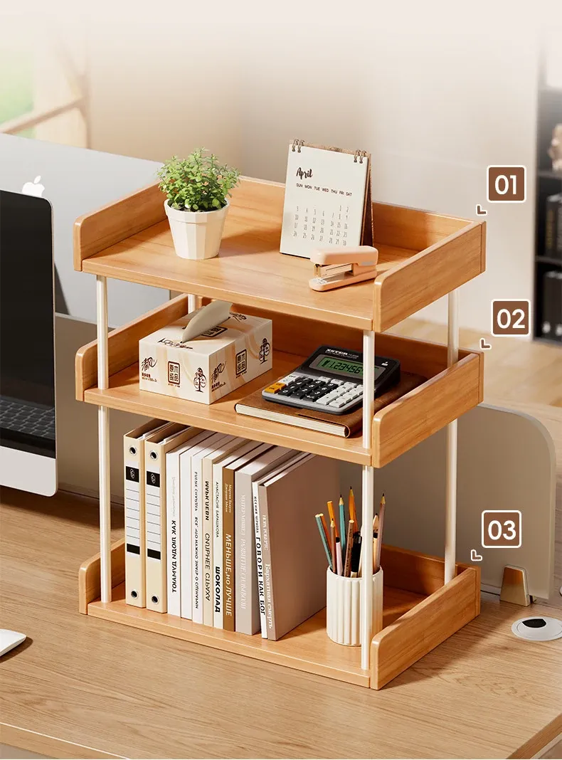 実木製デスク上収納ラック|寮やオフィスに最適!文房具や教科書をスッキリ整理できる大容量タイプ!おしゃれで機能的な収納で、快適な作業環境を実現!