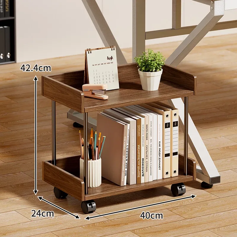 ウォールナット色キャスター付きタイプ(二段)【輸入無垢材】