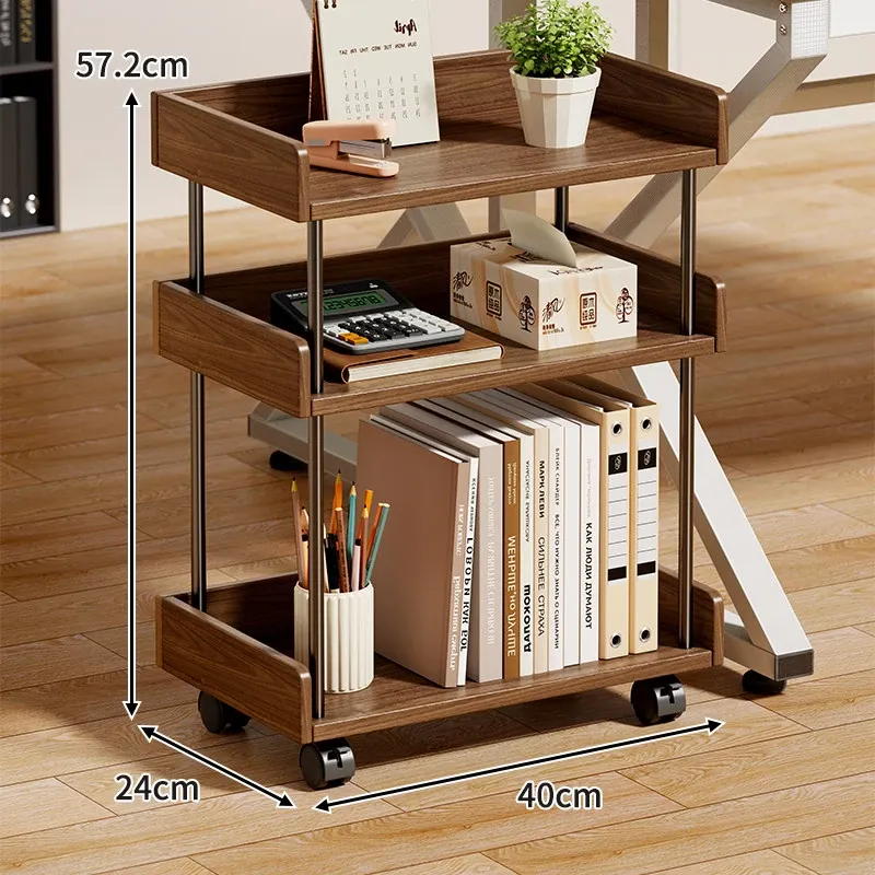 ウォールナット色キャスター付きタイプ(三段)【輸入無垢材】