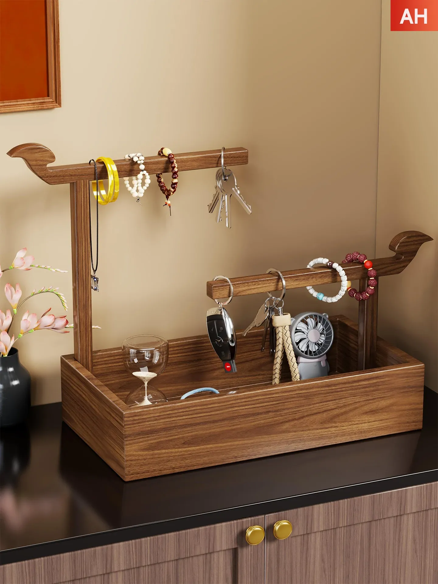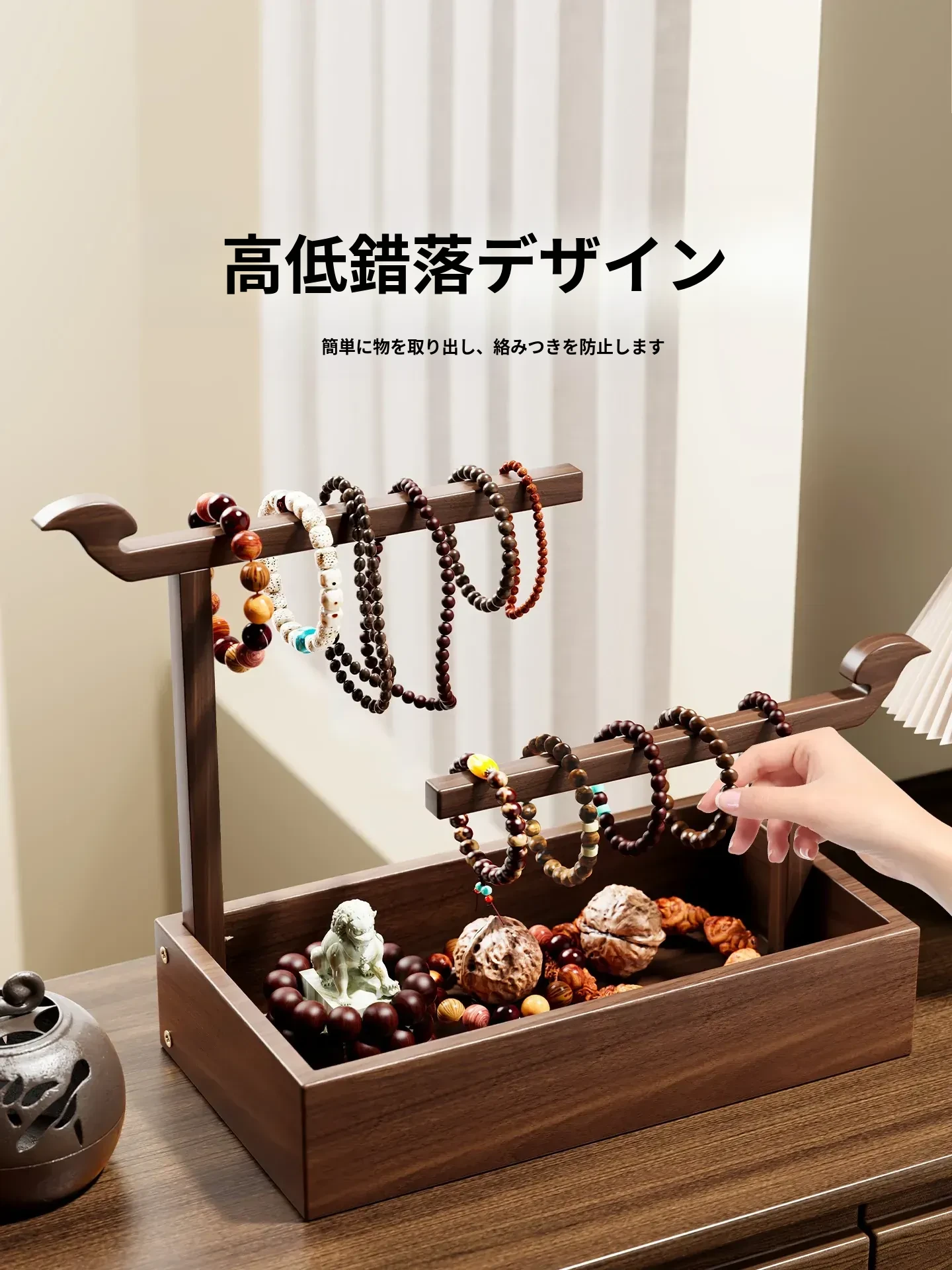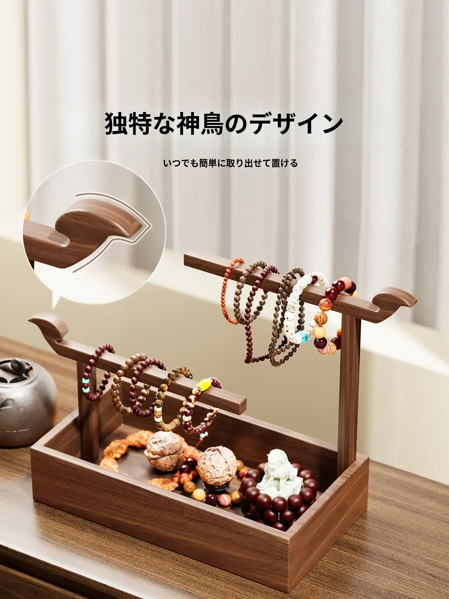 天然木製のジュエリーハンガー - ネックレス、クリスタルブレスレット、キーホルダーを美しくディスプレイ!洗練されたデザインで、お部屋をおしゃれに演出します。収納力抜群で、アクセサリーをすっきり整理!