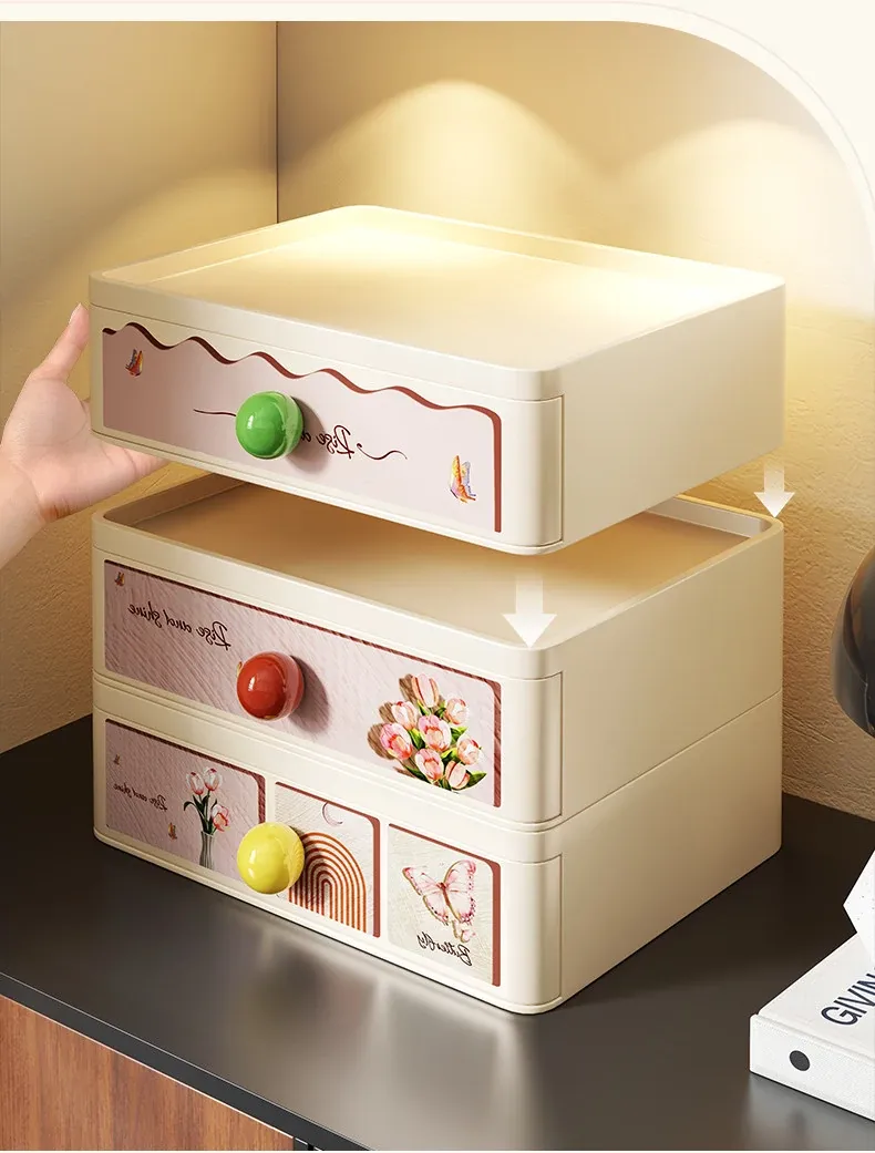 重ねられるデスク収納ボックス - 玄関やリビングに最適!大容量で鍵や小物をすっきり整理できる引き出し式収納ラック。おしゃれで実用的なデザインで、あなたのスペースを美しく整えます!
