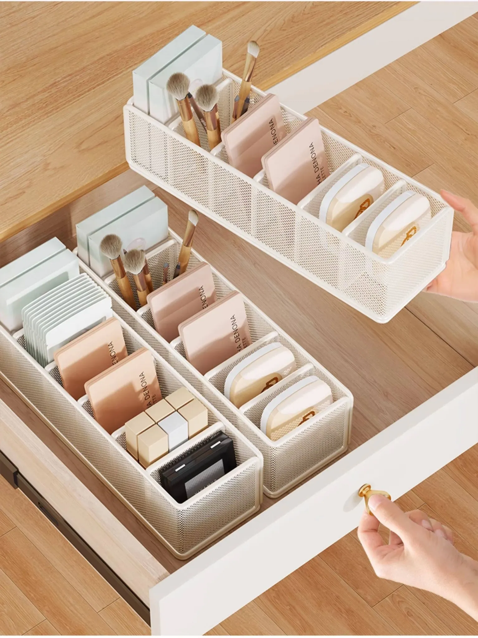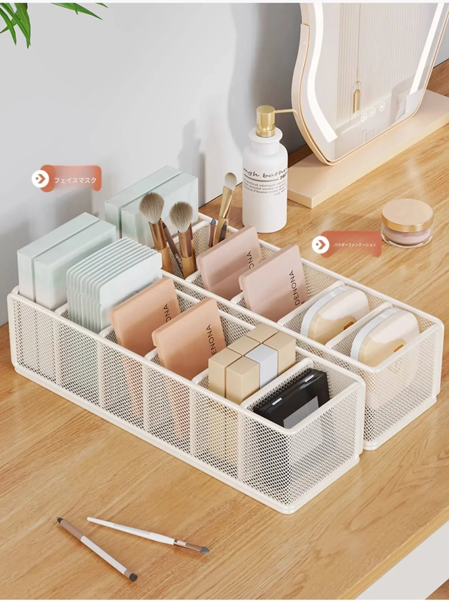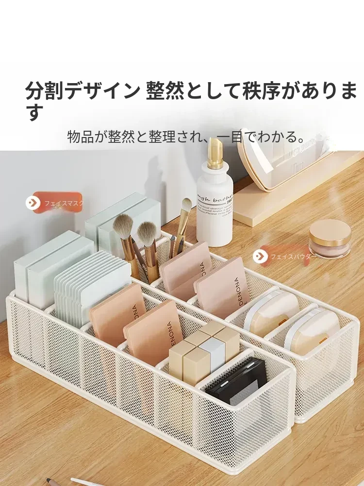 デスク用化粧品仕切り収納ラック - メイクアップテーブルに最適なアイシャドウパレット収納ボックス!寮のデスクにぴったりなフェイスマスク収納ラックで、スッキリ美しい整理整頓を実現!