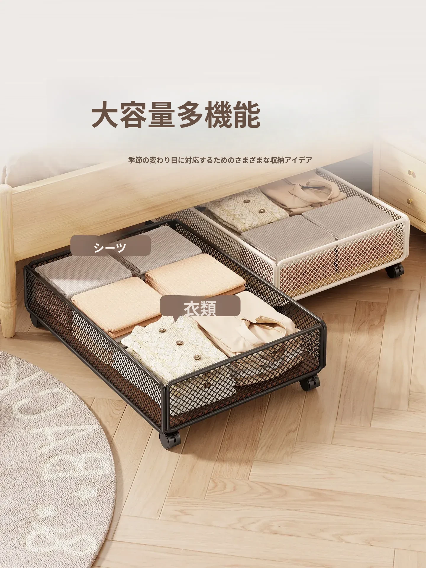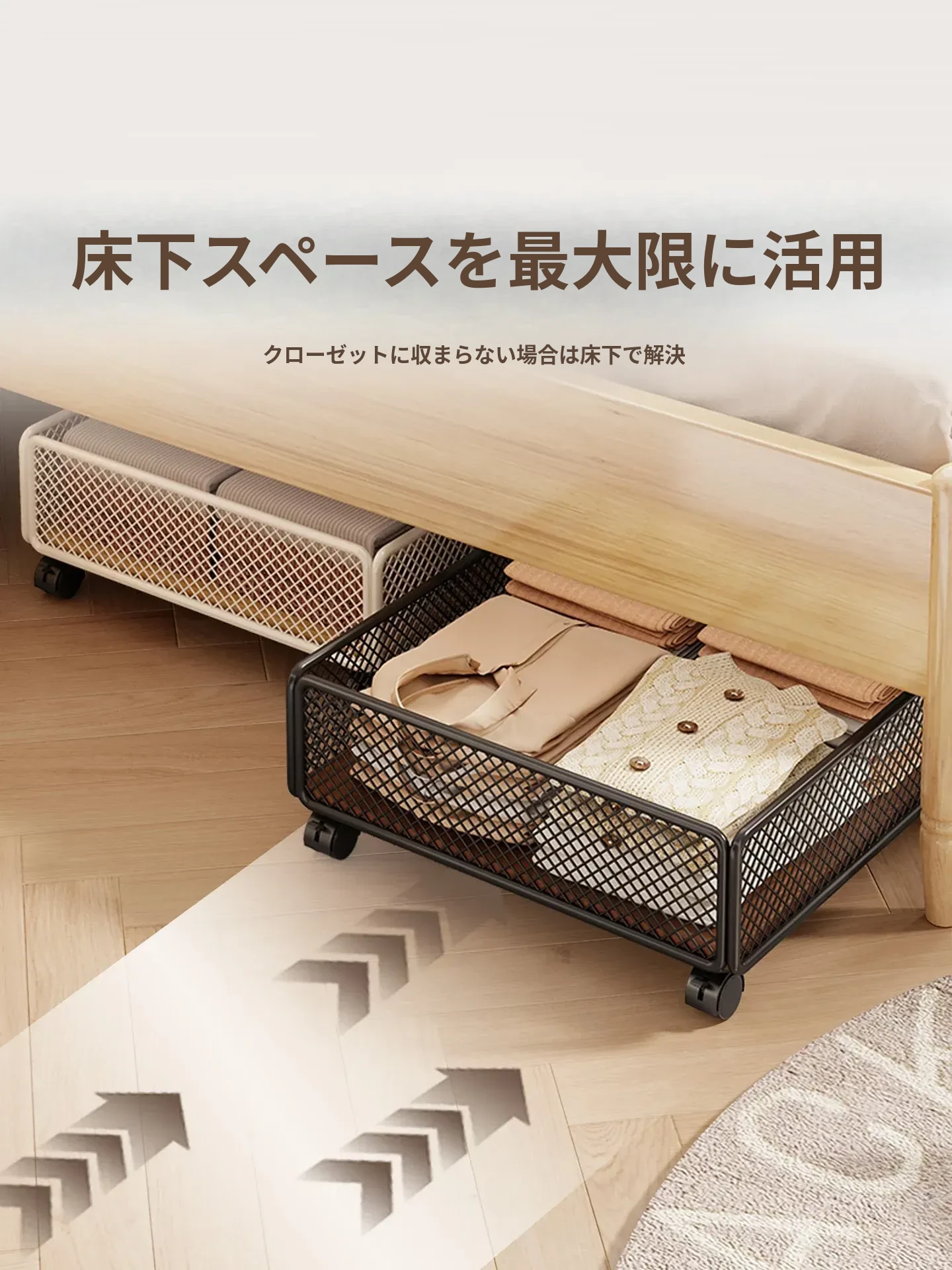 移動式ベッド下収納ボックス - キャスター付きの靴収納ラック!引き出し式で衣類や靴をスマートに整理整頓。省スペースでお部屋をスッキリ!