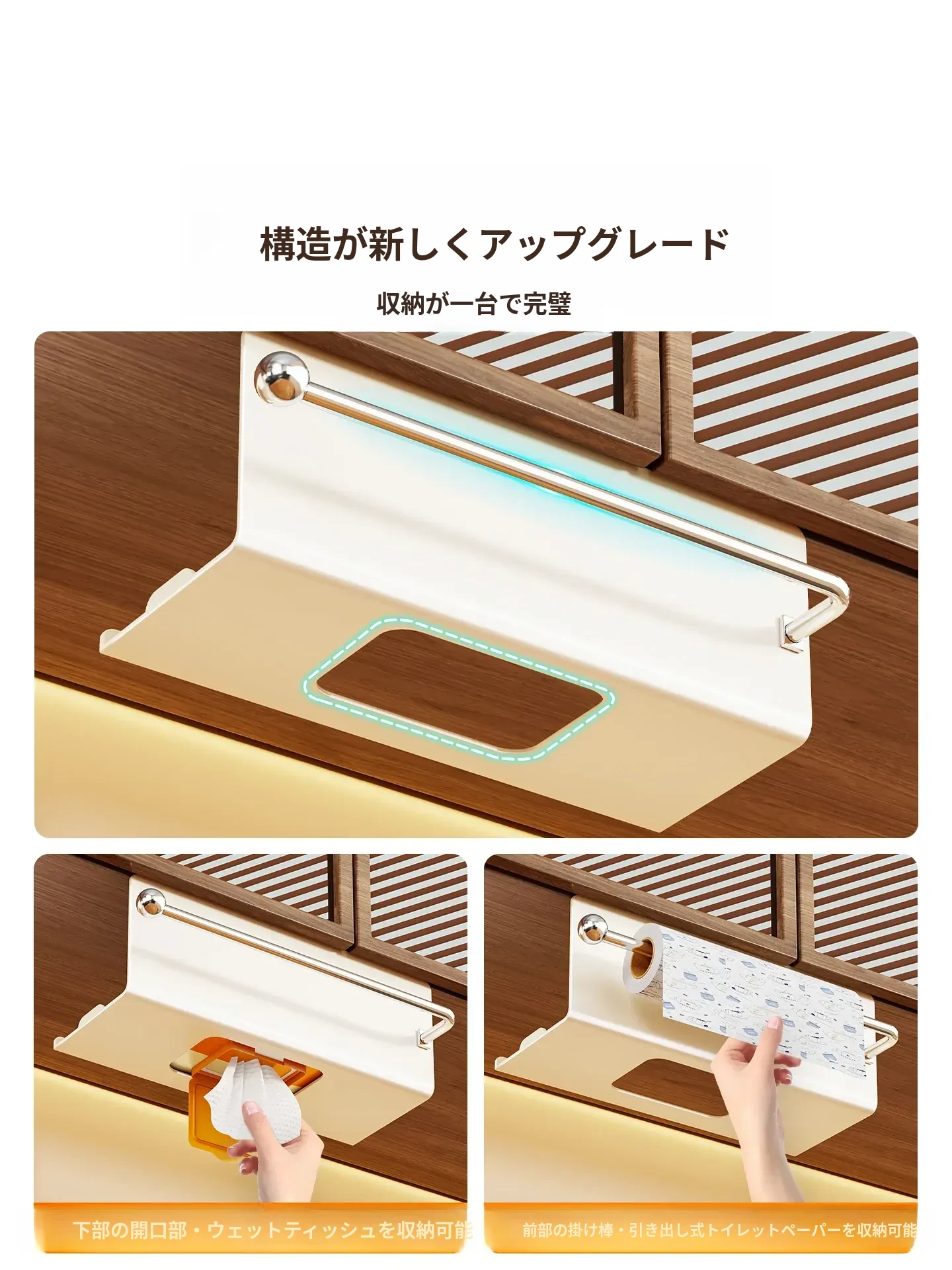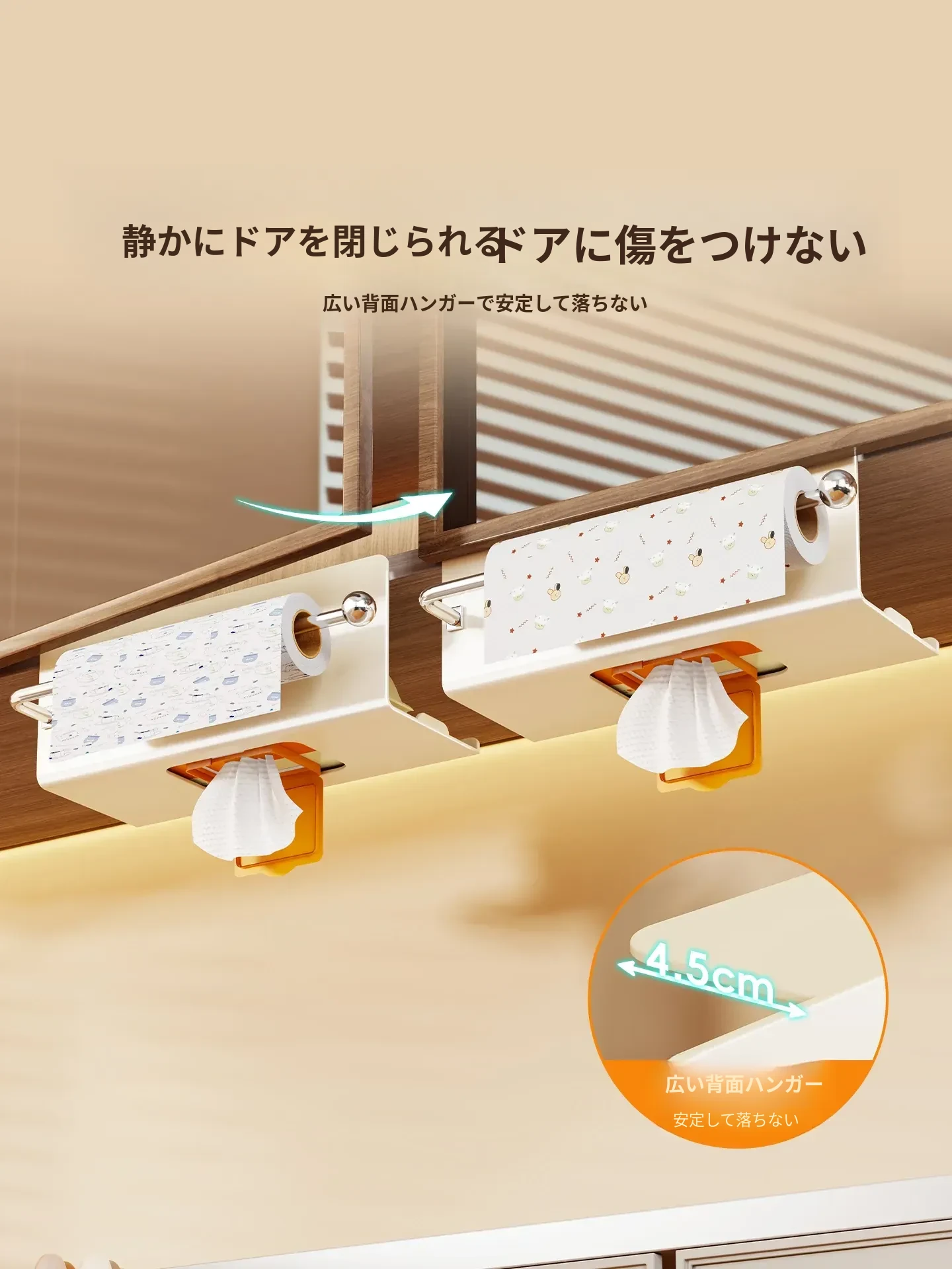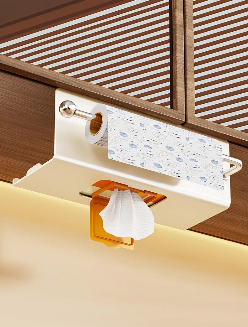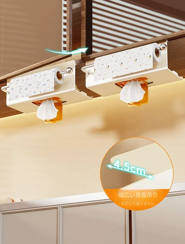 キッチンペーパー&ウェットティッシュ収納ボックス - 吊り下げ式ティッシュホルダー、タオルラック、キャビネット用ペーパーラックで、スペースを有効活用!すっきりとしたキッチンを実現します。