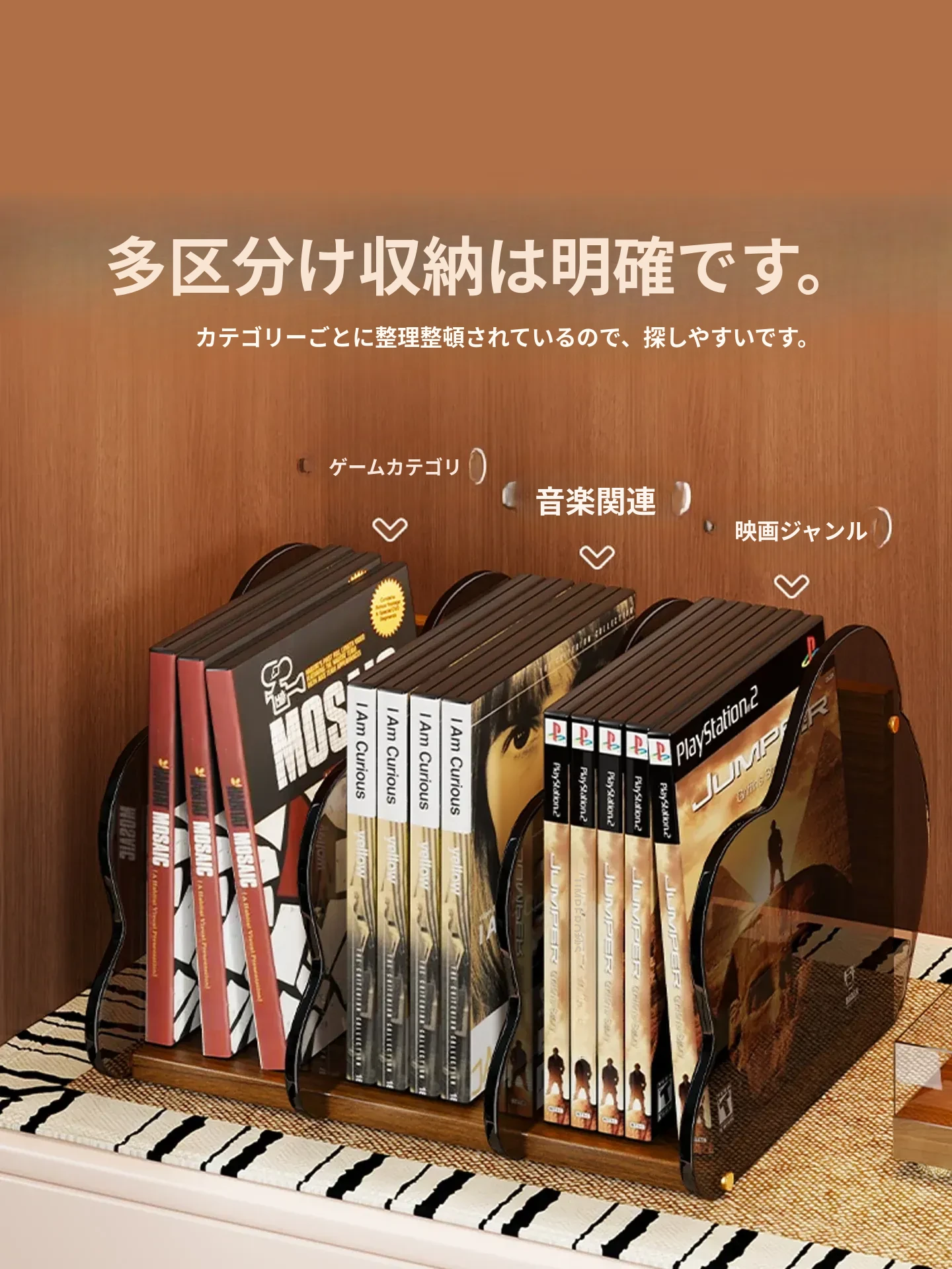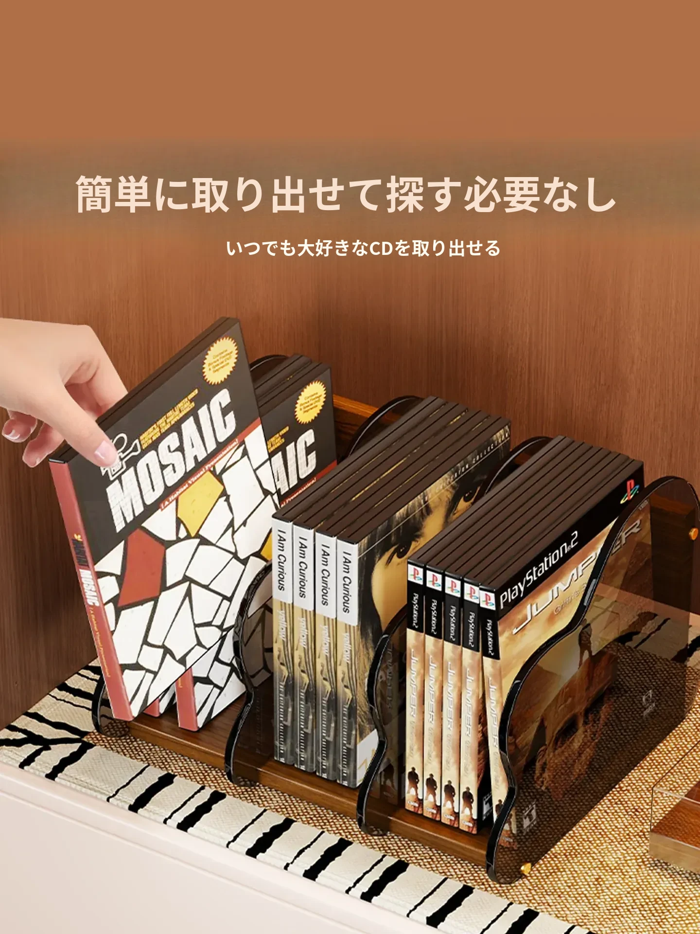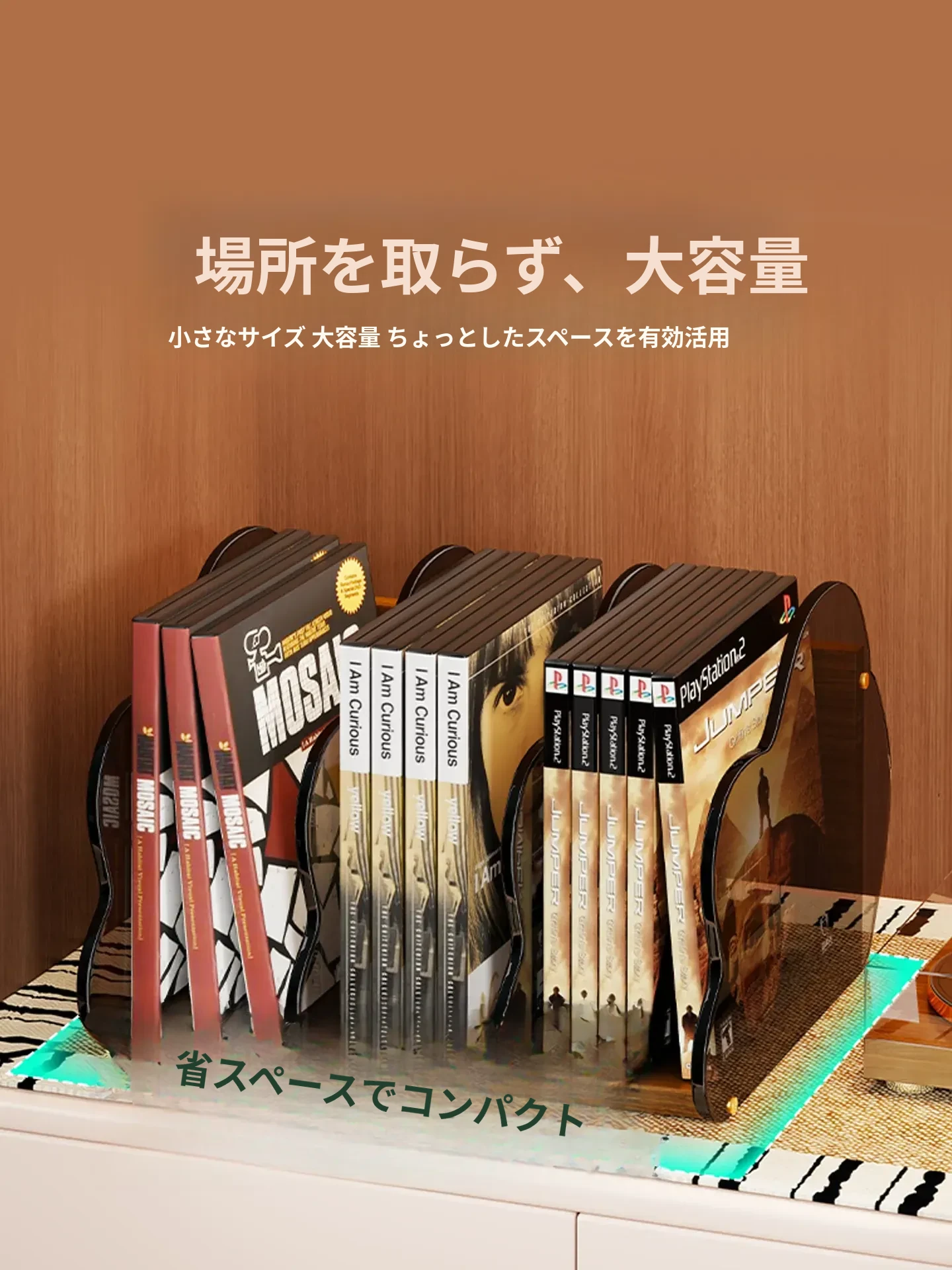 CD収納ボックス デスクトップ用 レコード・テープ・アルバムの整理・コレクションに最適!スタイリッシュなディスプレイラックで、おしゃれに音楽を楽しもう!