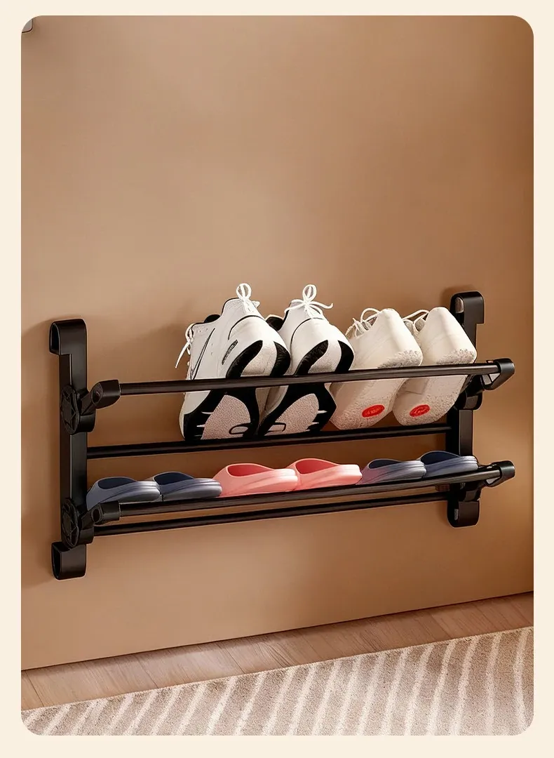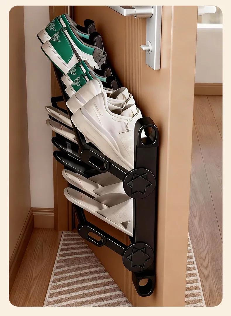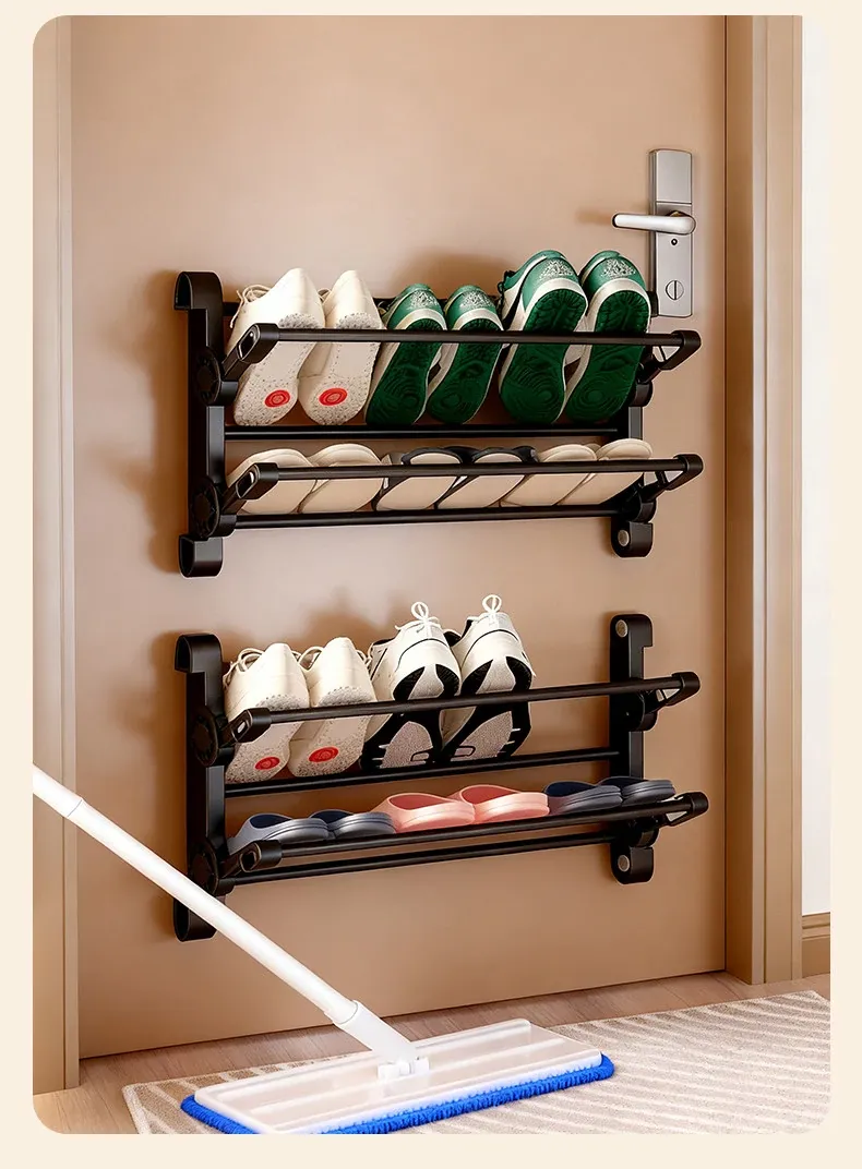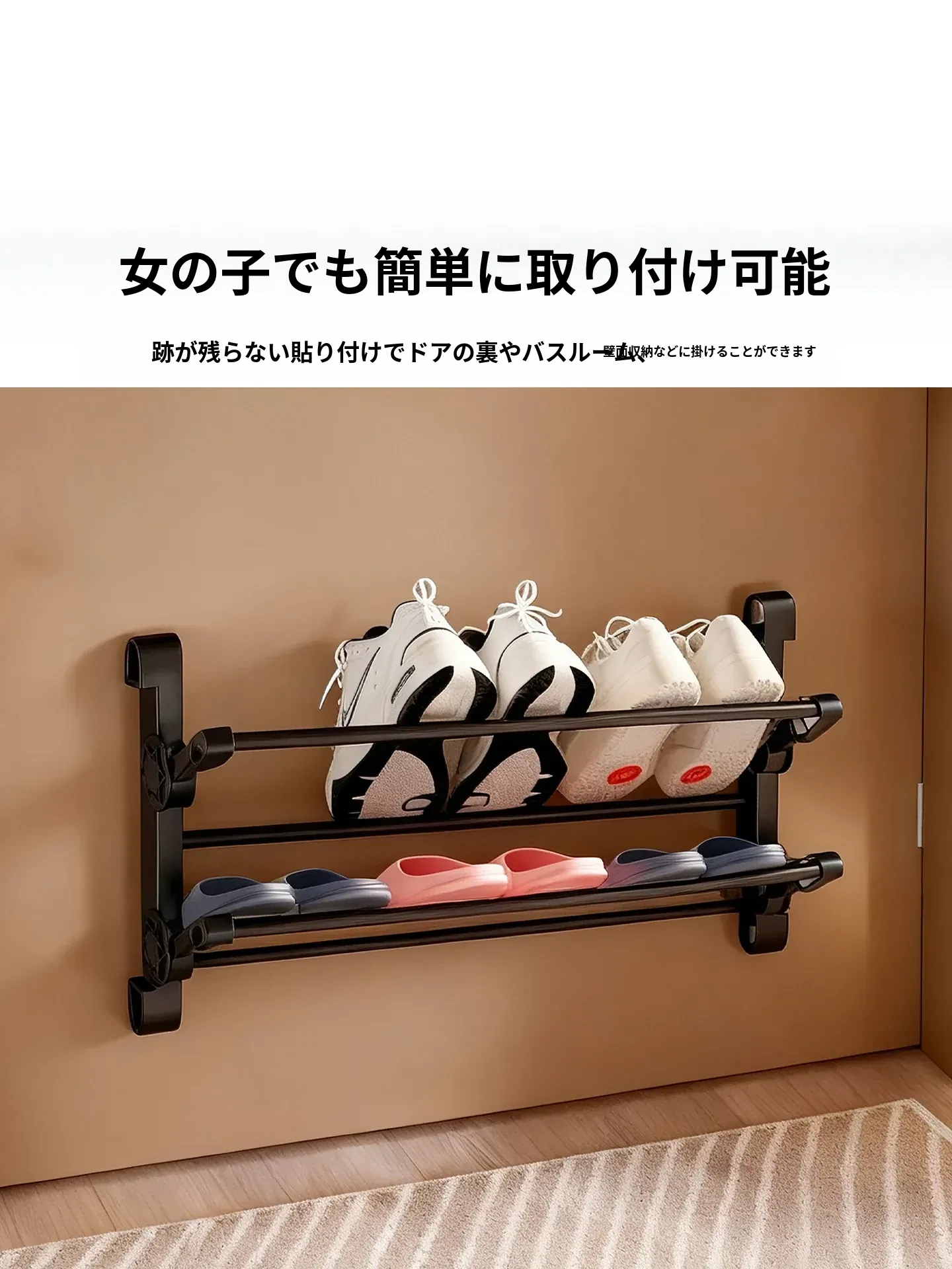 バスルーム壁掛けスリッパラック - 家庭用ドア裏折りたたみ収納、靴の水切り機能付き!おしゃれで便利な収納アイテムで、スッキリとした空間を実現しましょう!
