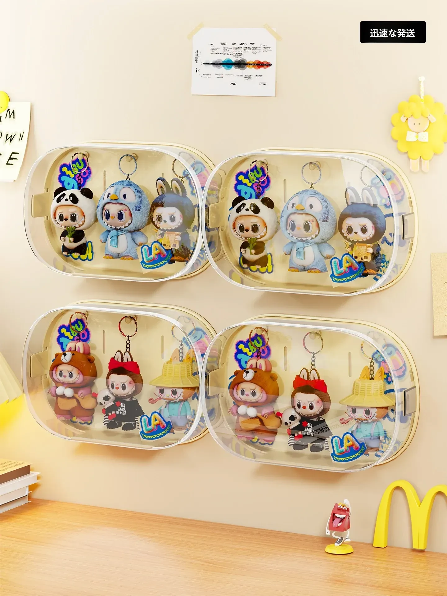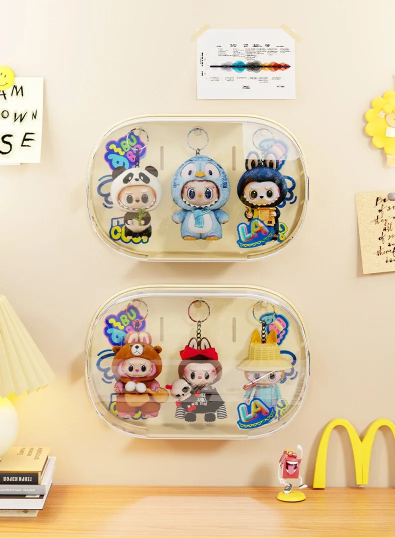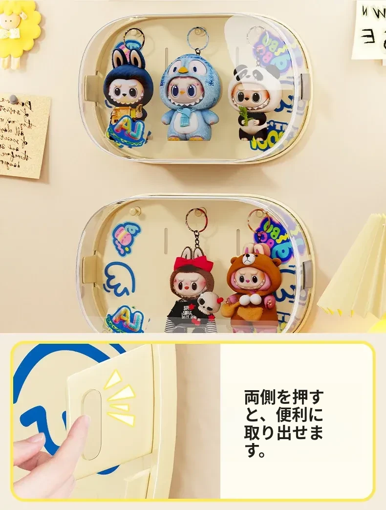 壁掛け式Labubuブラインドボックスディスプレイラック - 泡泡玛特のフィギュアを美しく収納!透明防塵カバー付きで、あなたのコレクションをしっかり守ります。お部屋をスタイリッシュに彩るアイテムです!