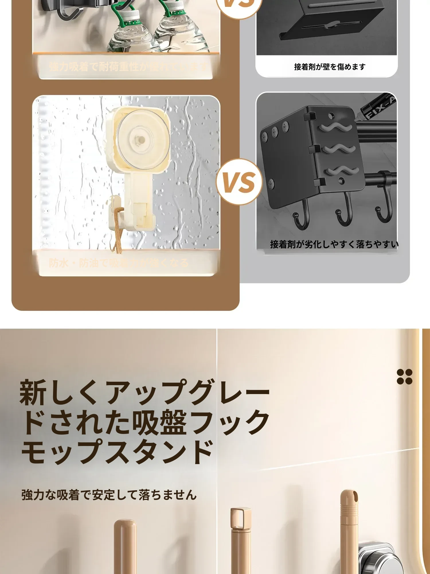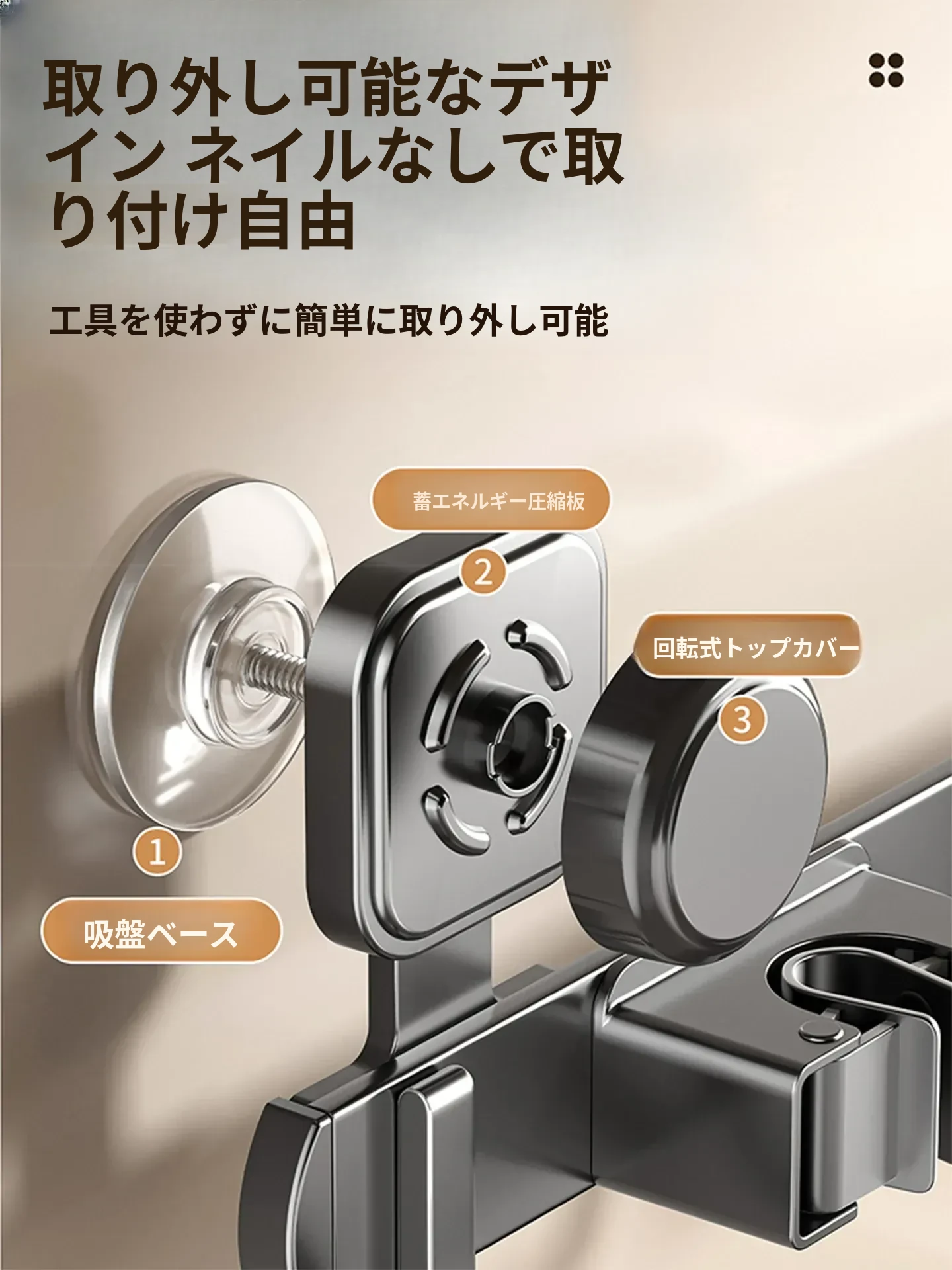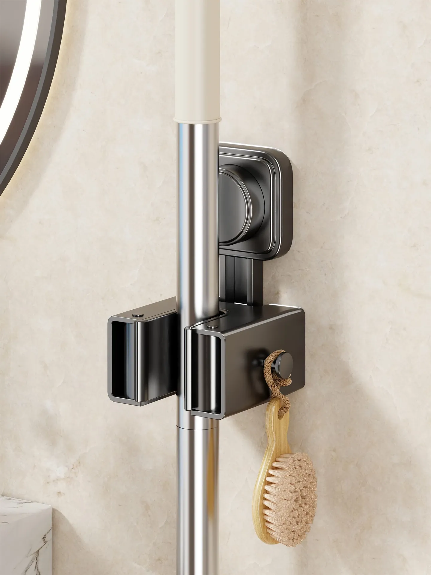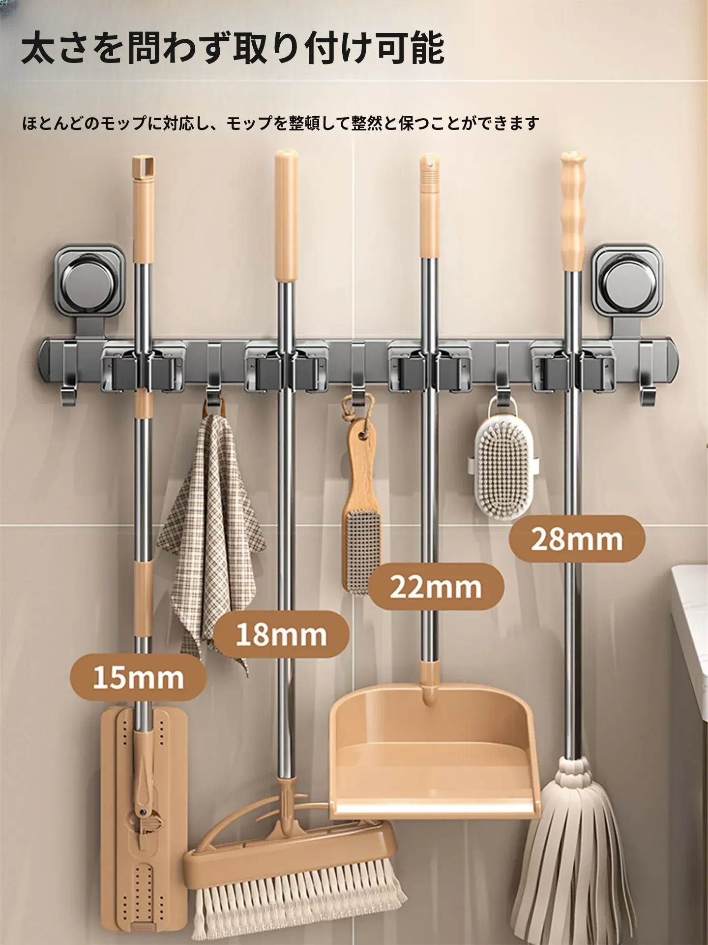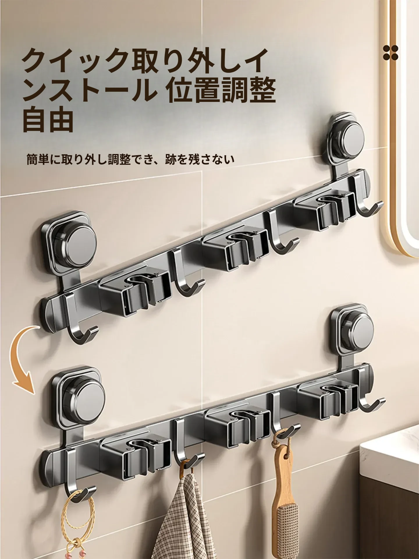 吸盤式トイレ掃除用モップホルダー - 壁掛け型で穴あけ不要!バスルームやトイレの掃除をスマートに収納、スペースを有効活用!掃除道具をスッキリ整理して、清潔な空間を保ちましょう!