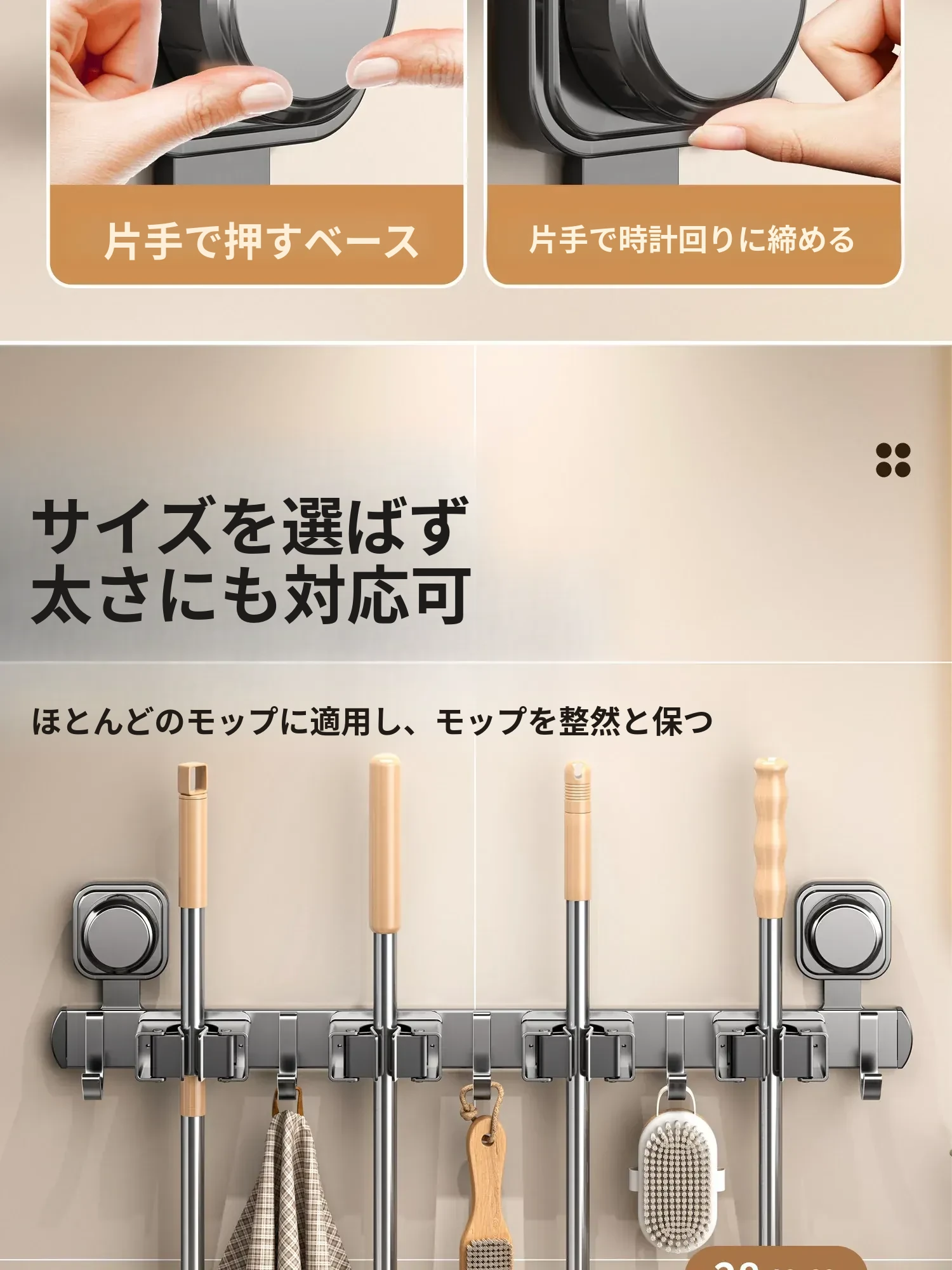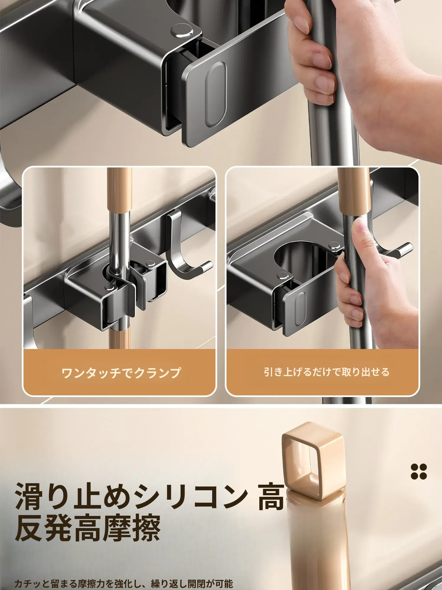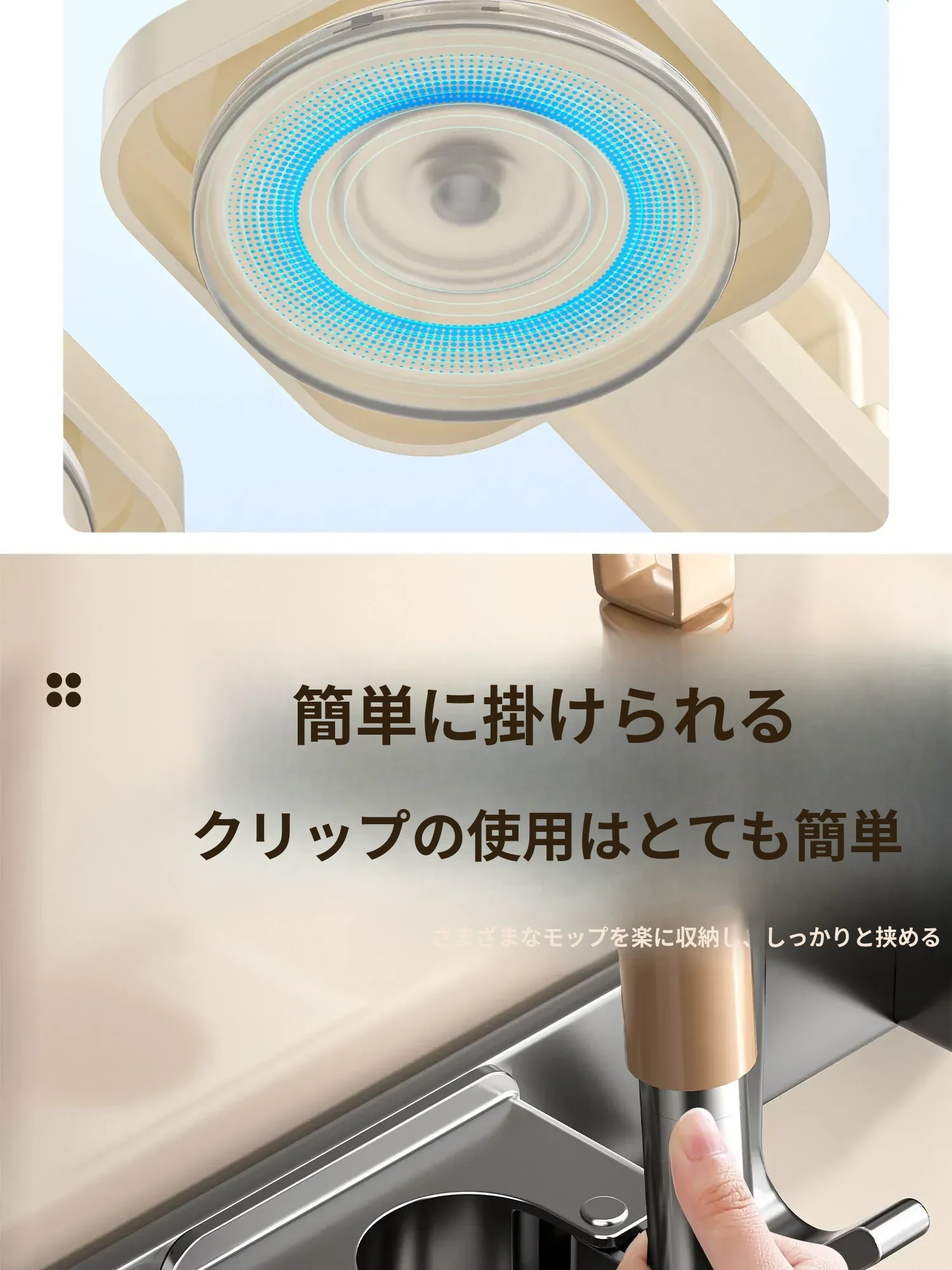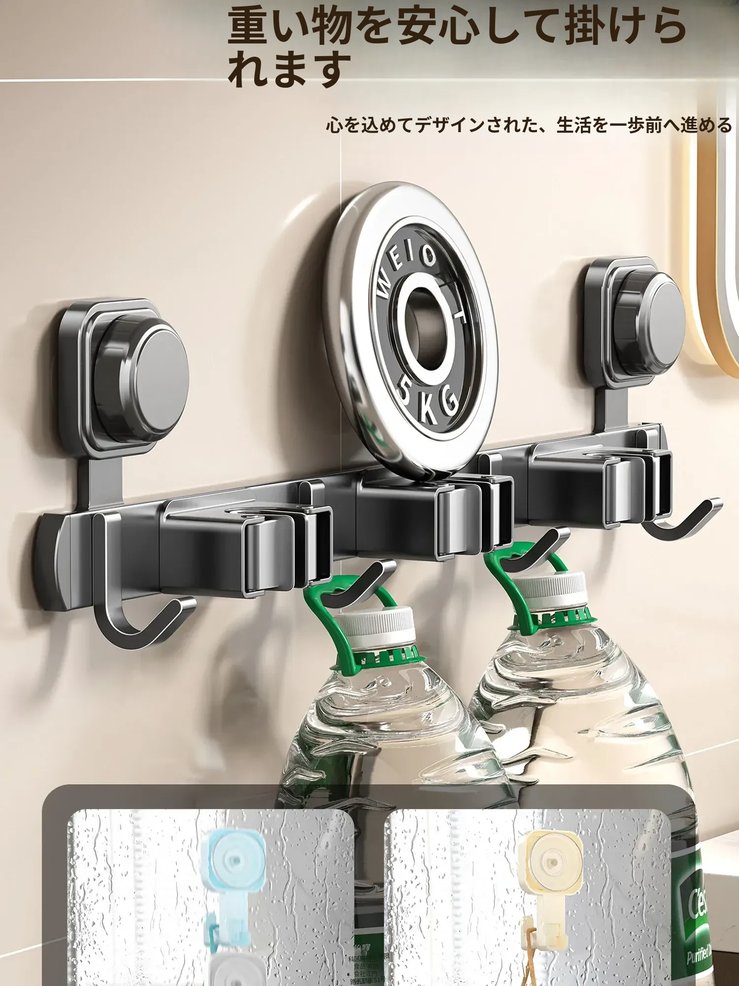 吸盤式トイレ掃除用モップホルダー - 壁掛け型で穴あけ不要!バスルームやトイレの掃除をスマートに収納、スペースを有効活用!掃除道具をスッキリ整理して、清潔な空間を保ちましょう!