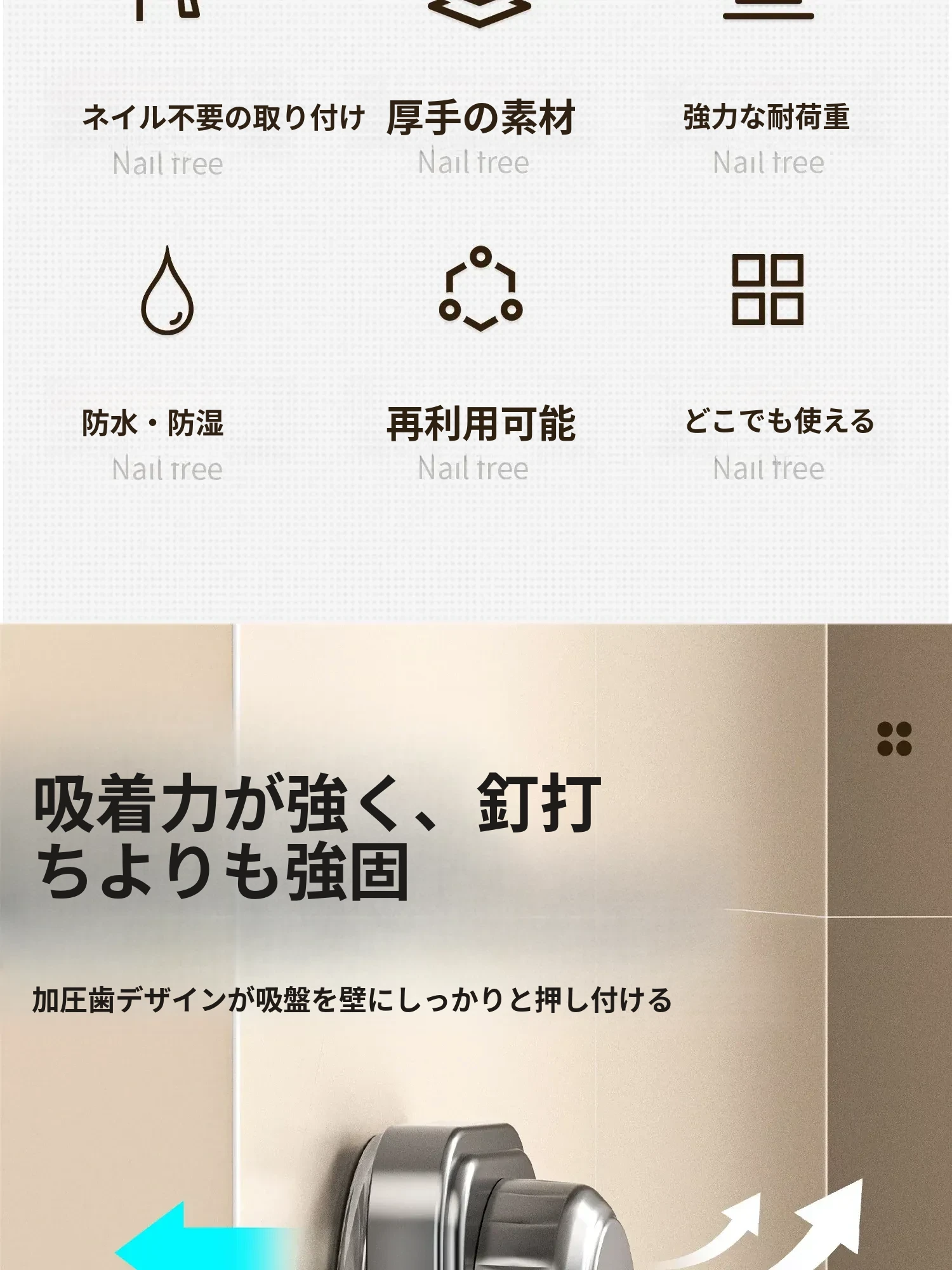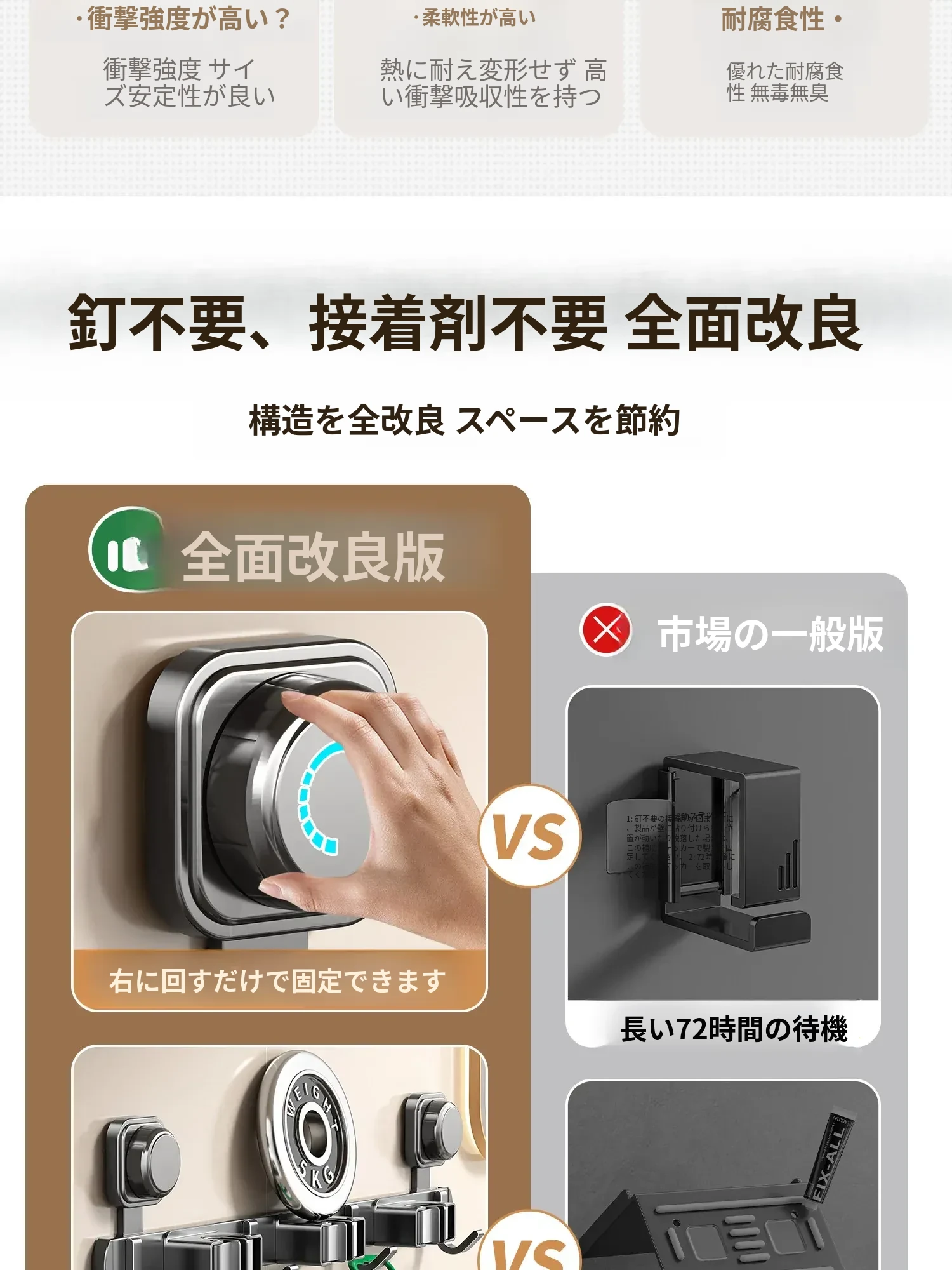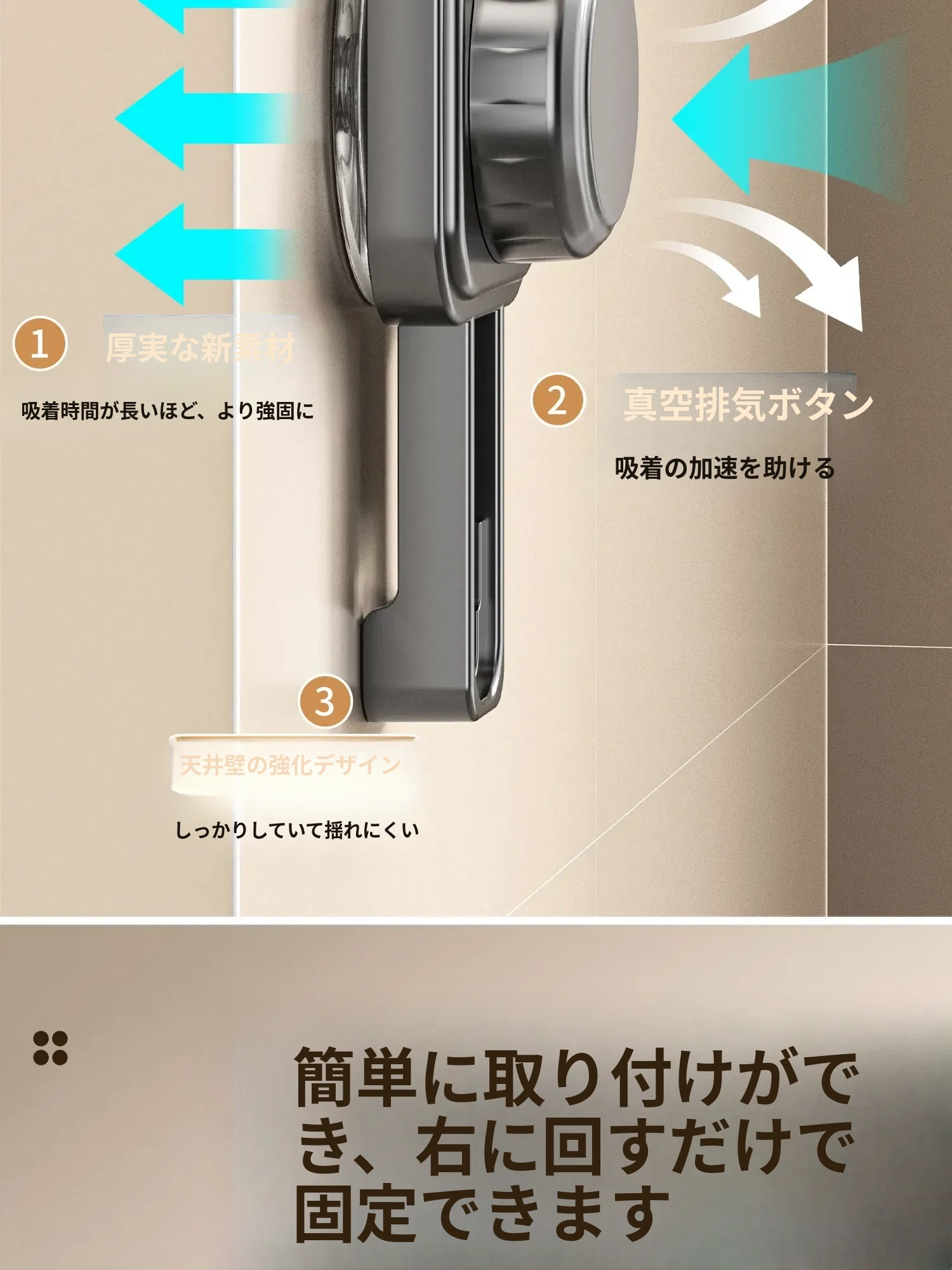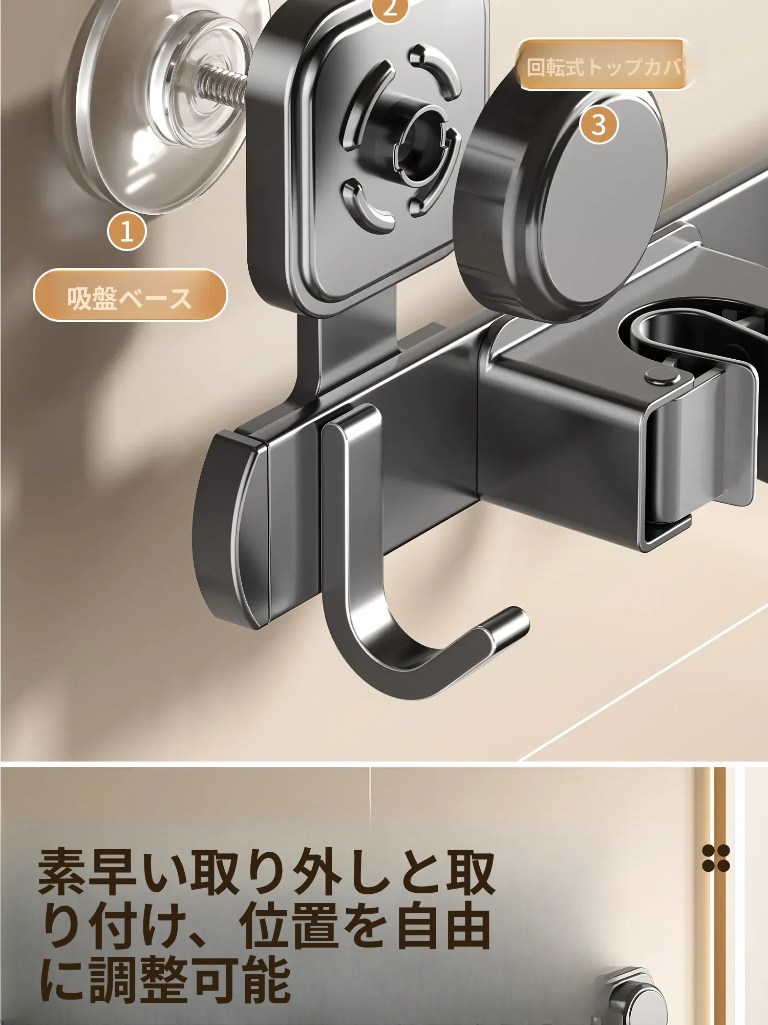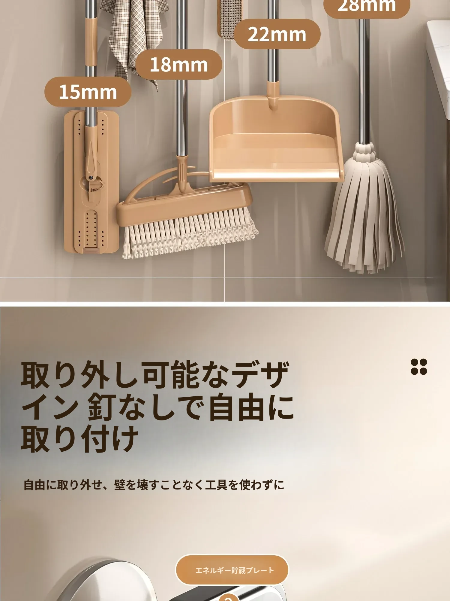 吸盤式トイレ掃除用モップホルダー - 壁掛け型で穴あけ不要!バスルームやトイレの掃除をスマートに収納、スペースを有効活用!掃除道具をスッキリ整理して、清潔な空間を保ちましょう!