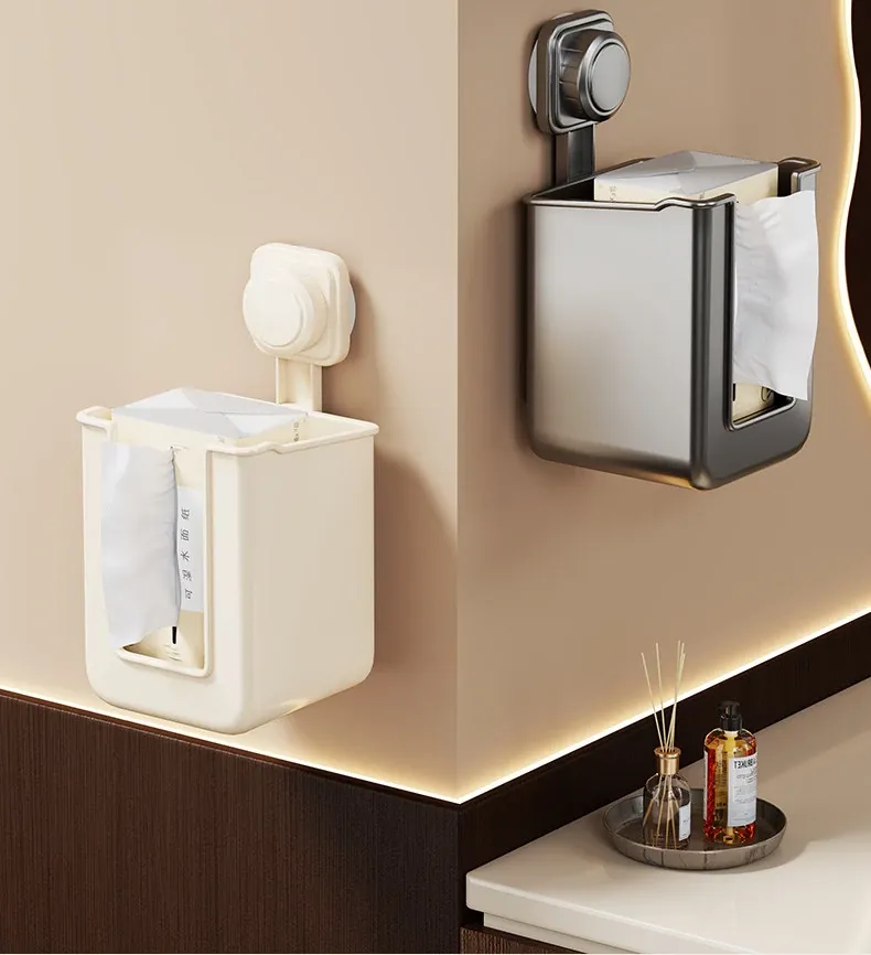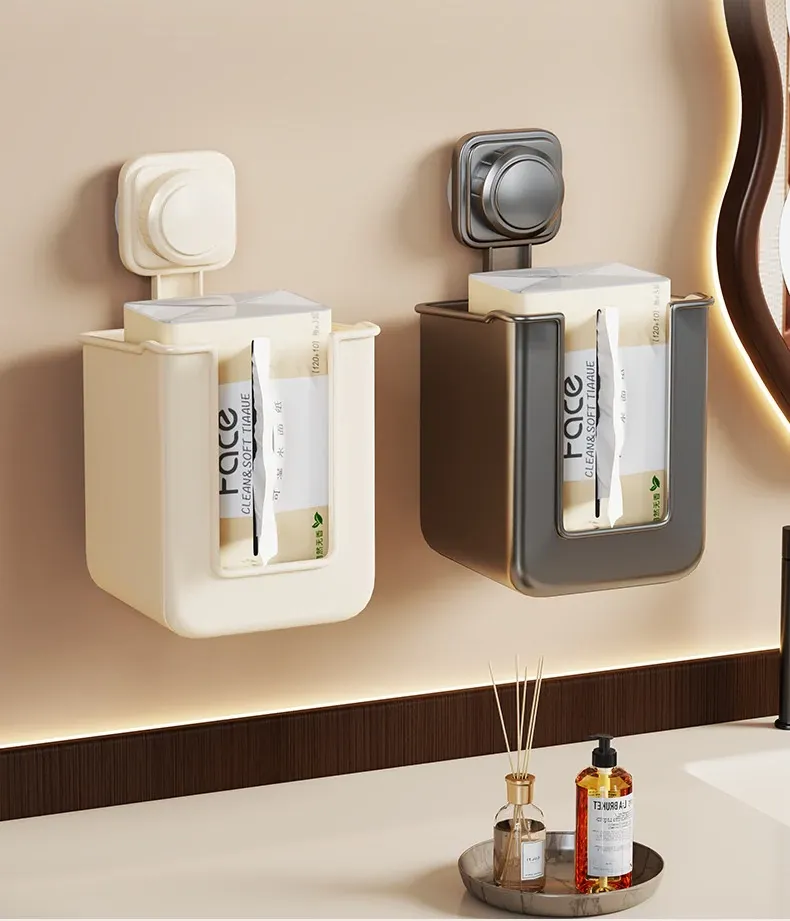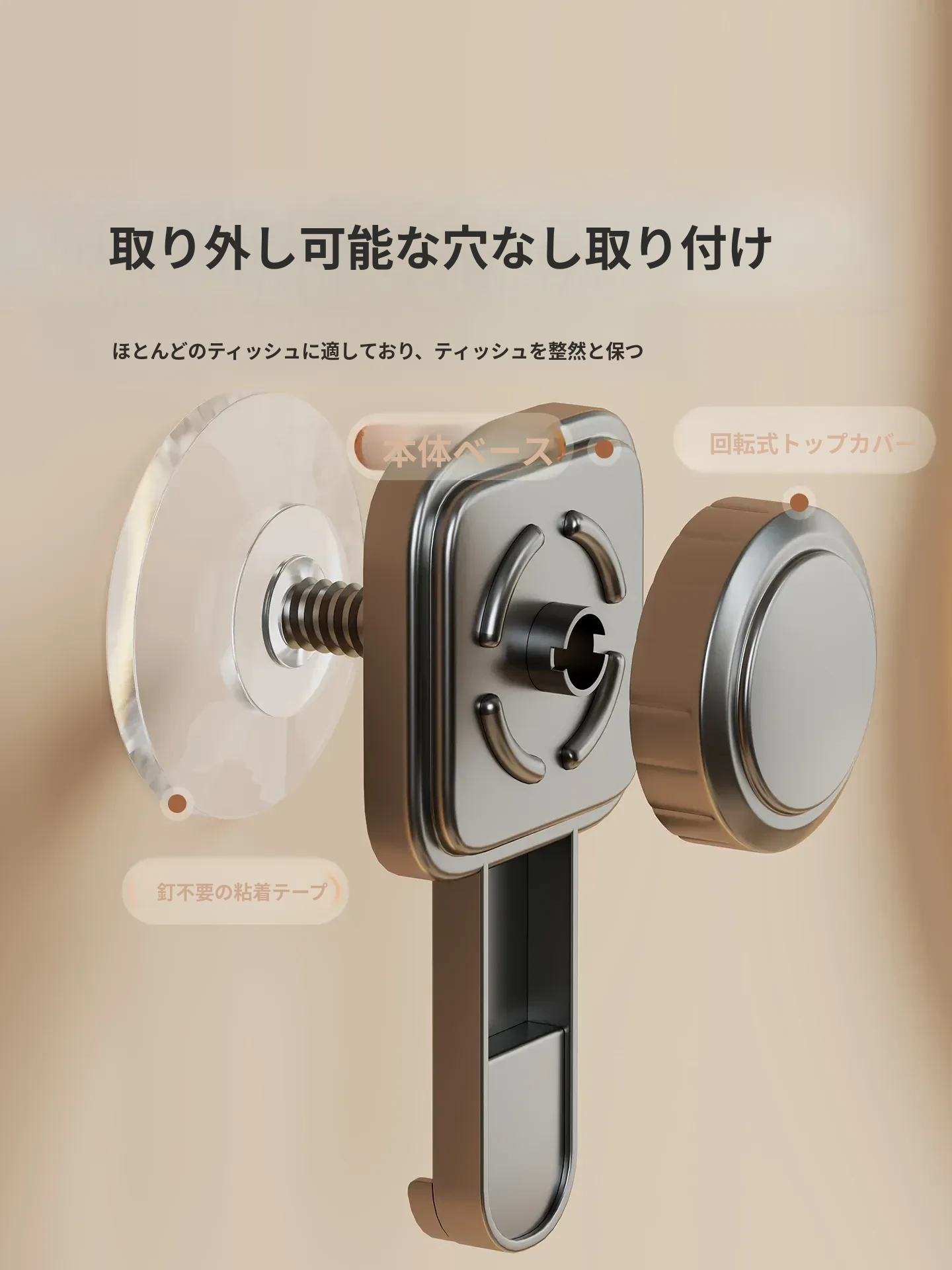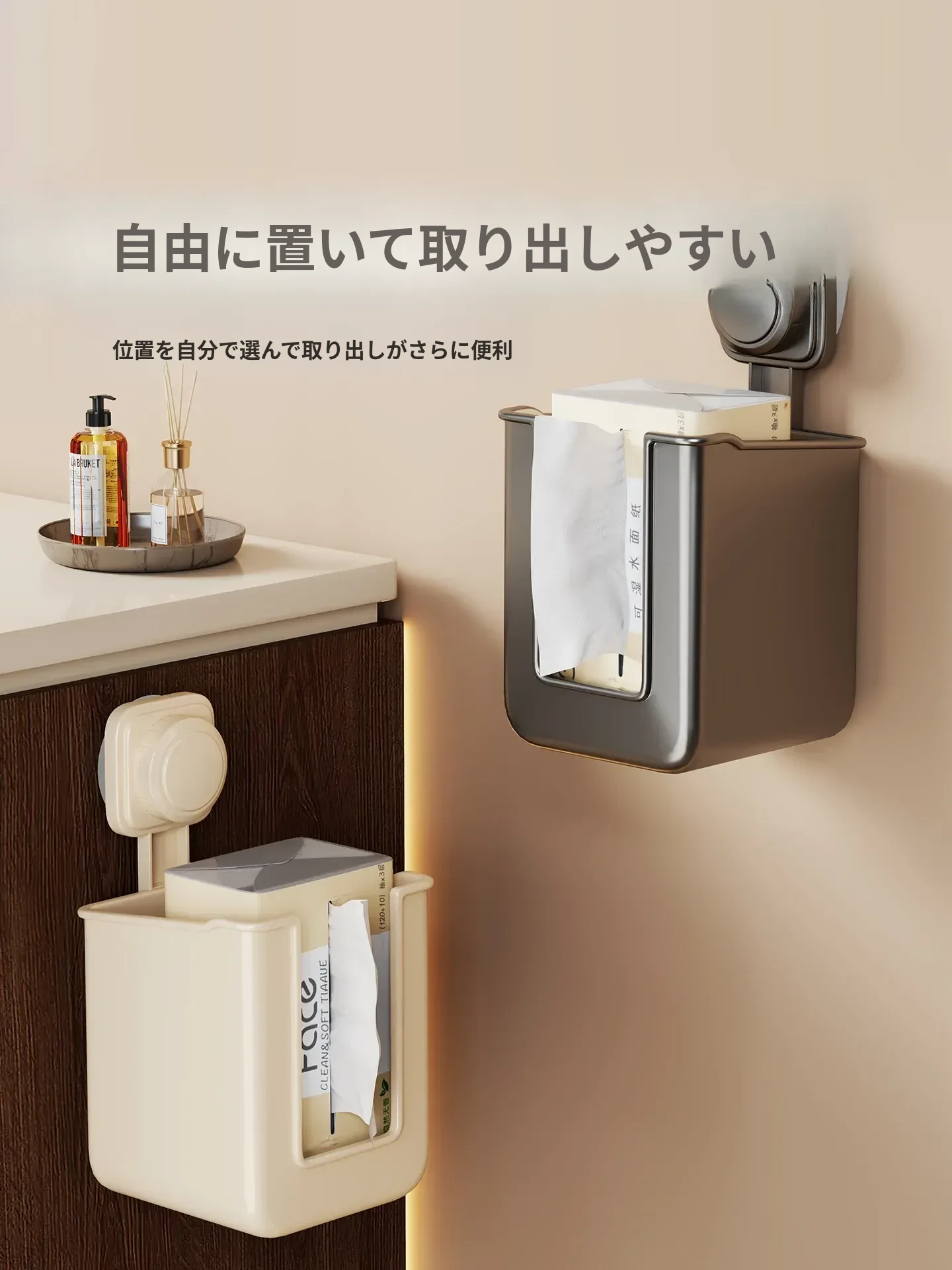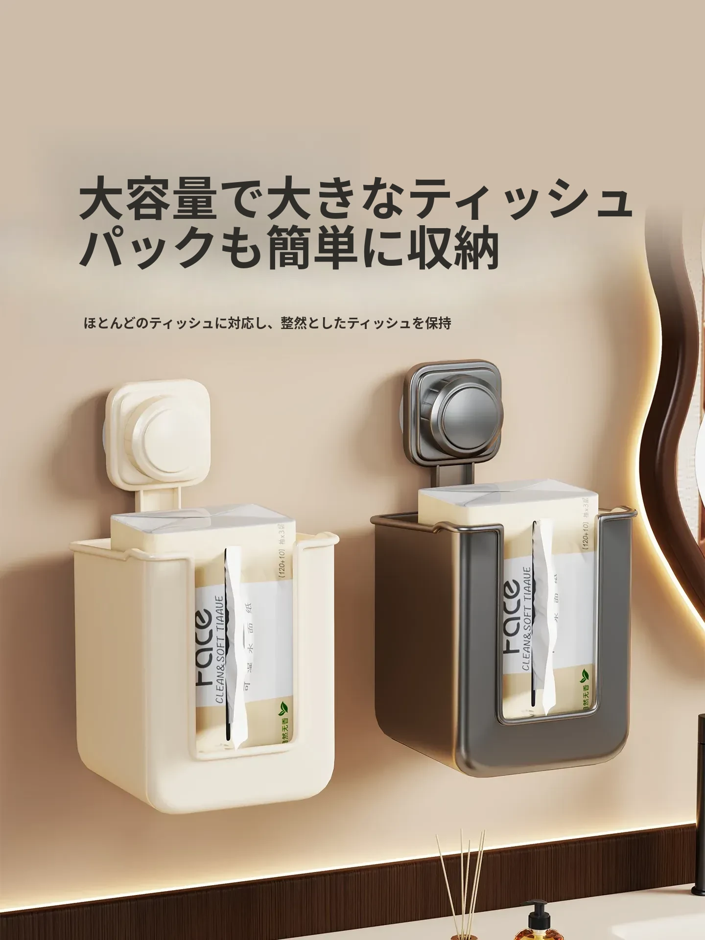 壁掛け式ペーパータオルホルダー - 使いやすく、穴あけ不要!バスルームやキッチンに最適な収納ボックス。洗顔タオルやウェットティッシュもすっきり整理!おしゃれで便利な空間作りを応援します。