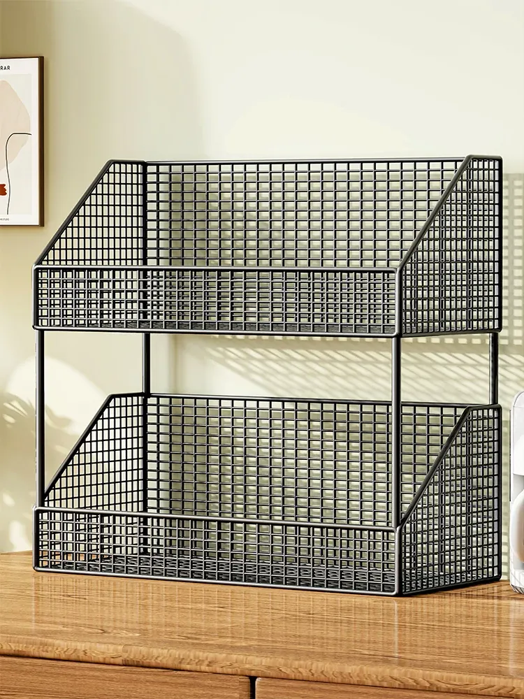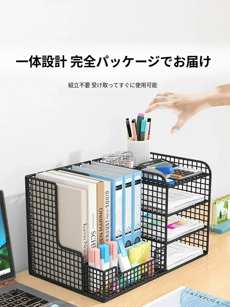多層ファイルラック オフィスデスク用収納ボックス 学生用資料・書類整理ラック デスク上の本棚 アイアン製 おしゃれでスタイリッシュなデザインで、作業スペースをスッキリ整理!