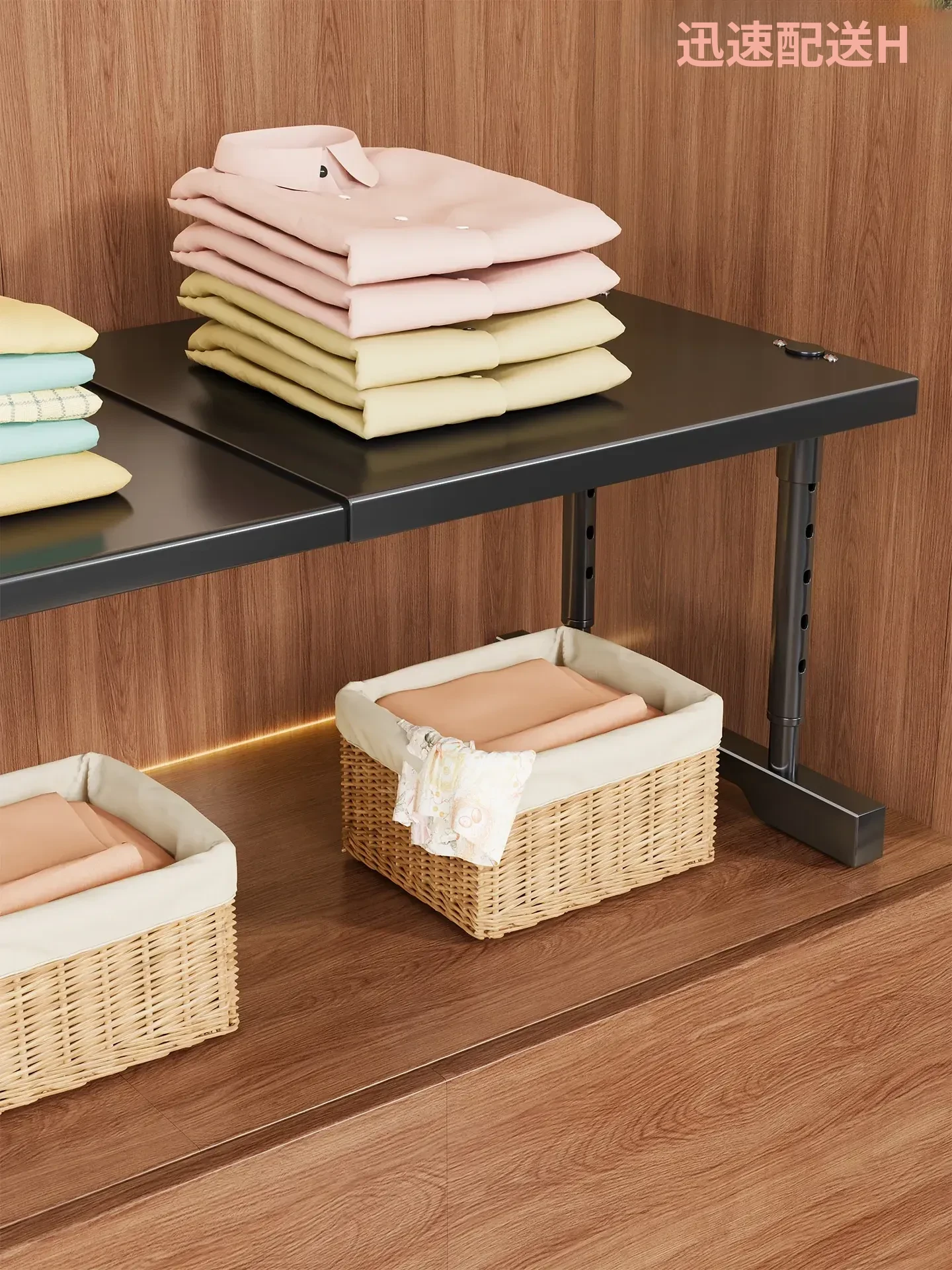 クローゼット用調整可能な靴収納棚 - スペースを有効活用!伸縮式で、衣類や靴を整理整頓。おしゃれで機能的な収納ソリューション!