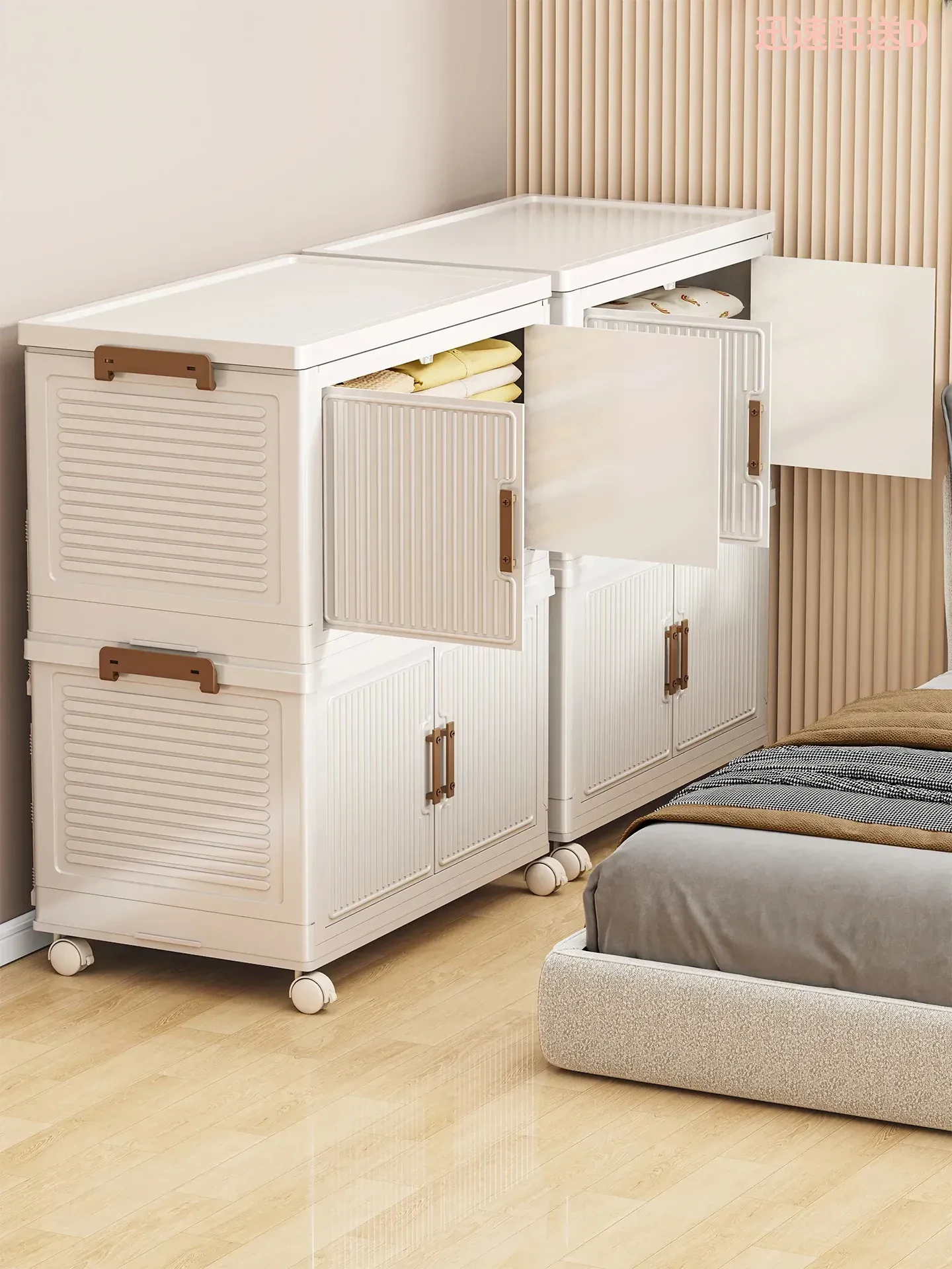 大容量収納ボックス|家庭用ベッドサイドクローゼット|ダブルドア衣類・布団収納キャビネット|プラスチック製|整理整頓に最適!お部屋をスッキリさせるアイテムです!
