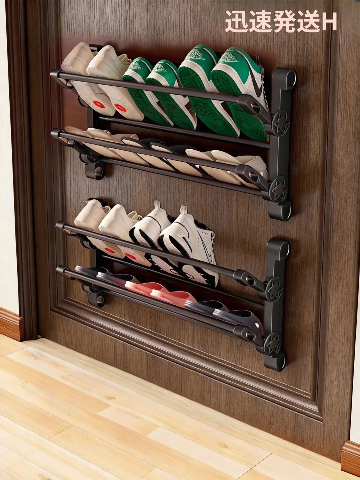 バスルーム壁掛けスリッパラック - 家庭用ドア裏折りたたみ収納、靴の水切り機能付き!おしゃれで便利な収納アイテムで、スッキリとした空間を実現しましょう!