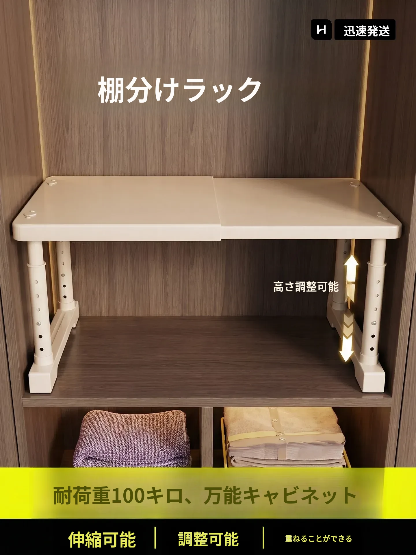 伸縮可能な衣類収納棚 クローゼット分ける便利なアイテム!靴箱や衣類収納にも最適な仕切り式ラックで、スペースを有効活用!