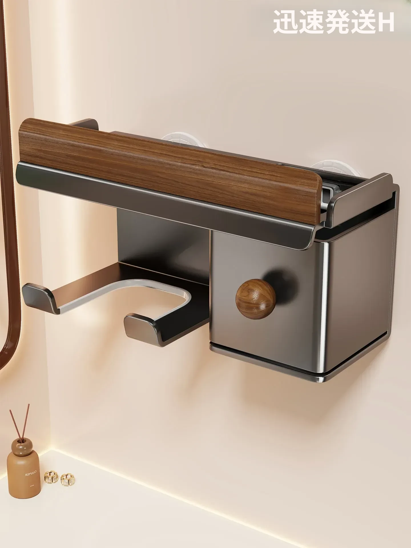 穴あけ不要!バスルームや洗面台にぴったりなドライヤー収納ラック - スタイリッシュで便利な掛け式収納で、スッキリとした空間を実現!