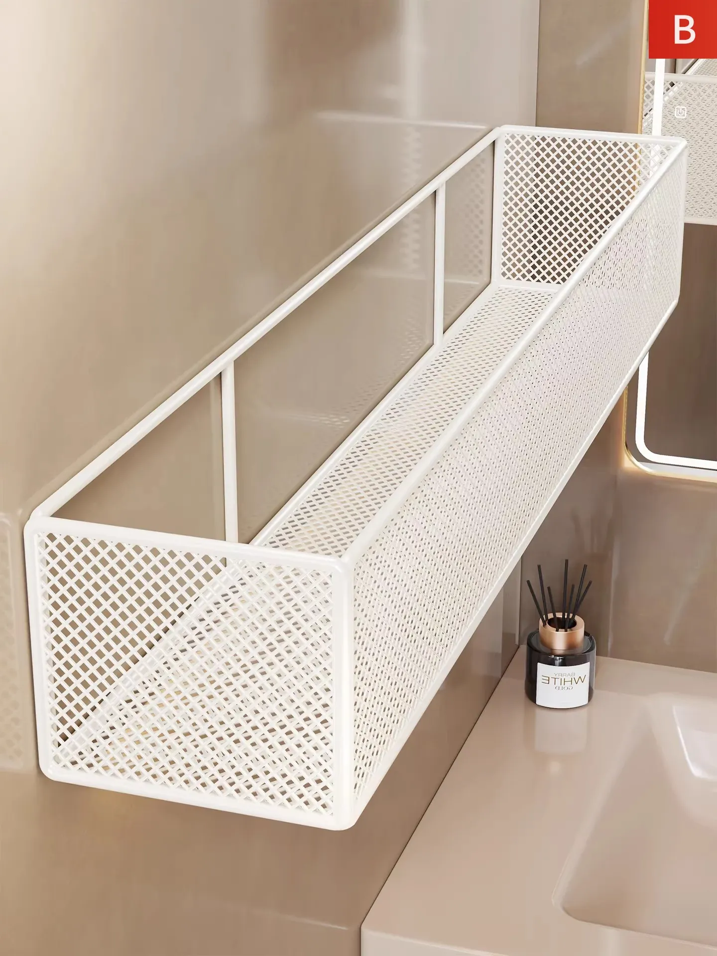 高級感溢れる壁掛けバスルーム収納ラック!洗面台やトイレに最適、鏡の前にぴったりの整理整頓アイテム。手軽に取り付けられるノー打孔設計で、家のどこでもスッキリ収納!