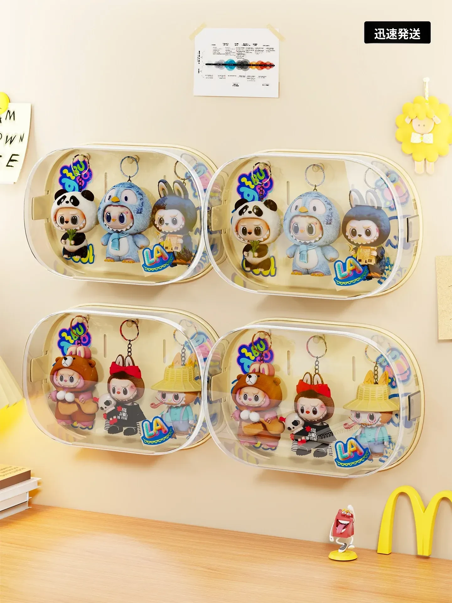 壁掛け式Labubuブラインドボックスディスプレイラック - 泡泡玛特のフィギュアを美しく収納!透明防塵カバー付きで、あなたのコレクションをしっかり守ります。お部屋をスタイリッシュに彩るアイテムです!