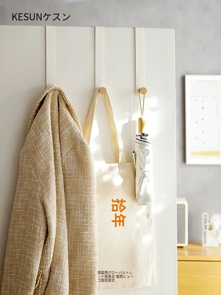 ドア裏フック 無孔取り付け型 ハンガー 衣類掛け ベッドルーム・玄関用 玄関入ってすぐの壁掛け衣類フックで、スッキリ収納!おしゃれで便利なデザインで、毎日のコーディネートをサポートします。