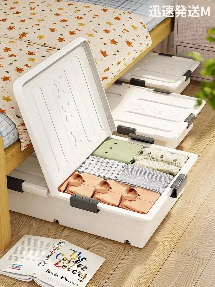 ベッド下収納ボックス スライド式キャスター付き 大容量・超大整理ボックス 家庭用 おしゃれで便利なフラット型 収納スペースを有効活用!