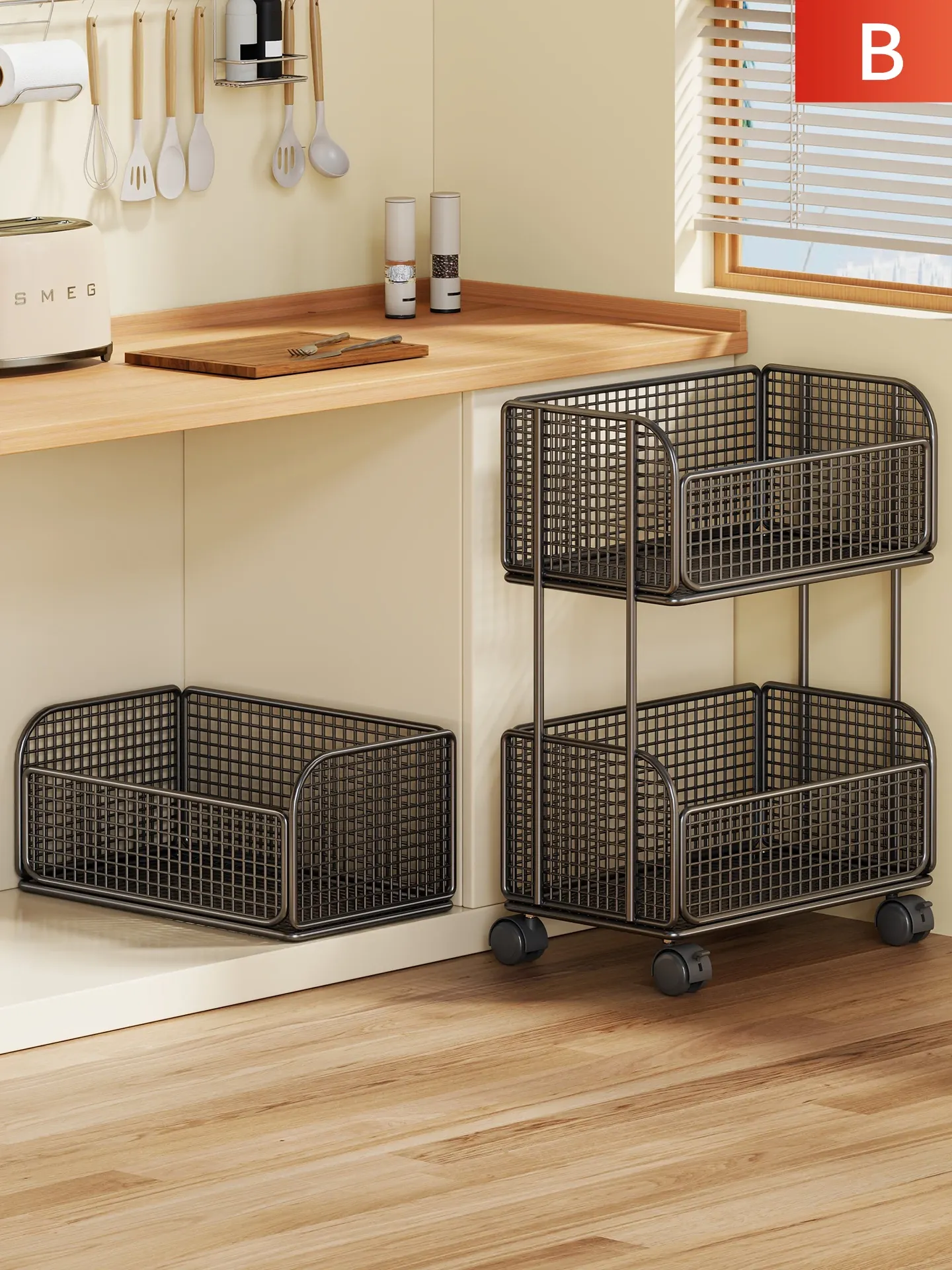 多機能キッチン収納ラック - 野菜バスケットやおもちゃの整理に最適な移動式マルチレイヤーキャリー。家庭にぴったりの便利アイテム!
