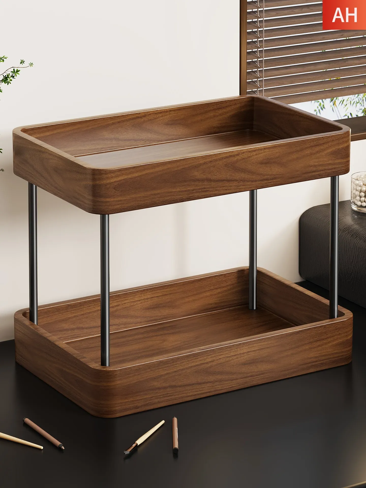 高級感溢れる無垢材コスメ収納ラック!デスクトップ化粧台用の大容量スキンケアボックス、フェイスマスクも美しく整理。あなたのビューティー空間を格上げするアイテムです!