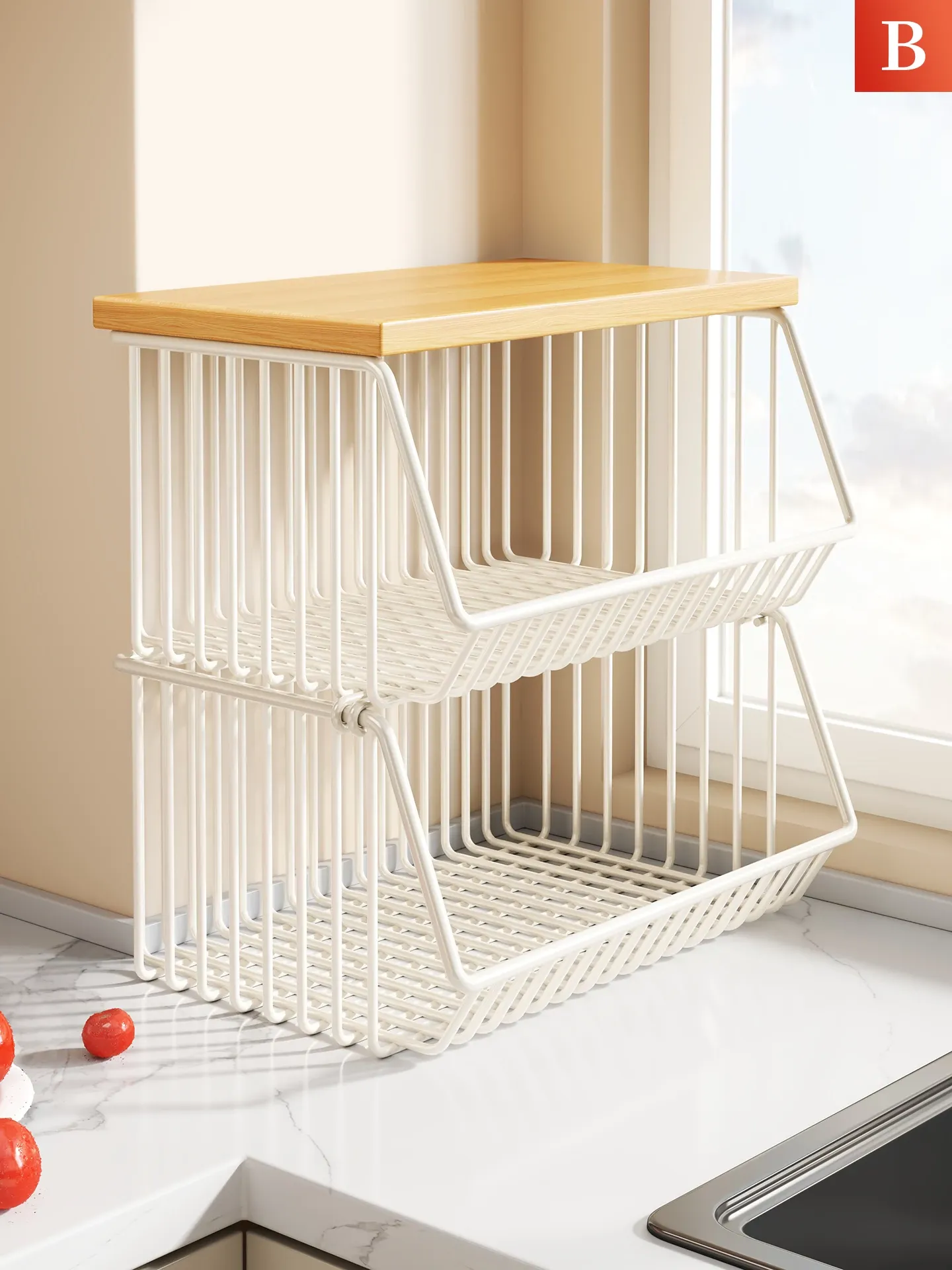 多機能キッチン収納ラック - 野菜や果物を美しく整理!家庭用のスタンド式調味料&多層野菜バスケットラックで、あなたのキッチンをスッキリと機能的に!